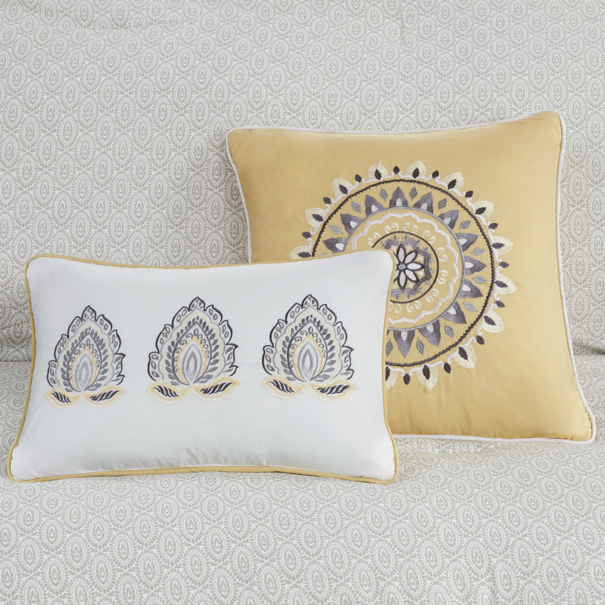 8 Piece Cotton Floral Printed Reversible Comforter Set Yellow Queen Queen Yellow Cotton