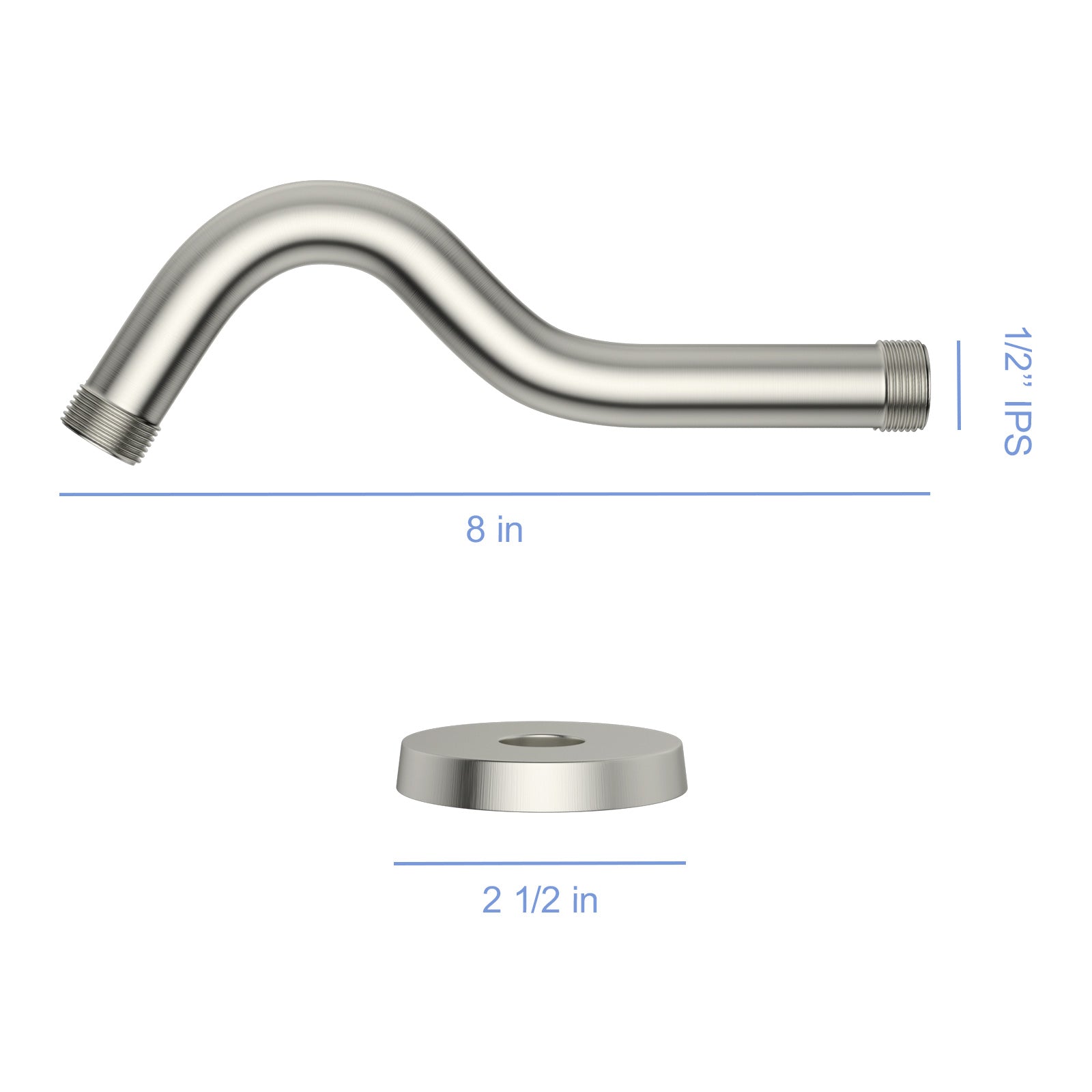 8" Shower Arm With Flange, Brushed Nickel Brushed Nickel Stainless Steel