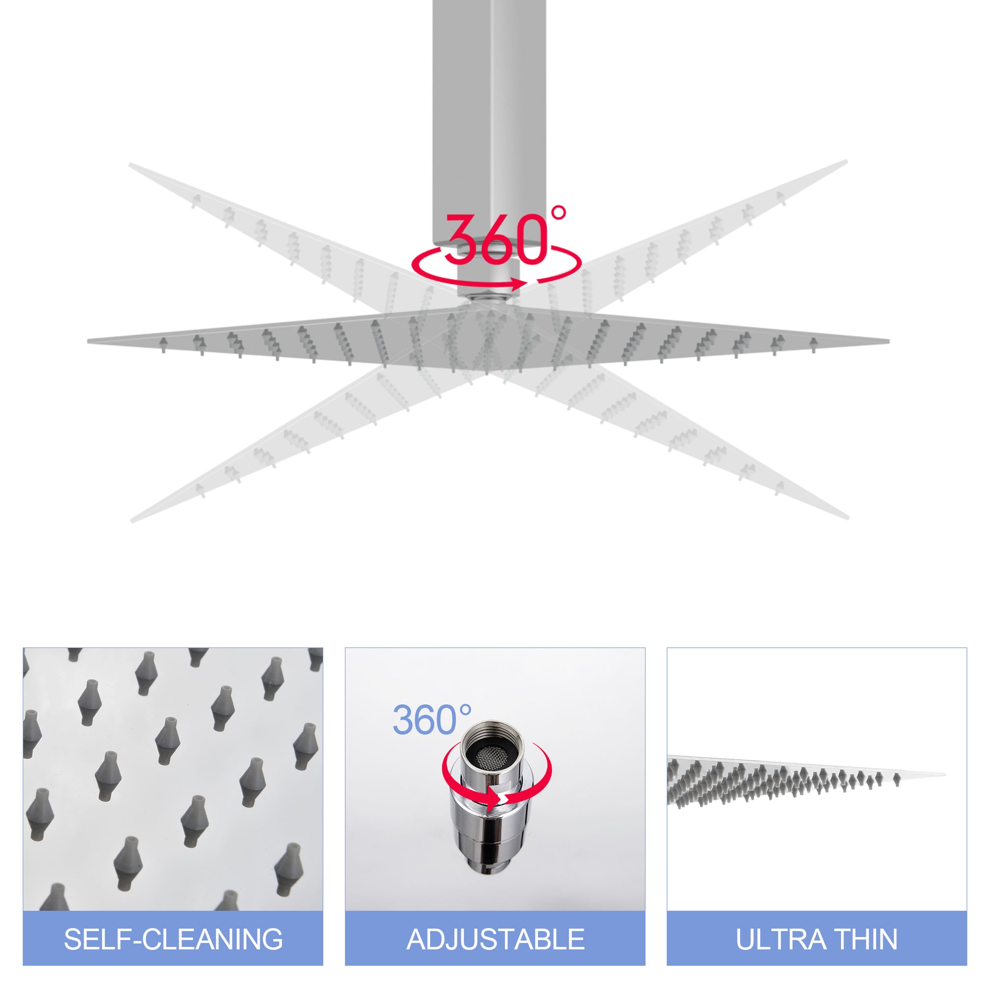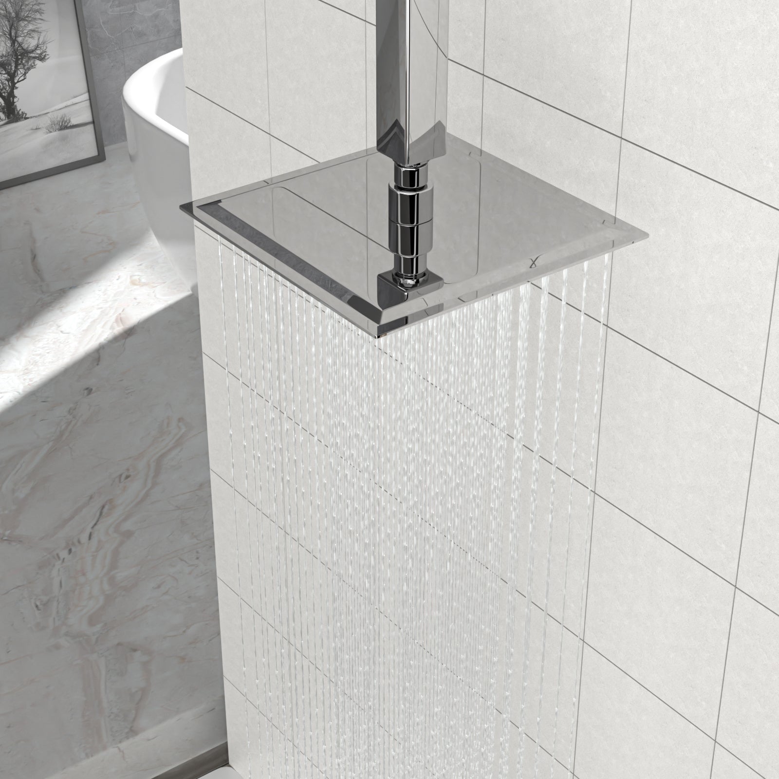 8" Square Rainfall Shower Head, Wall Ceiling Mounted, Chrome Chrome Stainless Steel