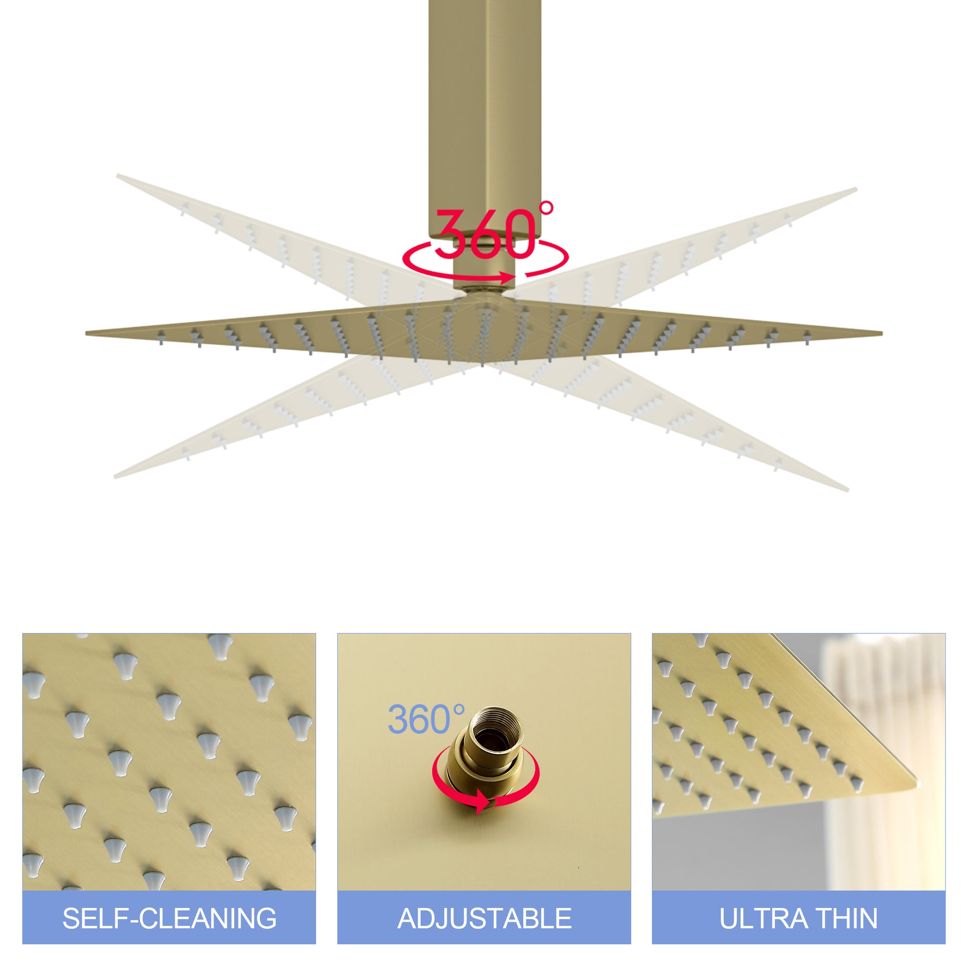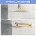 8" Square Rainfall Shower Head, Wall Ceiling Mounted, Gold Gold Stainless Steel