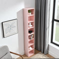 8 Tier Media Tower Rack, Cd Dvd Slim Storage Cabinet With Adjustable Shelves, Tall Narrow Bookcase Display Bookshelf For Home Office,Multi Functional Double Decker Bookcase 5 Or More Shelves Pink Adjustable Shelves Mdf
