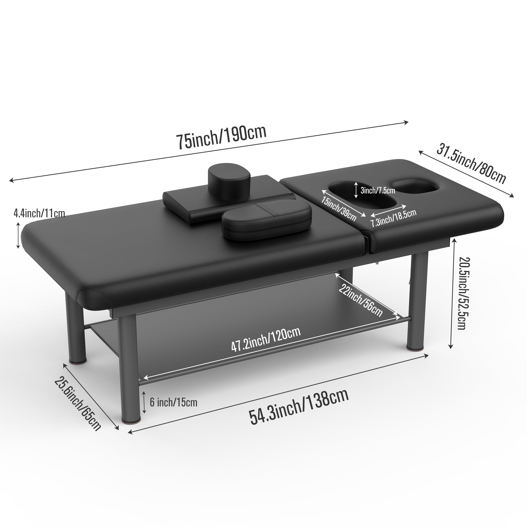 80 Inches Wide Quality Leather Beauty Spa Furniture Massage Table Bed Iron On Round Legs Facial Bed Beauty Bed Black Black Pu Leather