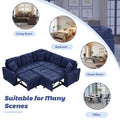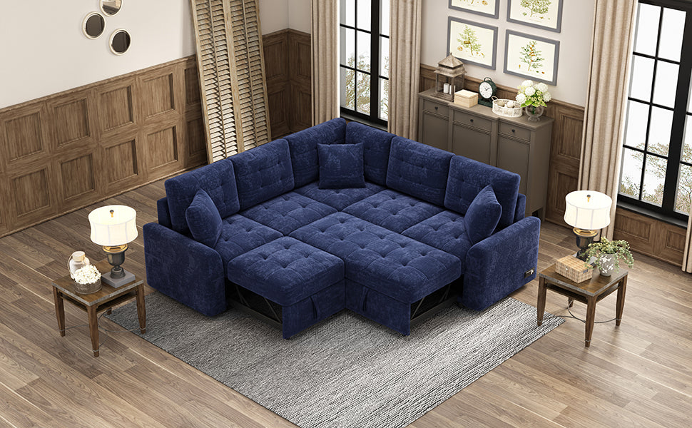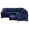 82.6" L Shape Sofa Bed Pull Out Sleeper Sofa With Wheels, Usb Ports, Power Sockets For Living Room, Navy Blue Navy Blue Foam Velvet