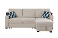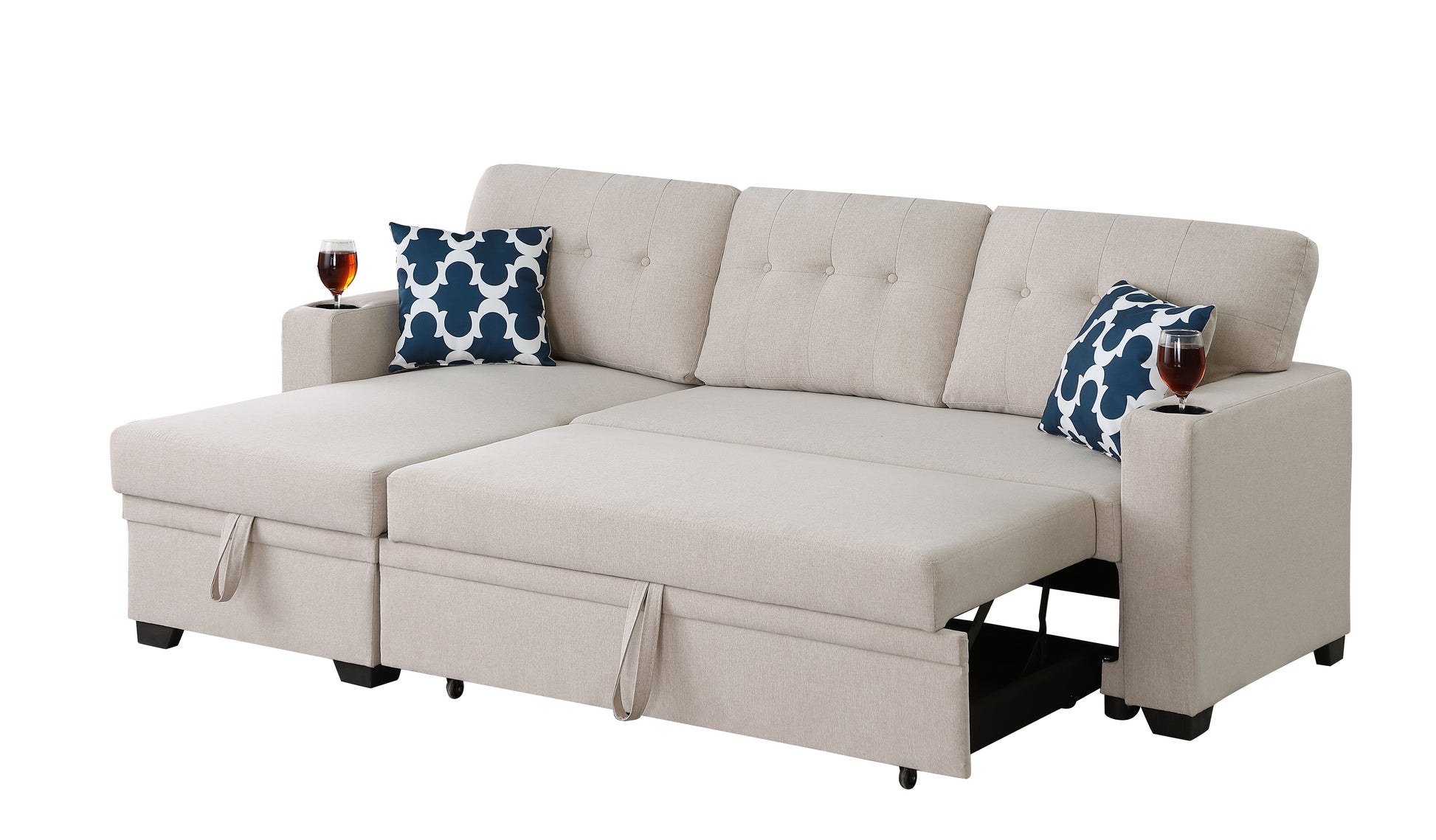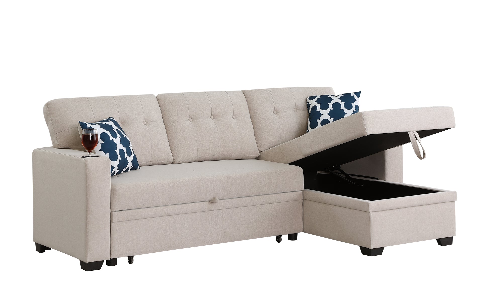 82" Width Sectional With Storage Chaise And Cupholder Armrest Beige Foam Linen