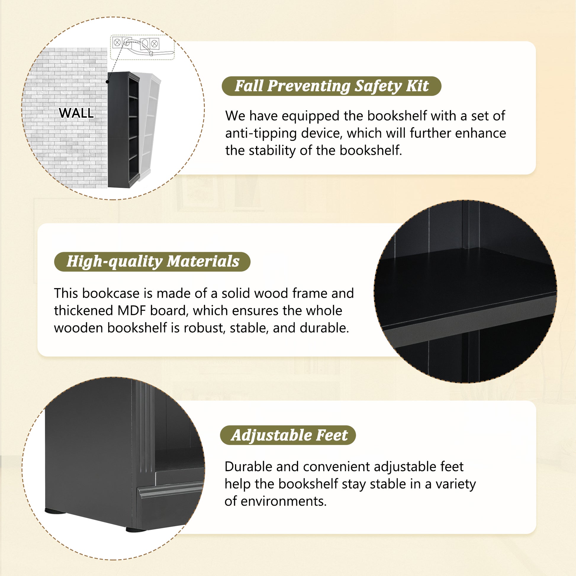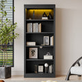 83.4" Tall Wood Bookcase With Light Strip,5 Tier Decor Bookshelves With Adjustable Shelves,Storage Organizer For Cds Books Movies,Free Standing Storage Shelves For Living Room,Home Office,Black