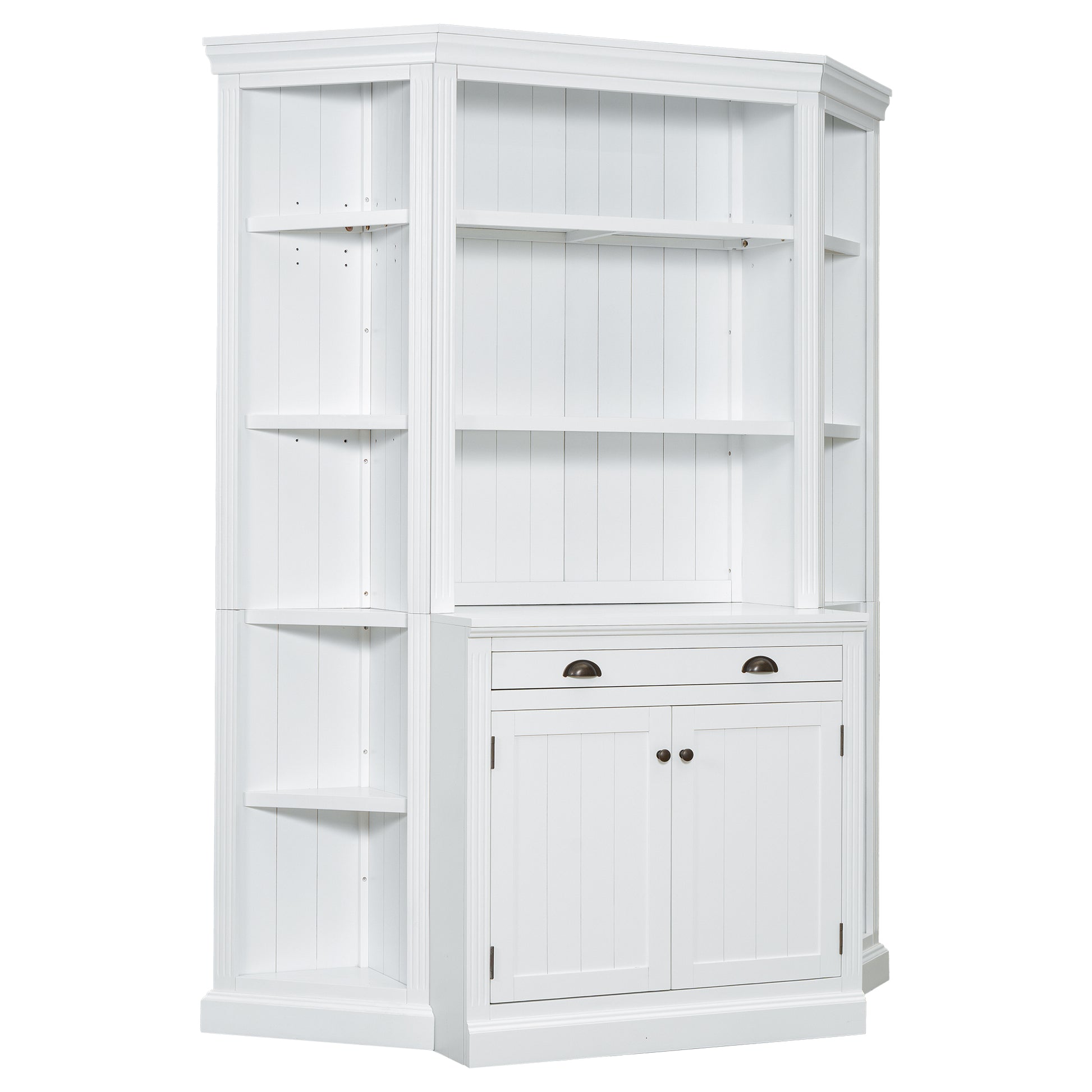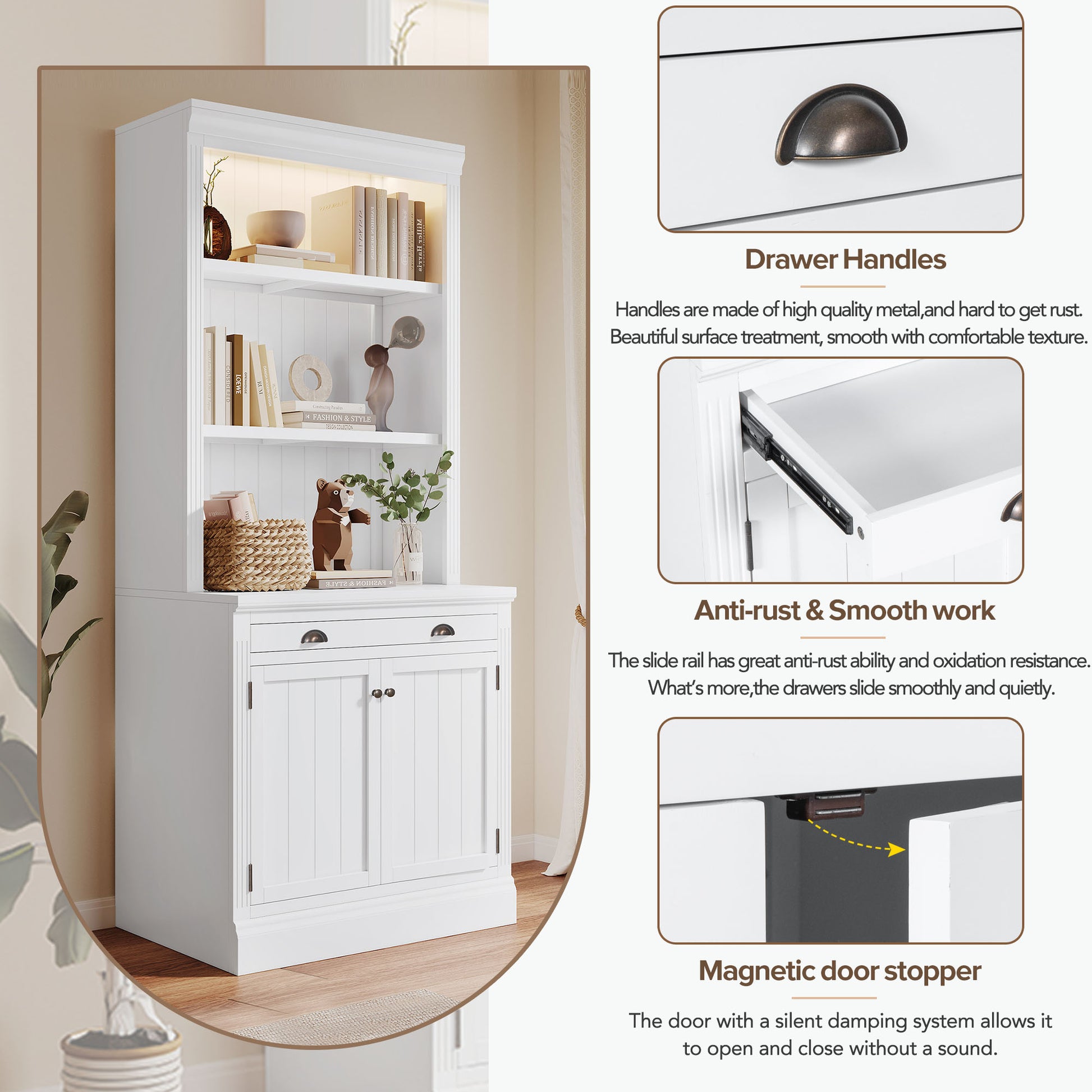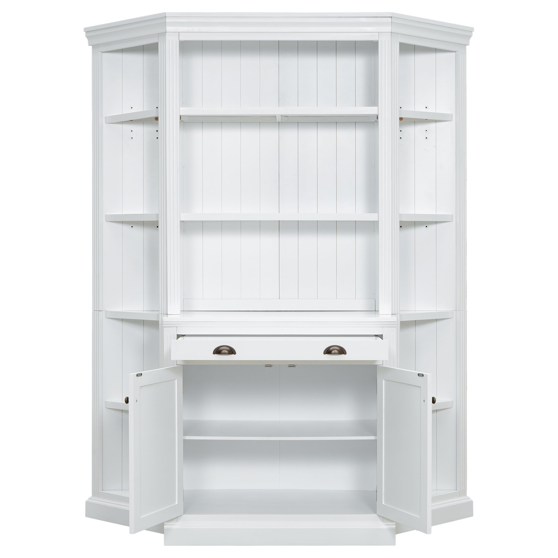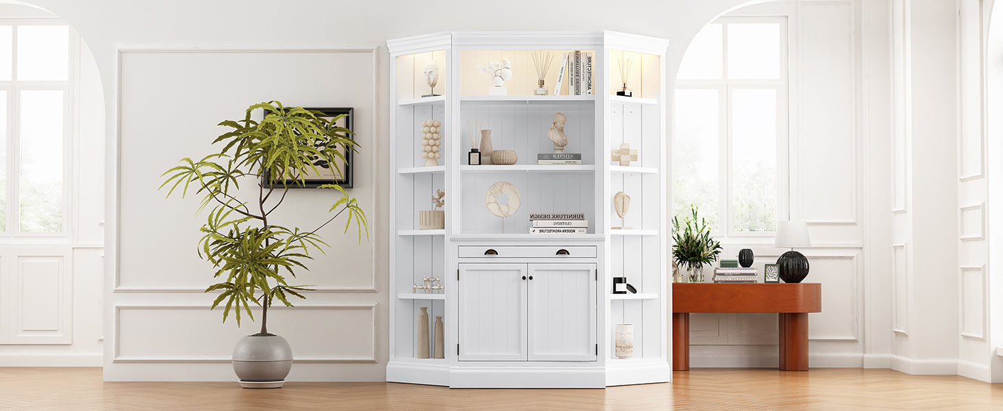 83.4"Tall Bookshelf With Two Corner Shelf Suite,Bookcase With 2 Doors And 1 Drawer,5 Tier Corner Shelf With Open Shelves,Free Standing Shelves Suite With Led Lighting For Living Room,Office,White