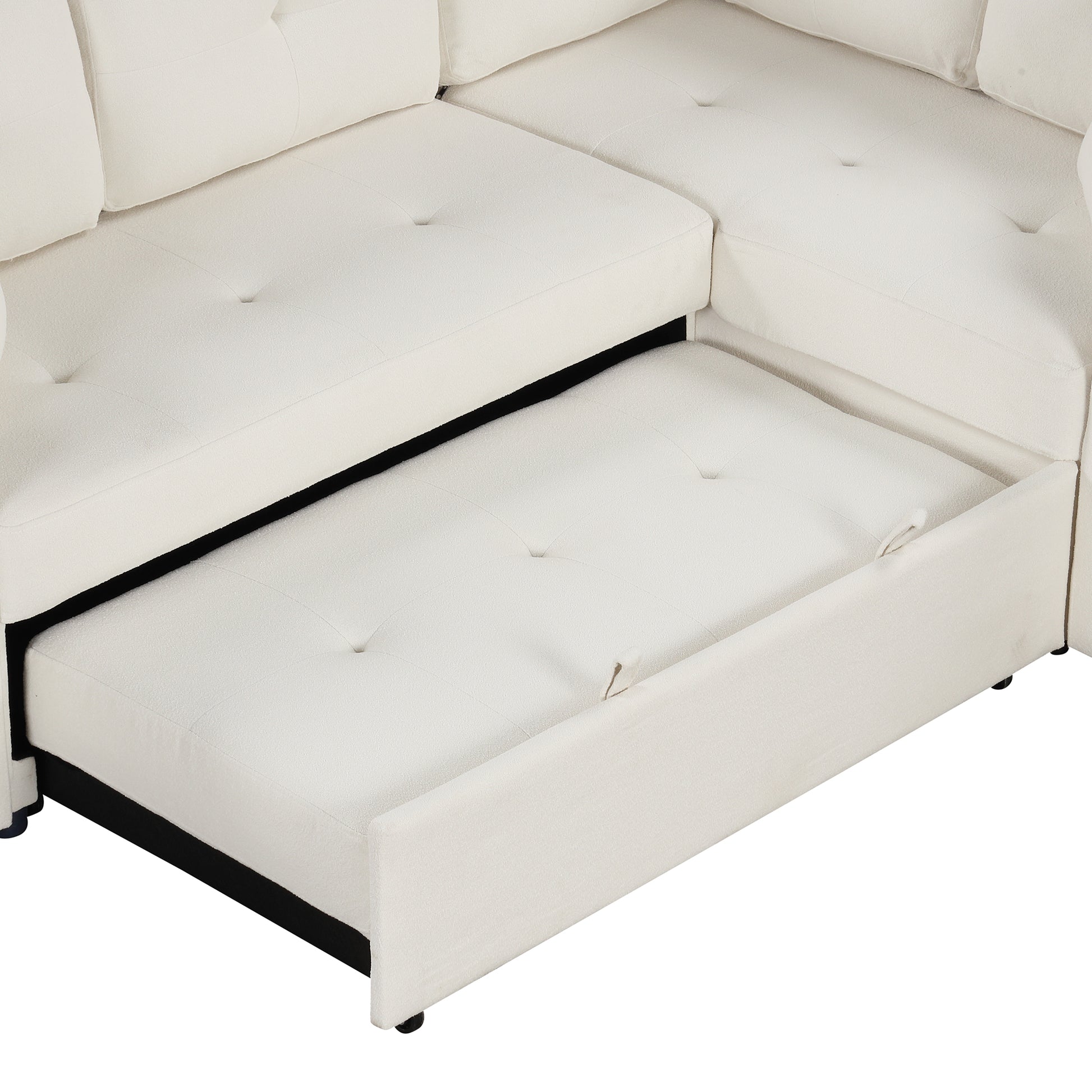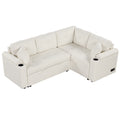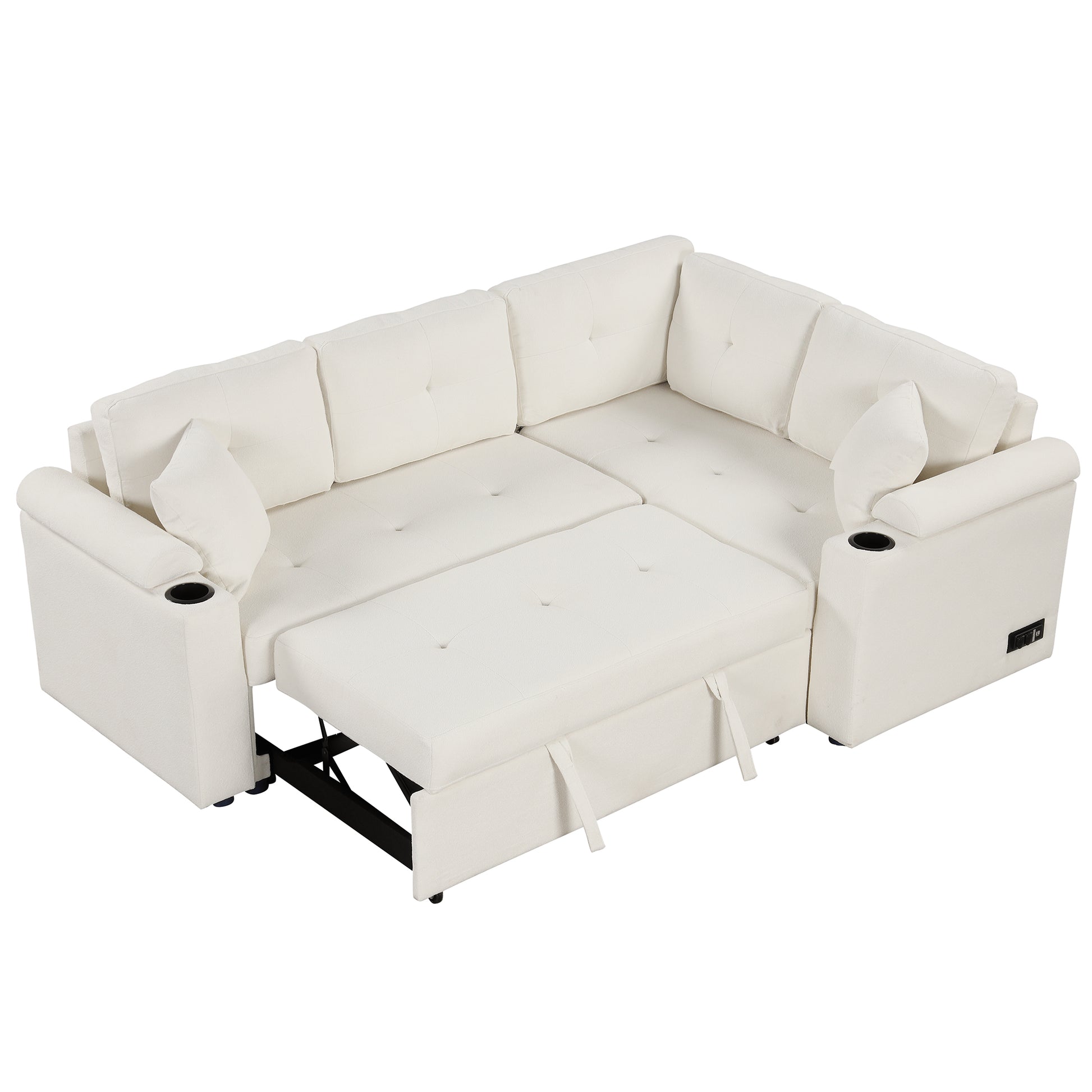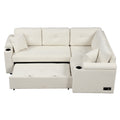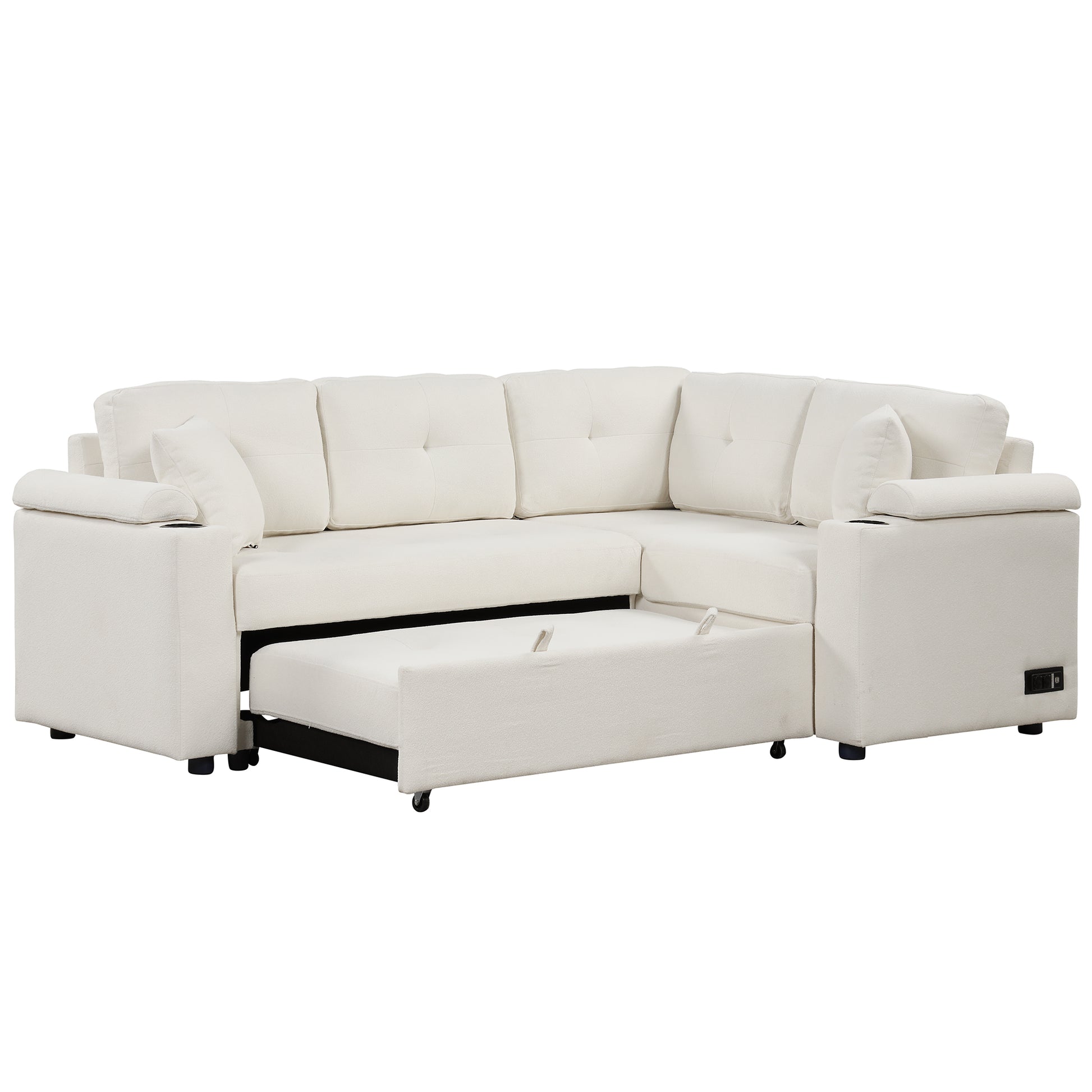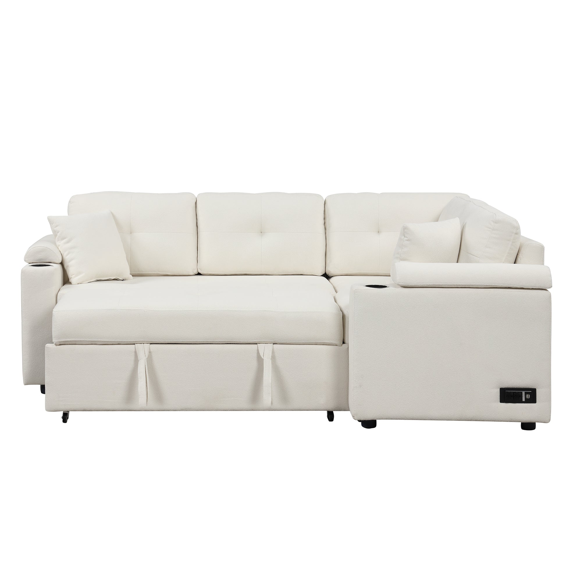 83" L Shape Sofa Bed Pull Out Sleeper Sofa With Wheels, Usb Ports, Power Sockets For Living Room, Beige Beige Foam Boucle 3 Seat
