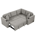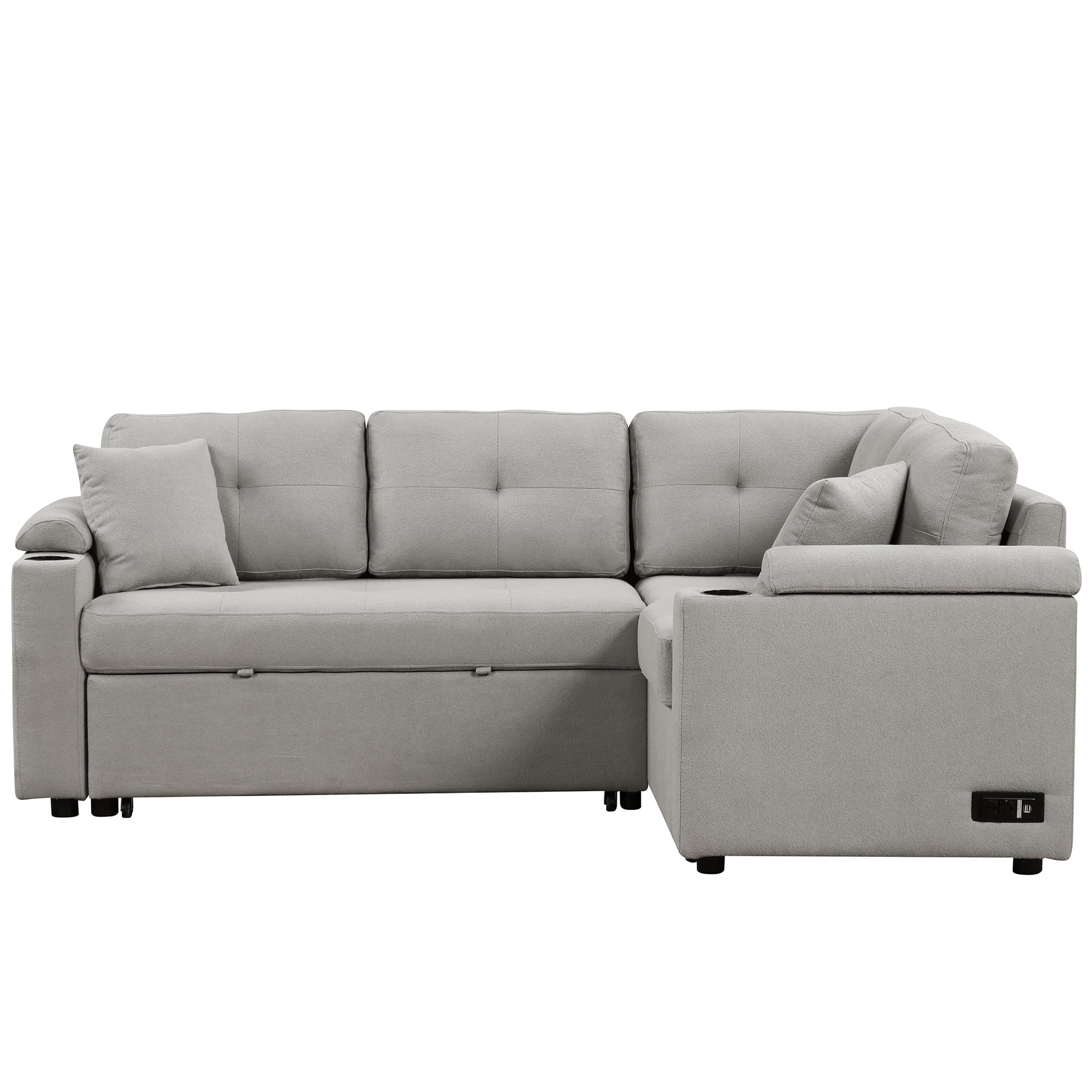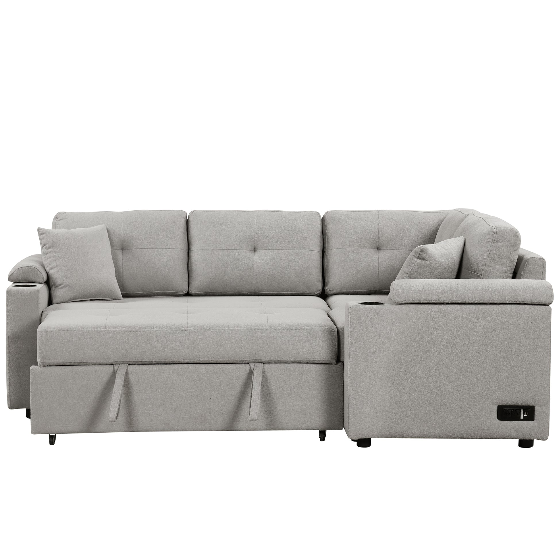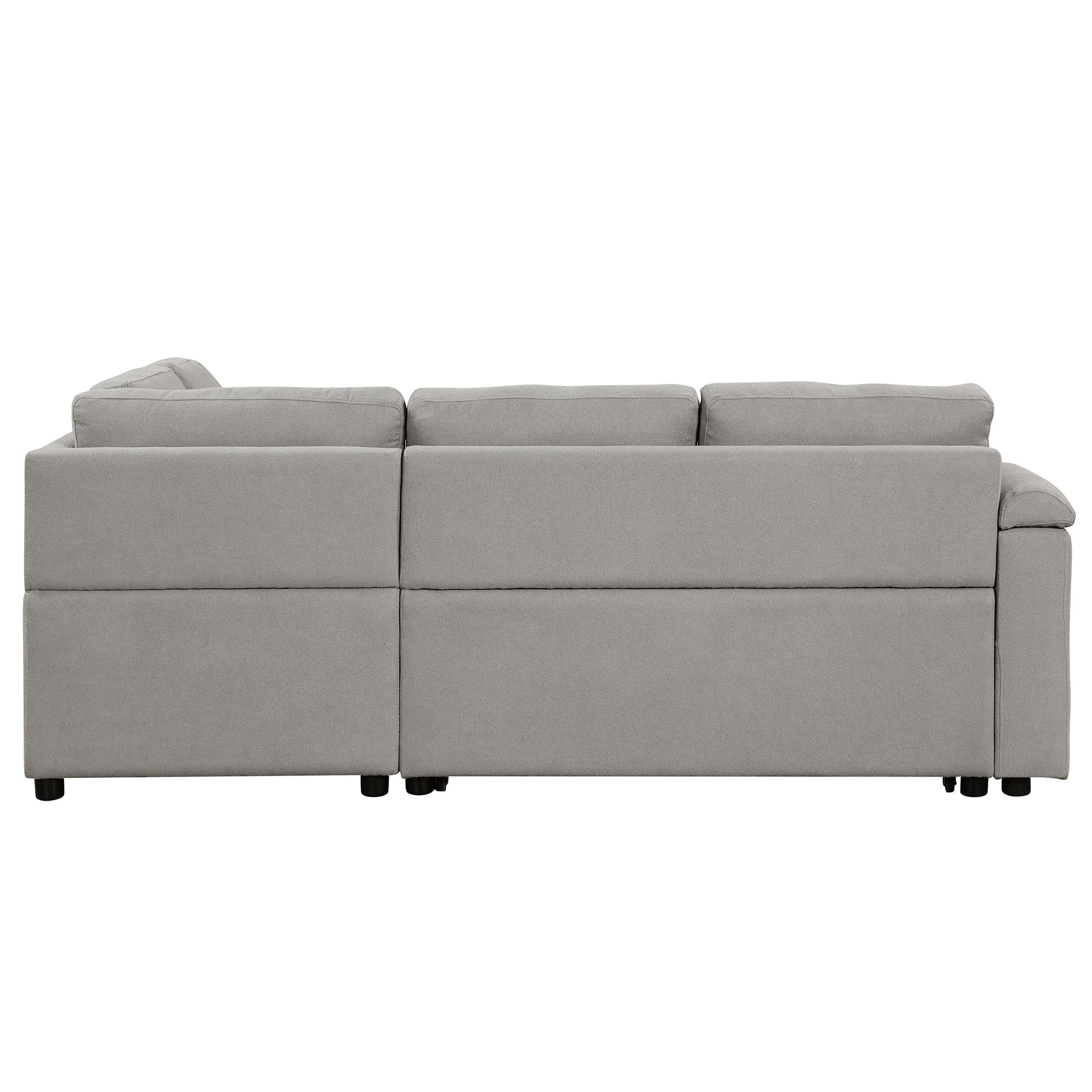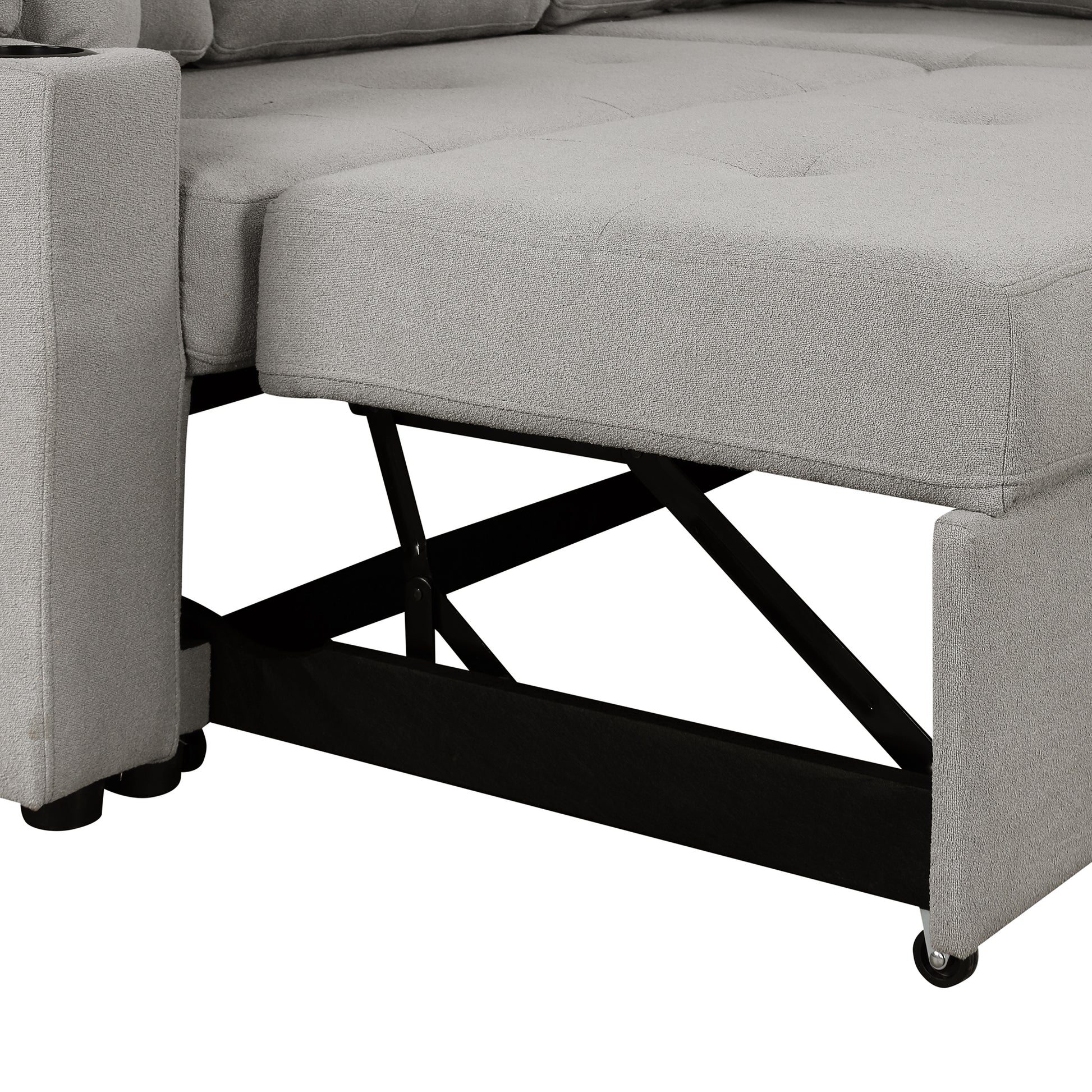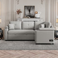 83" L Shape Sofa Bed Pull Out Sleeper Sofa With Wheels, Usb Ports, Power Sockets For Living Room, Grey Grey Foam Boucle 3 Seat