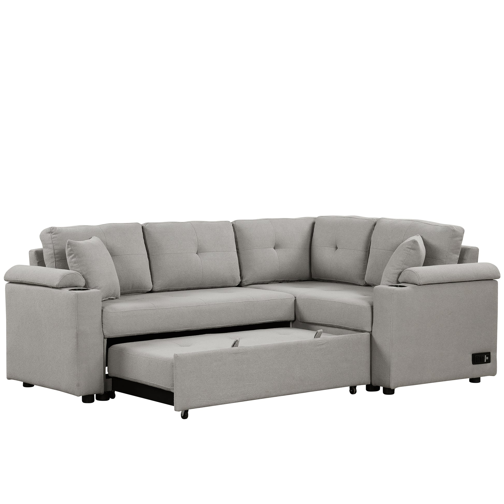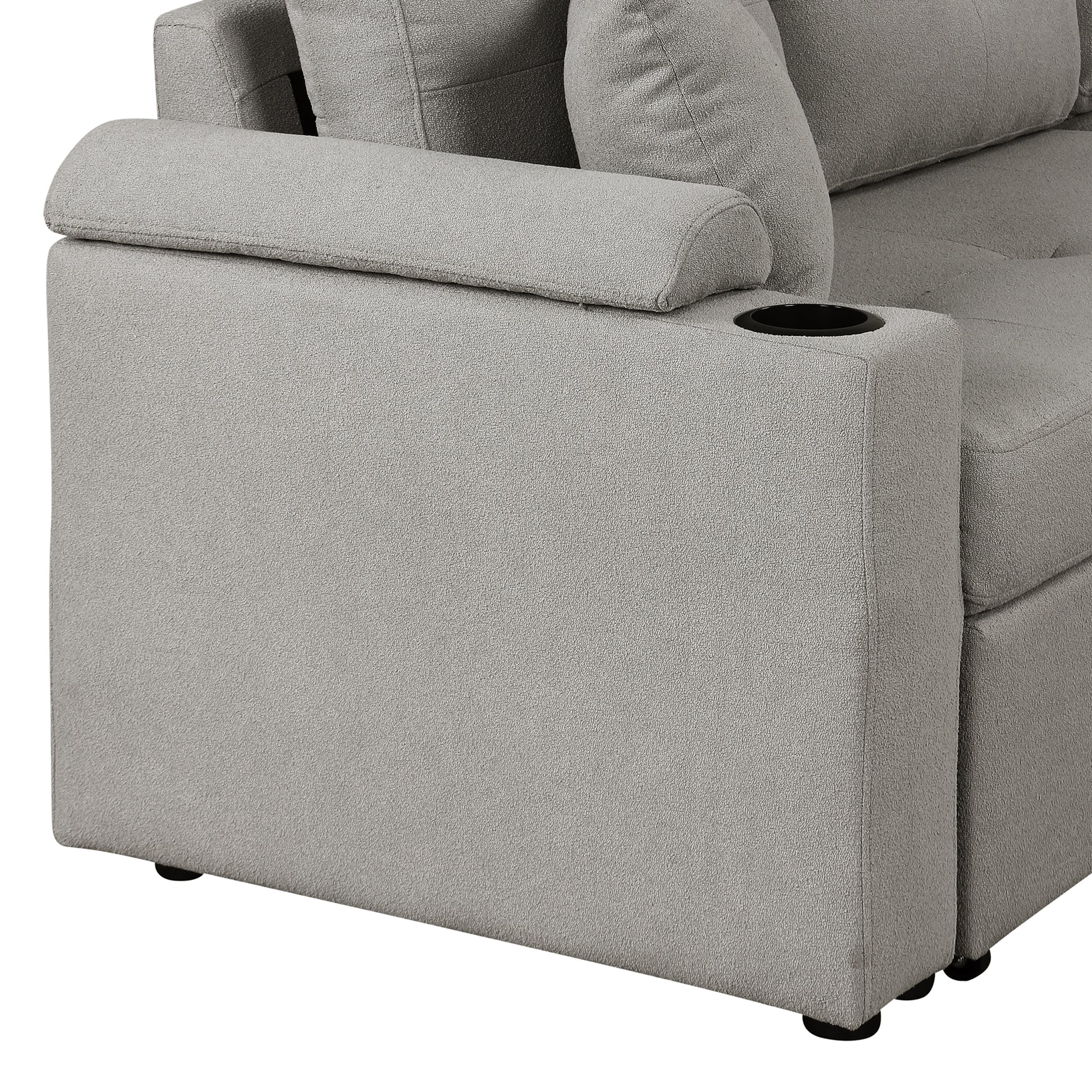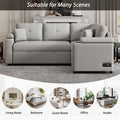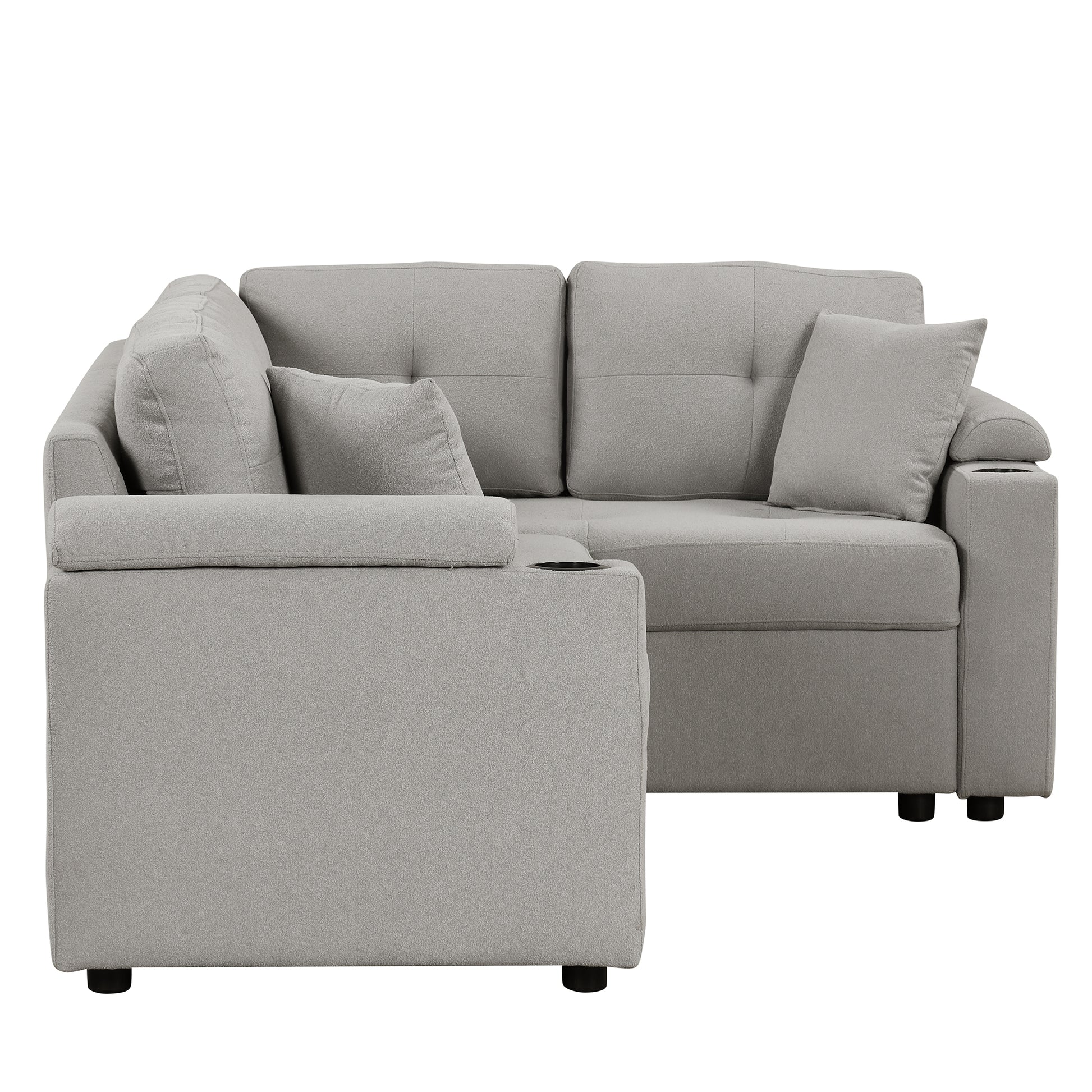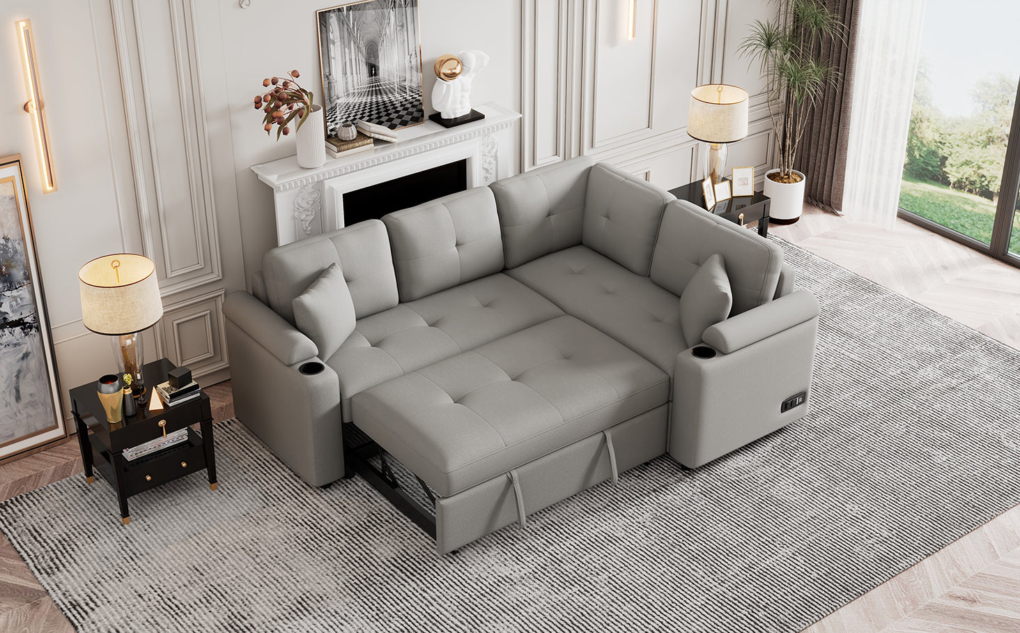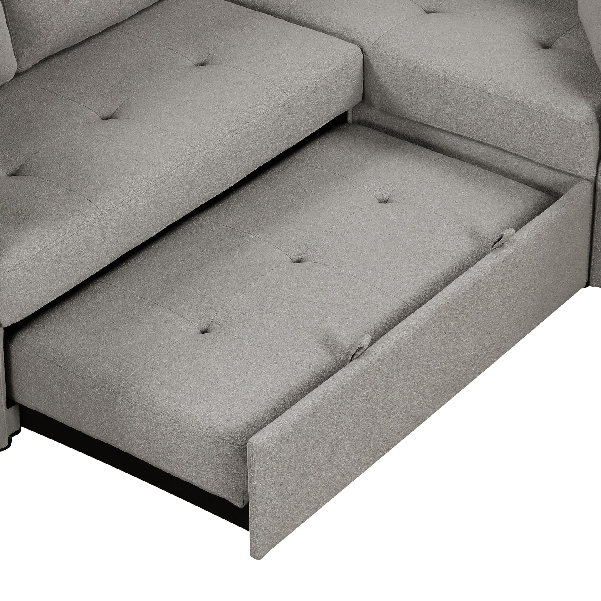 83" L Shape Sofa Bed Pull Out Sleeper Sofa With Wheels, Usb Ports, Power Sockets For Living Room, Grey Grey Foam Boucle 3 Seat