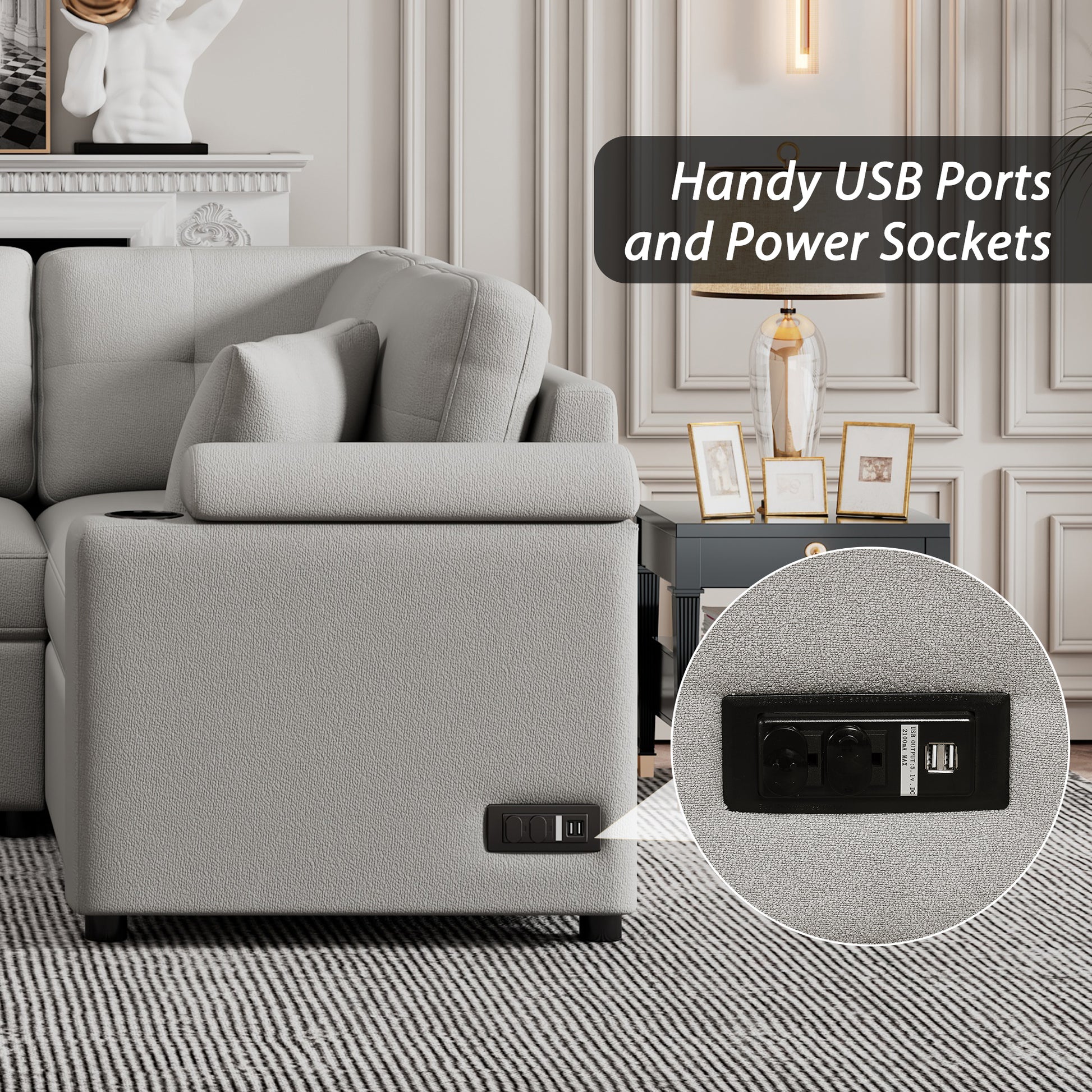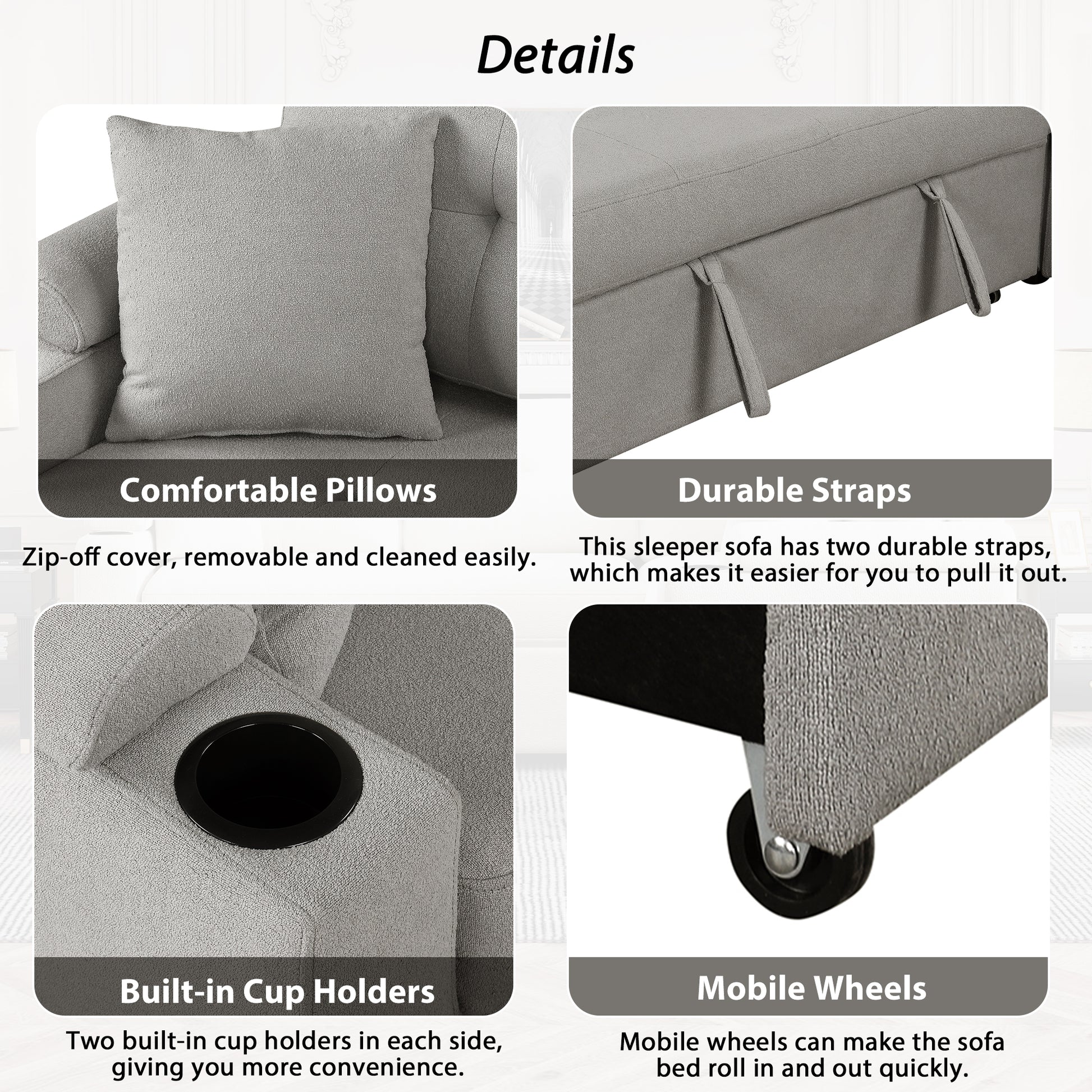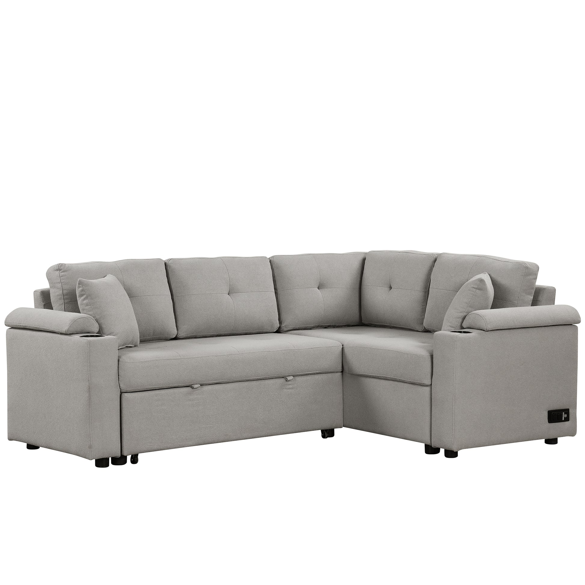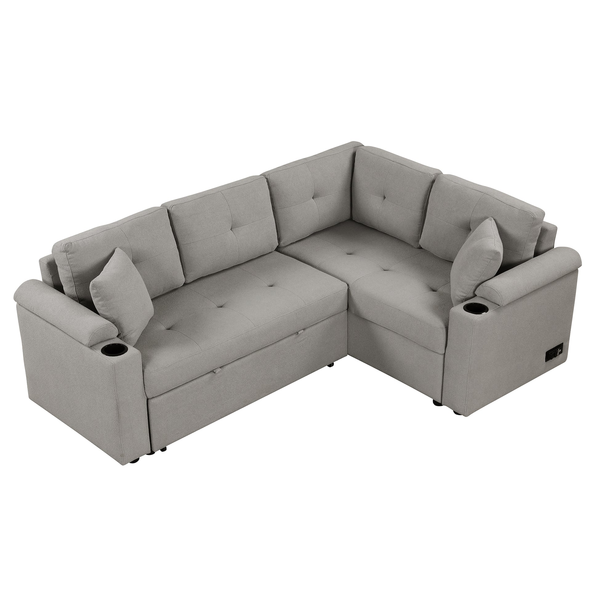 83" L Shape Sofa Bed Pull Out Sleeper Sofa With Wheels, Usb Ports, Power Sockets For Living Room, Grey Grey Foam Boucle 3 Seat