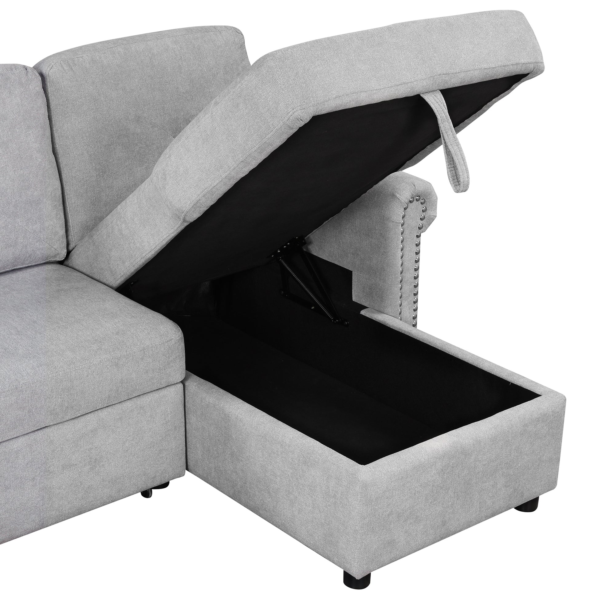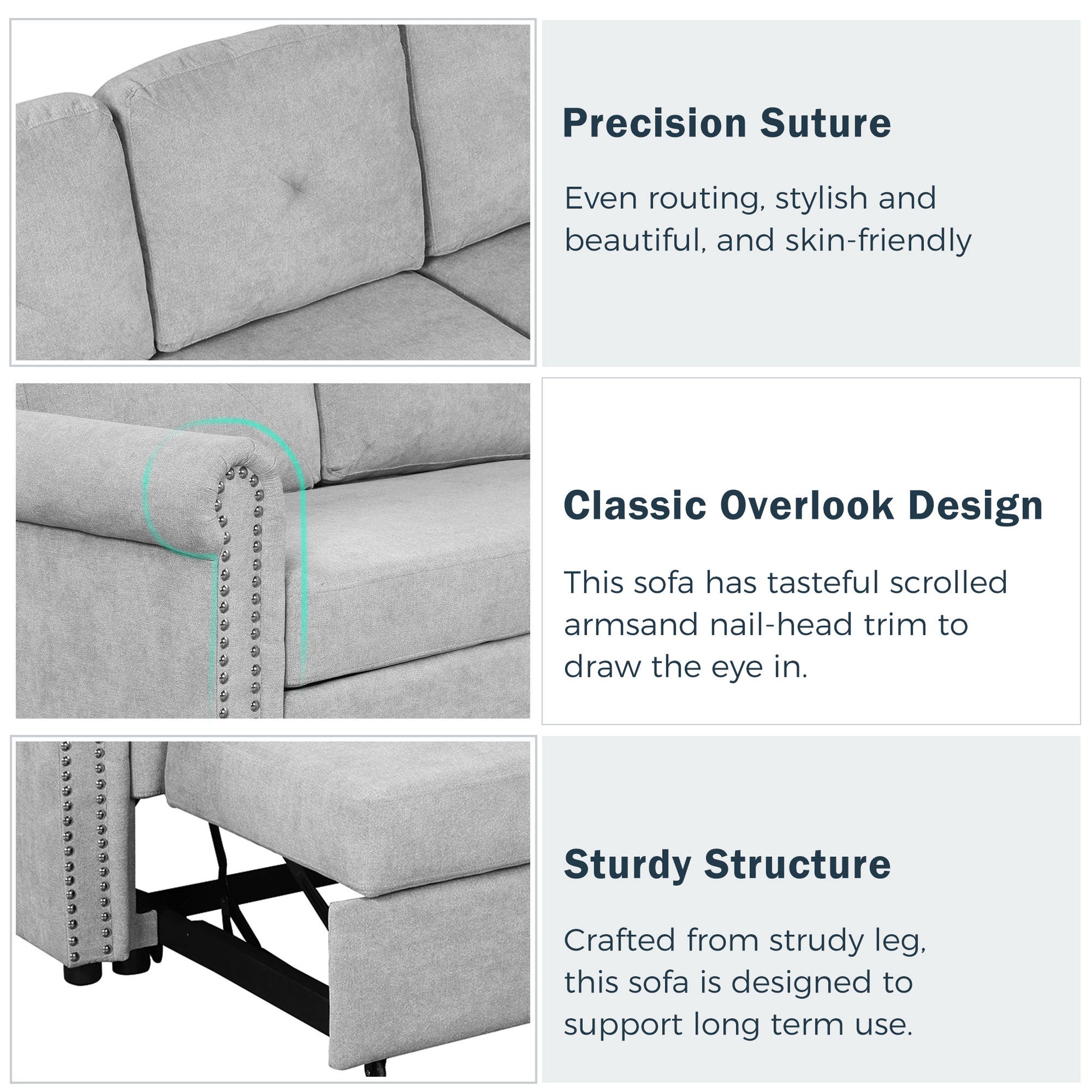 83" Modern Convertible Sleeper Sofa Bed With Storage Chaise,Gray Old Sku:Sg000346Aaa Gray Foam Velvet