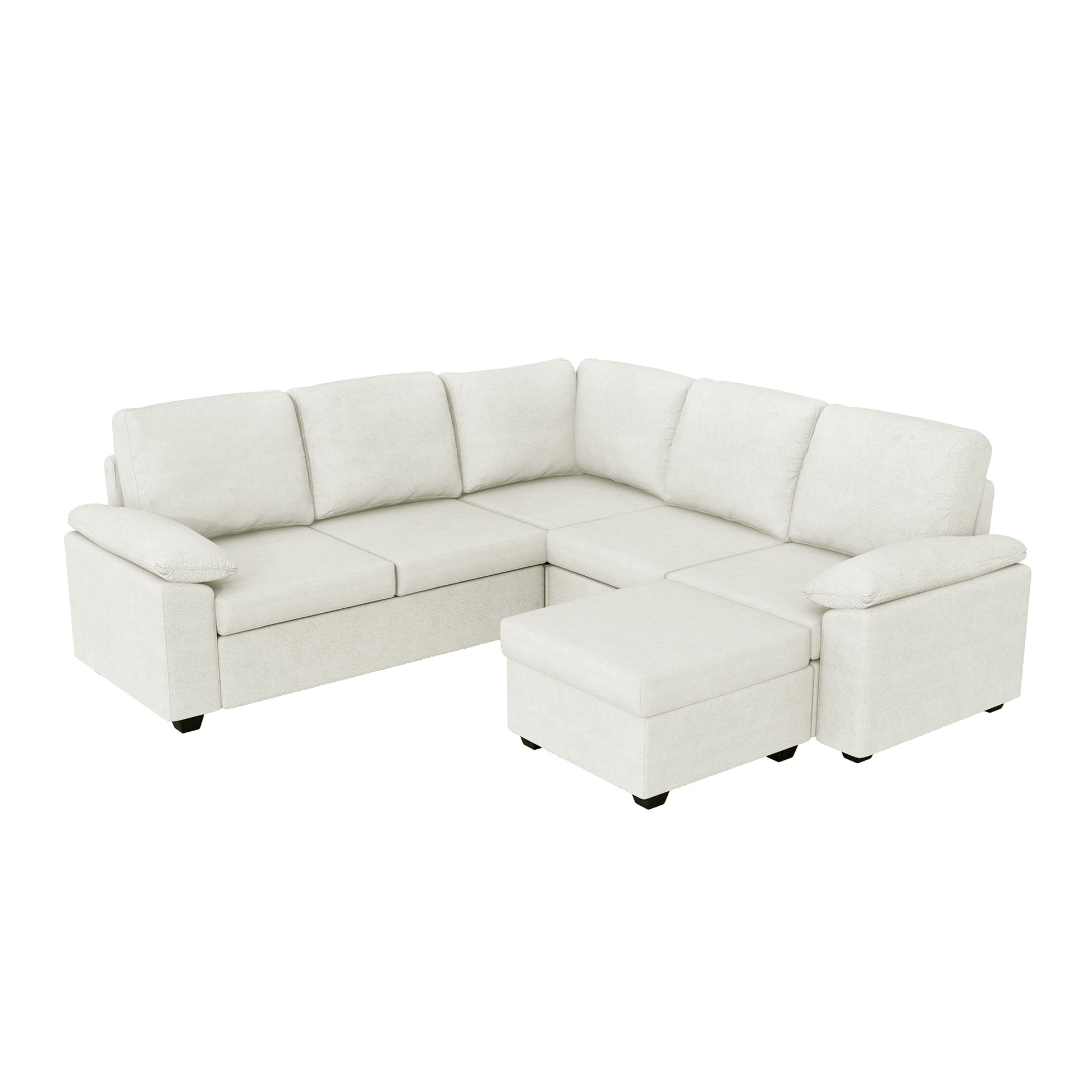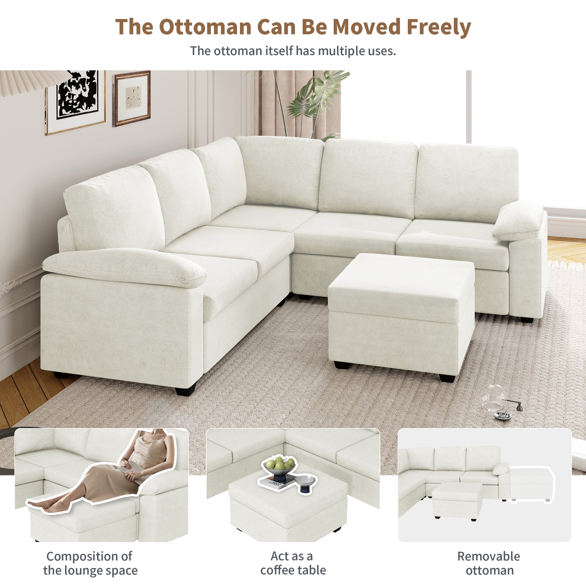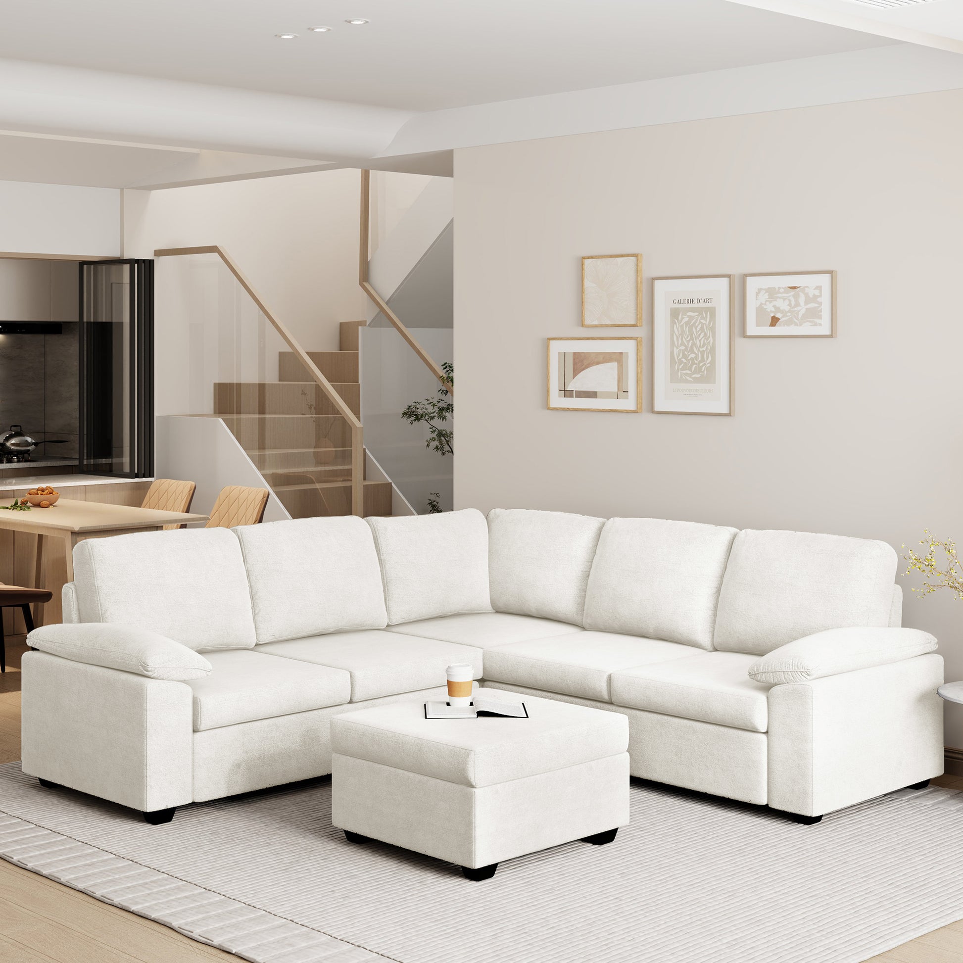 84*84" Modern Velvet Sectional Sofa Set,Large U Shaped Upholstered Corner Couch With Ottoman,Armrest Pillow,6 Seat Indoor Furniture For Living Room,Apartment,Office,2 Colors Beige Velvet 6 Seat