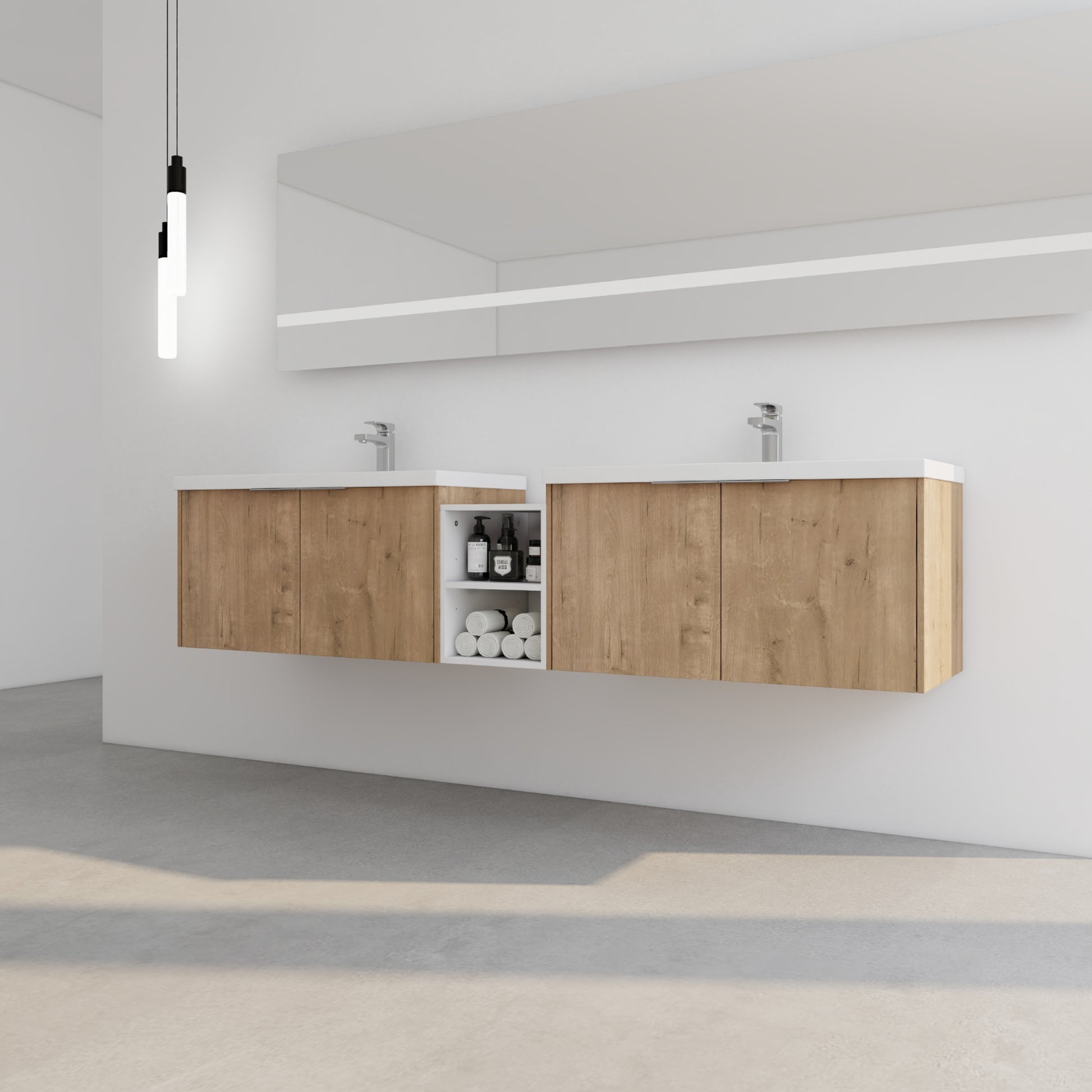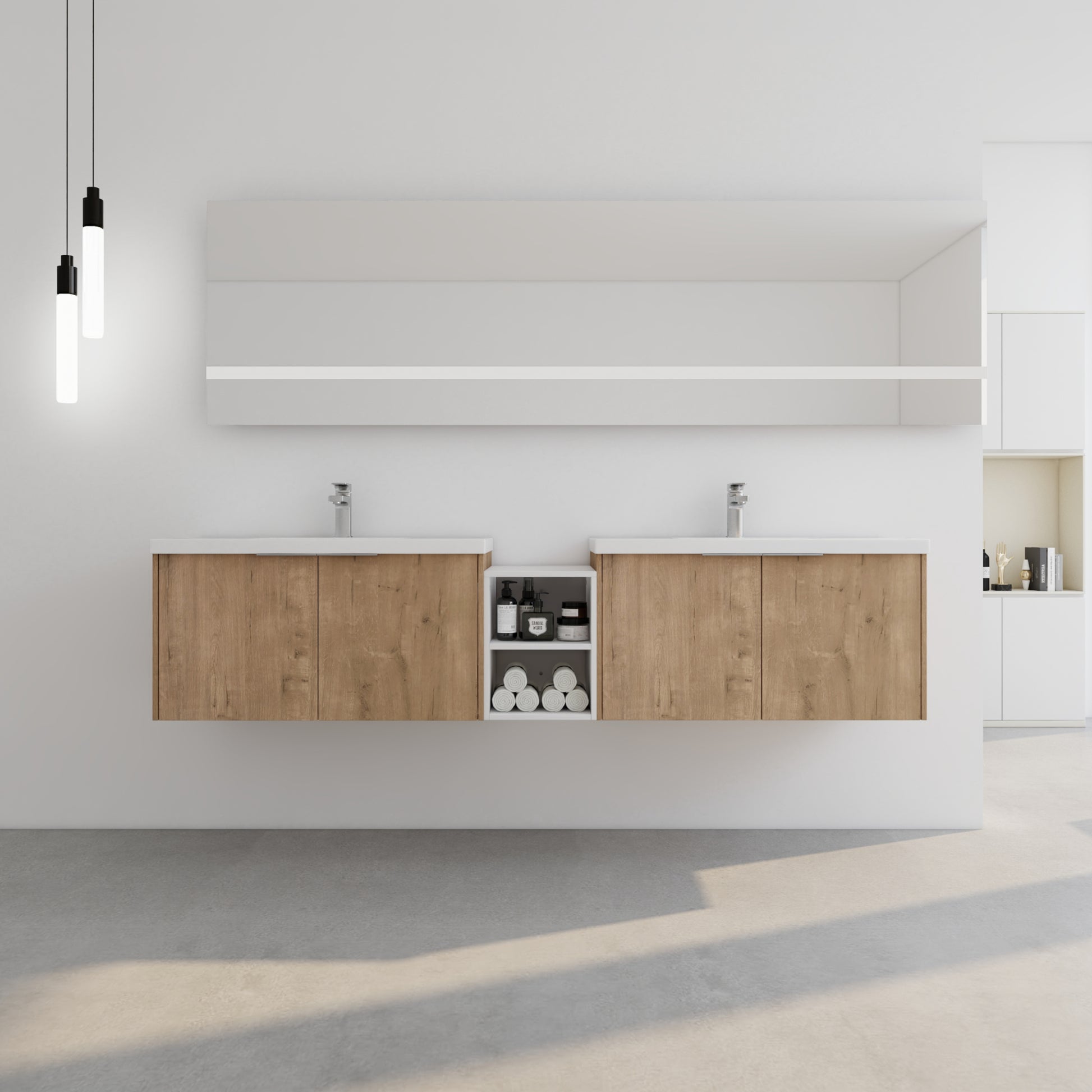 | Package includes | - 2x Vanity Cabinet; - 1x Small Storage Shelves;- 2x Resin Sink;- 4x Metal Handle; Parts Package |