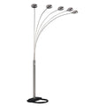 84" Tall Metal Floor Lamp With Satin Nickel Finish And 5 Adjustable Arch Arms Brushed Nickel Metal