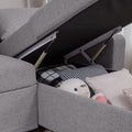 84"Adjustable Backrest Sofa Bed,3 In 1 Linen Sleeper With Usb Ports & Cup Holders, Pull Out Couch Bed With Storage Chaise,Convertible L Shaped Couch For Living Room Grey Linen Metal Primary Living