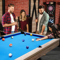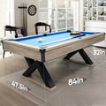 84"Billiard Table With Rustic Blond Finishk Shaped Legs And Royal Blue Cloth Indoor Fitness Blue Brown Gym Gym Mdf