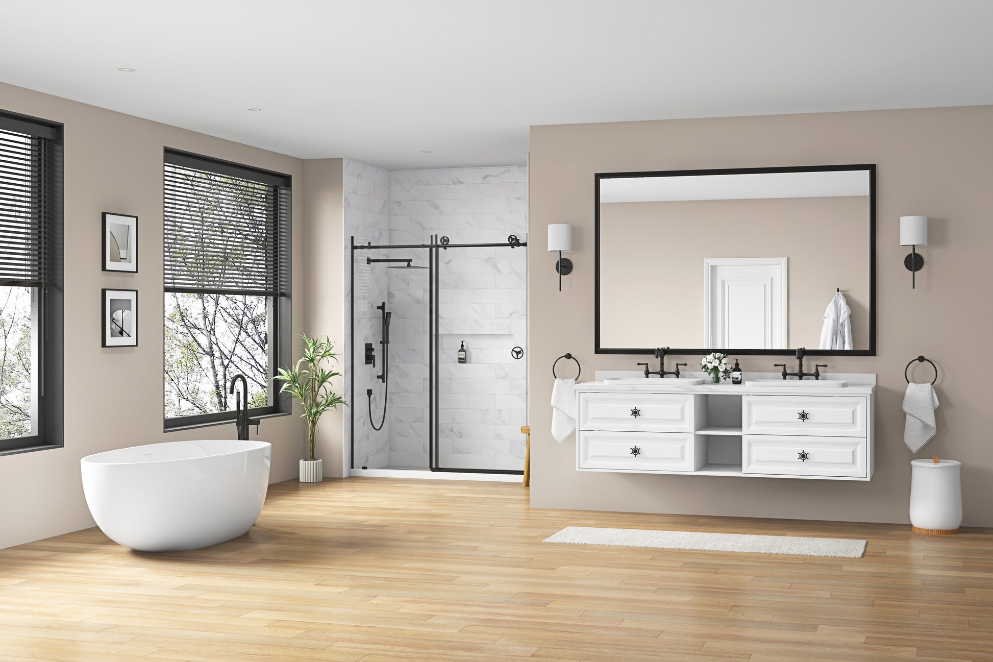 84In. W X 48In. H Metal Framed Bathroom Mirror For Wall, X Inch Rectangle Mirror, Bathroom Vanity Mirror Farmhouse, Anti Rust, Hangs Horizontally Or Vertiy Matt Black Aluminium