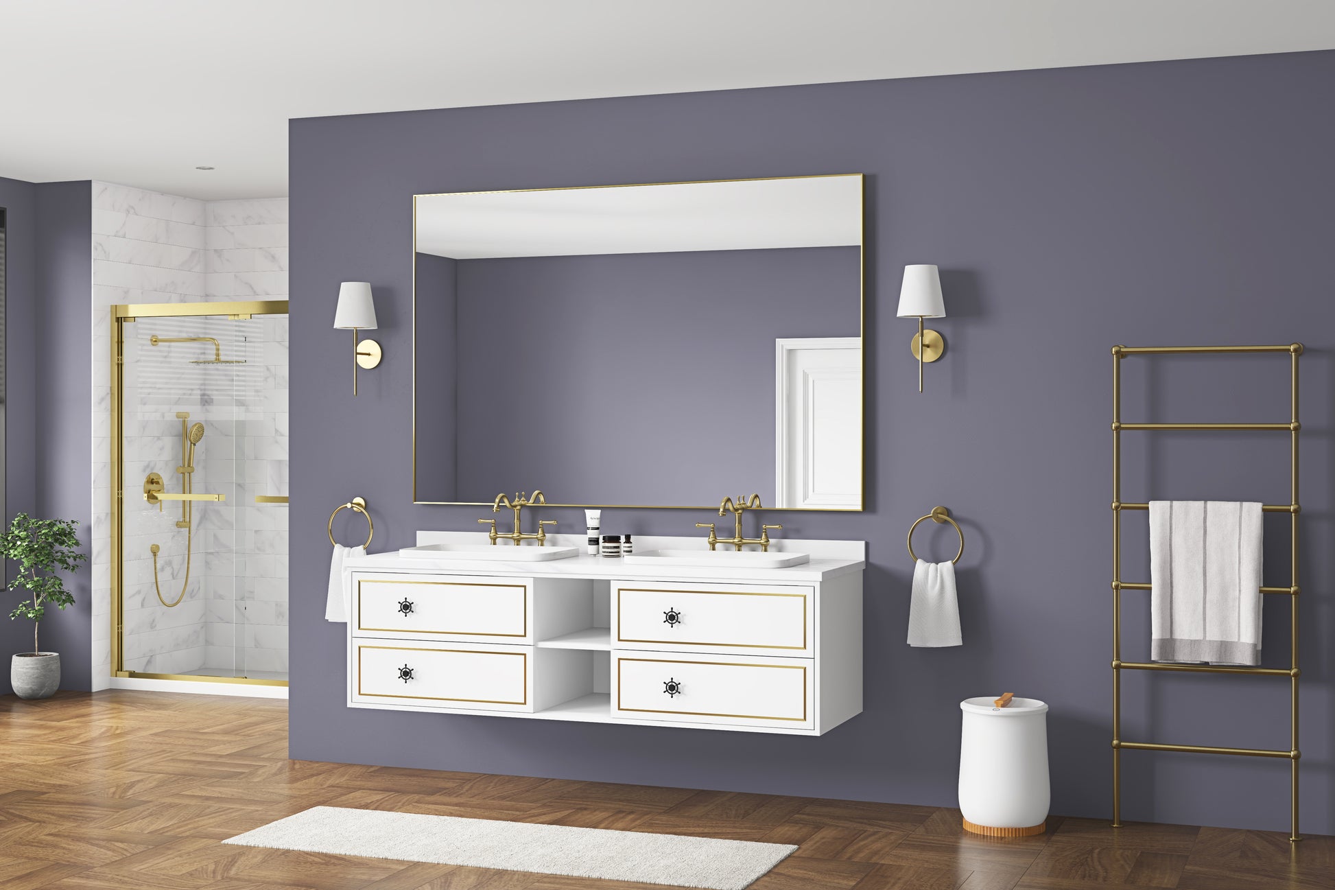 84In. W X 48In. H Oversized Rectangular Black Framed Led Mirror Anti Fog Dimmable Wall Mount Bathroom Vanity Mirror Hd Wall Mirror Kit For Gym And Dance Studio 48X 72Inches With Safety Ba Gold Aluminium