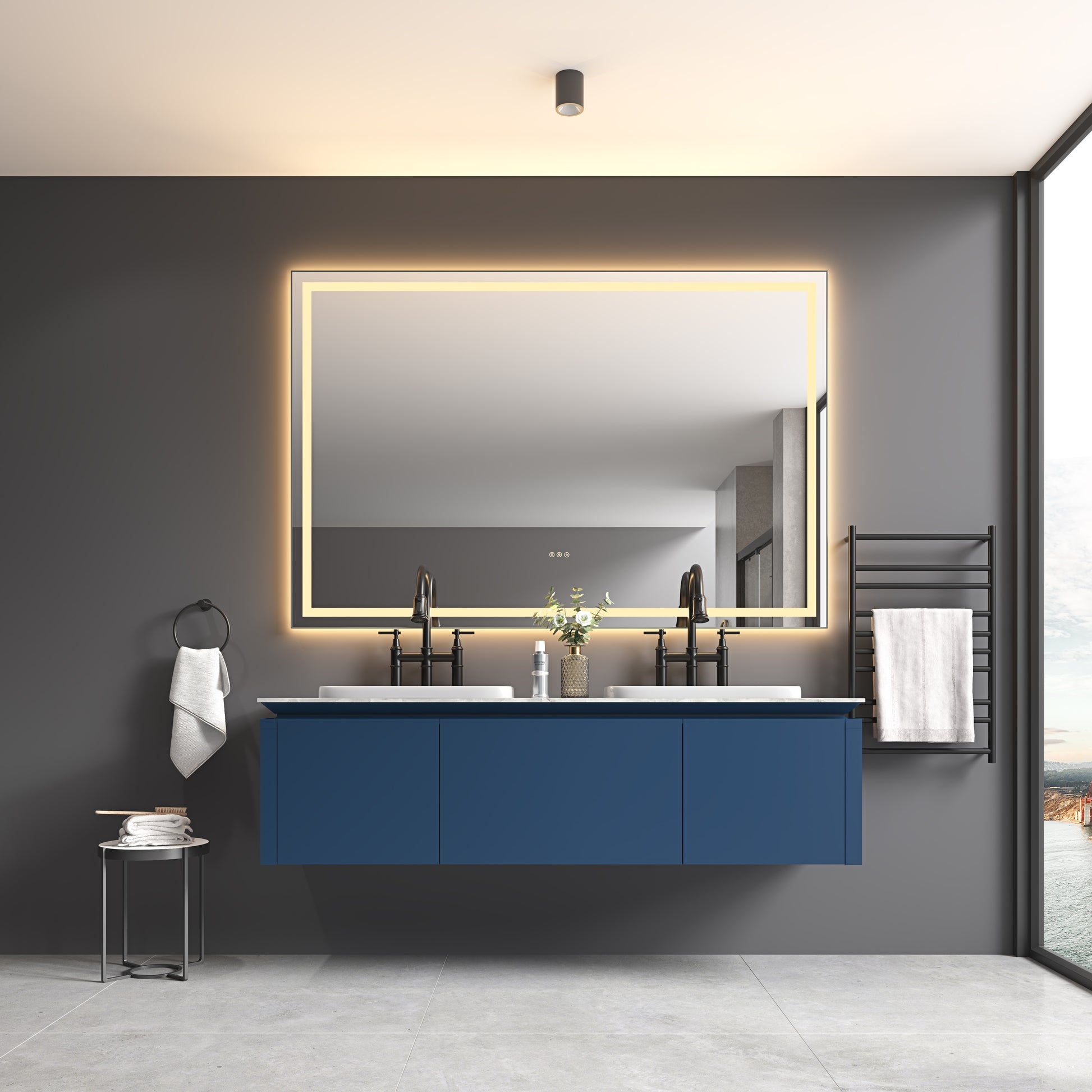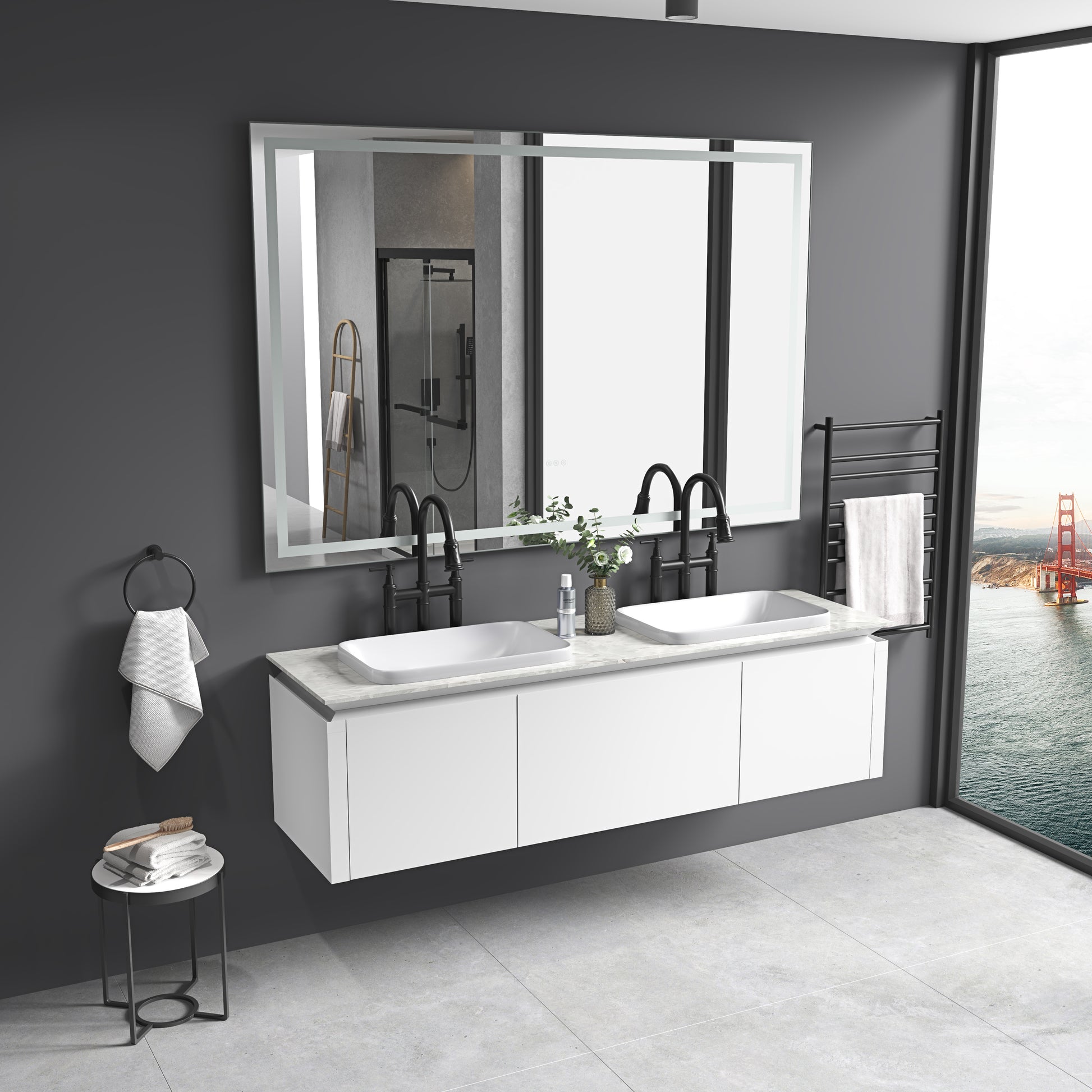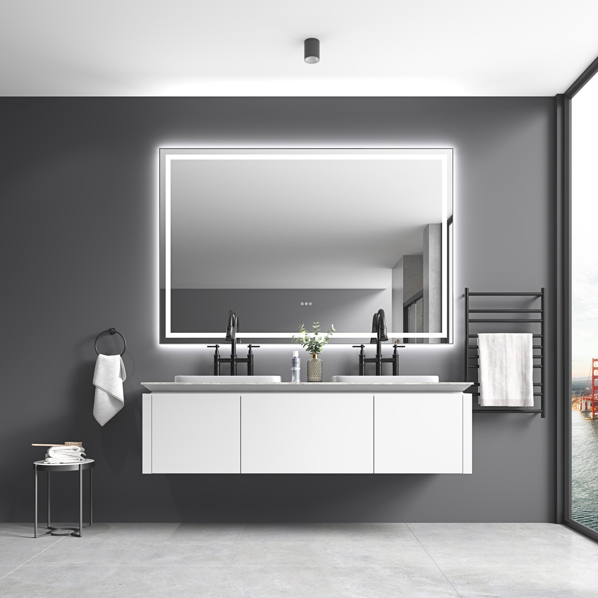 84In. W X 48In. H Oversized Rectangular Black Framed Led Mirror Anti Fog Dimmable Wall Mount Bathroom Vanity Mirror Hd Wall Mirror Kit For Gym And Dance Studio 48X 84Inches With Safety Ba Matte Black Aluminium