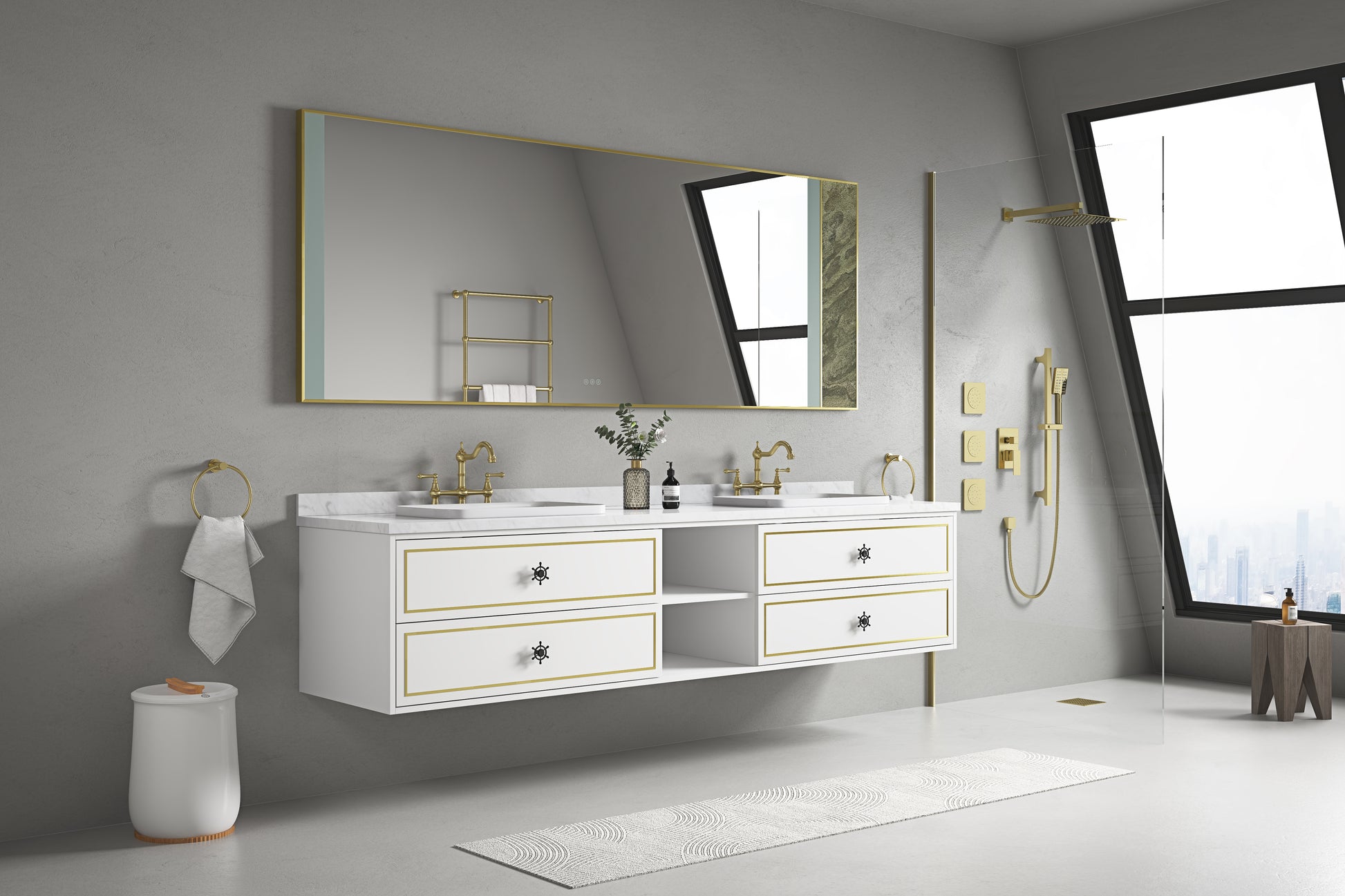 84X 36Inch Led Mirror Bathroom Vanity Mirror With Back Light, Wall Mount Anti Fog Memory Large Adjustable Vanity Mirror Natural Stone Decoration Decoration Follows Led Changes Gold Aluminium