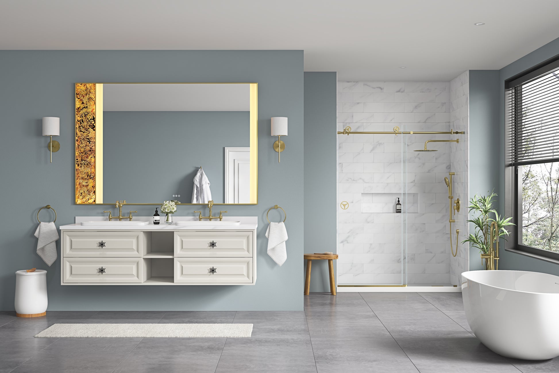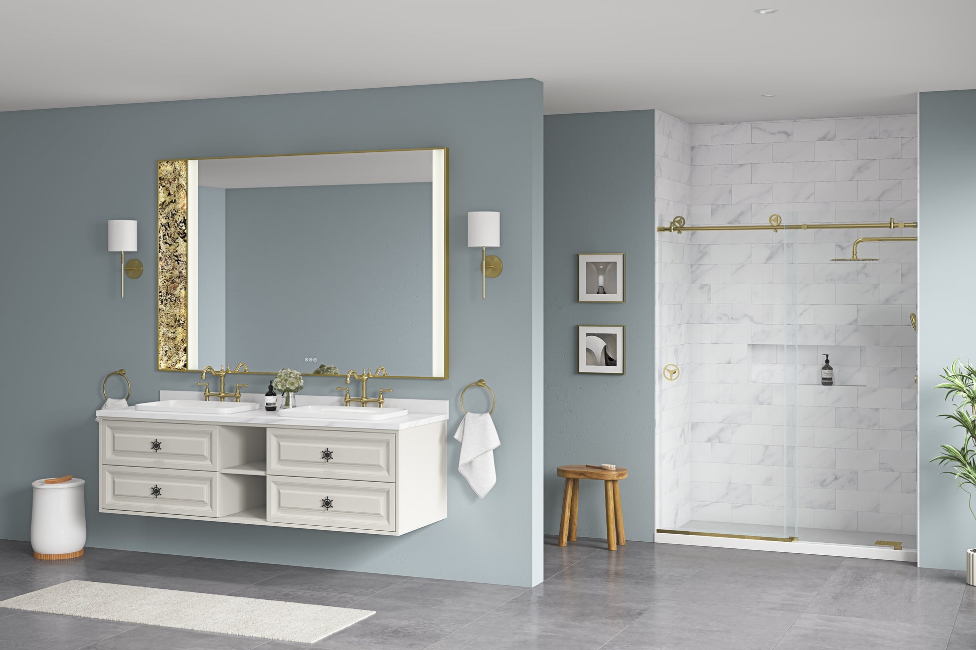 84X 48Inch Led Mirror Bathroom Vanity Mirror With Back Light, Wall Mount Anti Fog Memory Large Adjustable Vanity Mirrornatural Stone Decoration Decoration Follows Led Changes Gold Aluminium