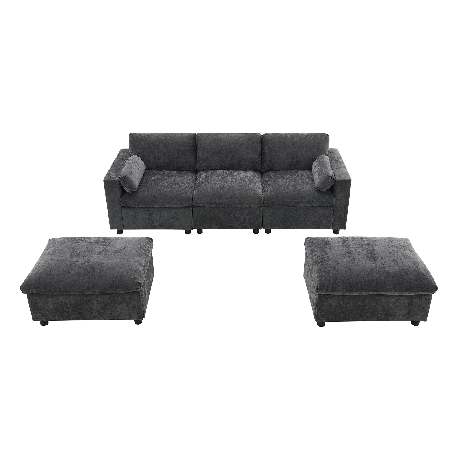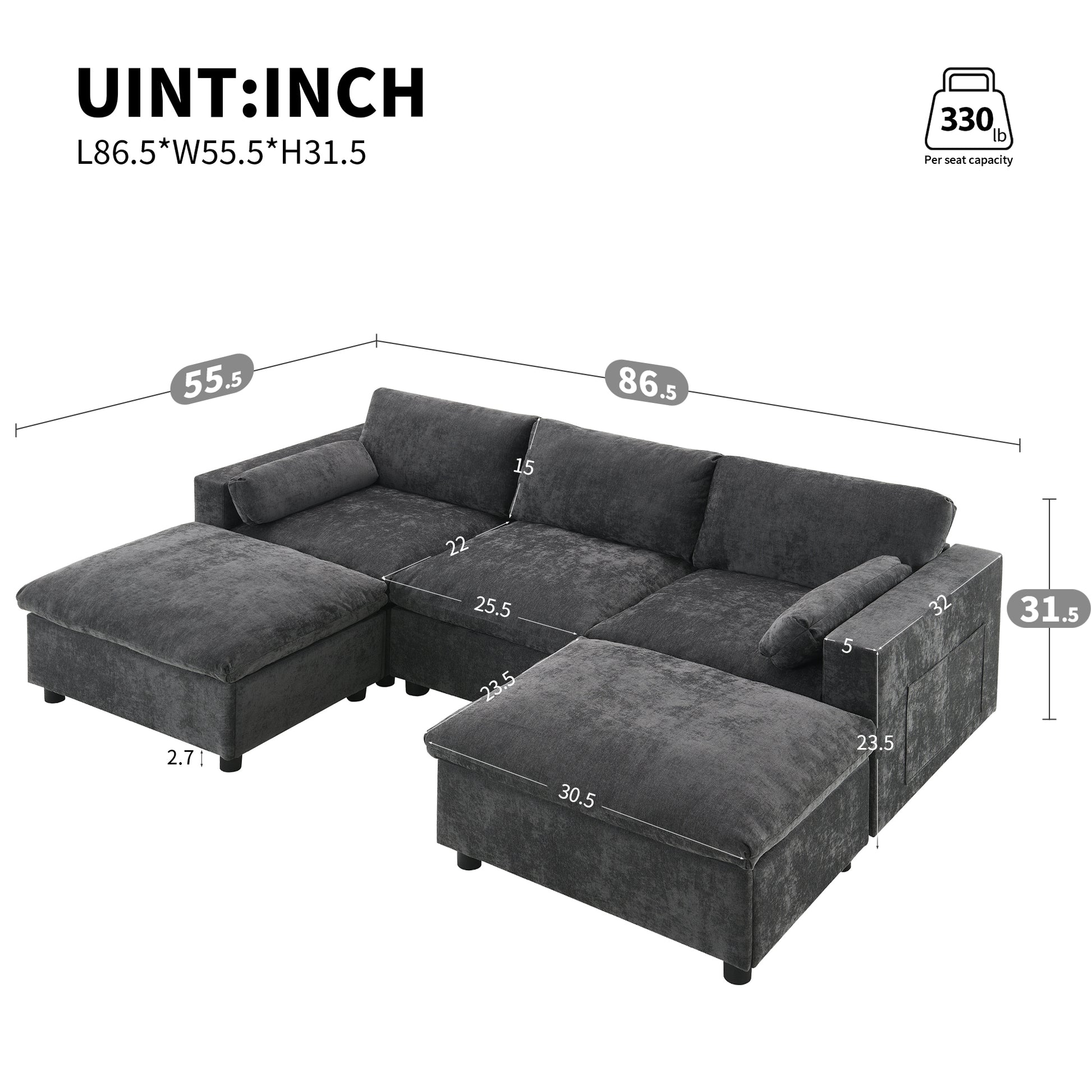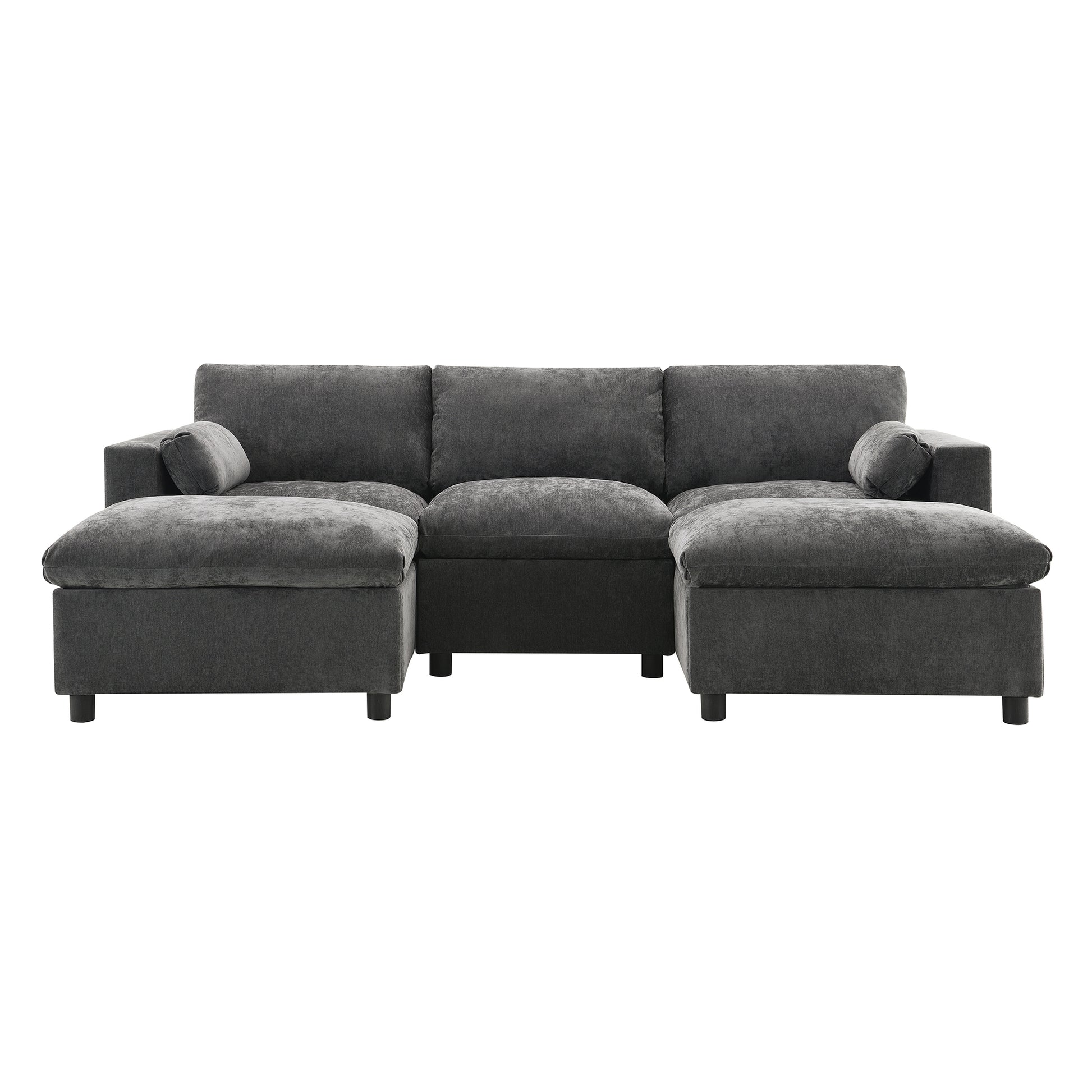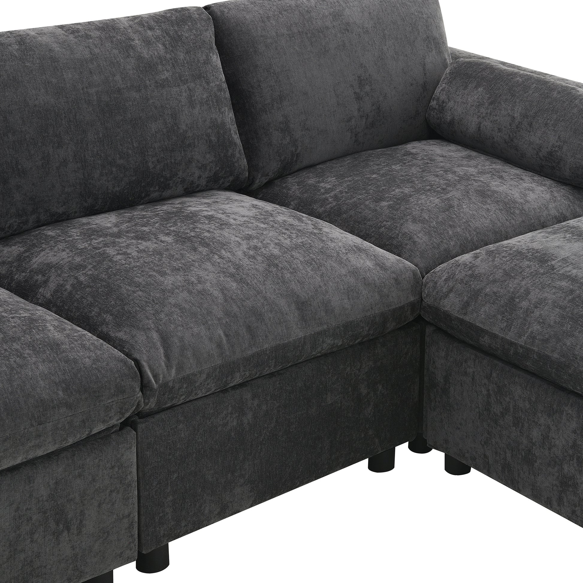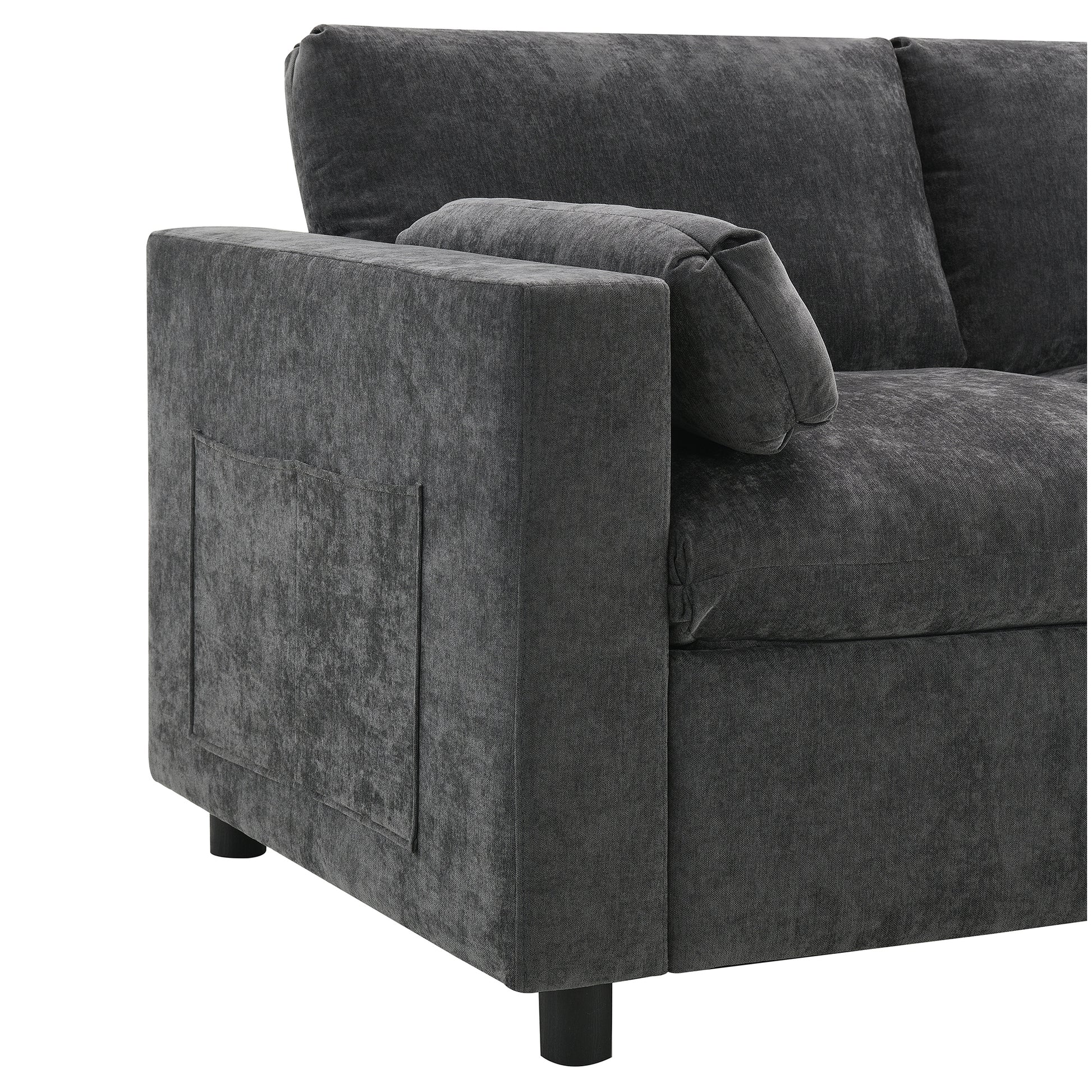 86.5''Chenille Sectional Sofa With Storage Pockets, 5 Seat U Shaped Sleeper Couch Set,2 Pic Free Combination,Convertible Sofa Bed With Ottoman For Living Room,Apartment,3 Colors Dark Grey Chenille 5 Seat