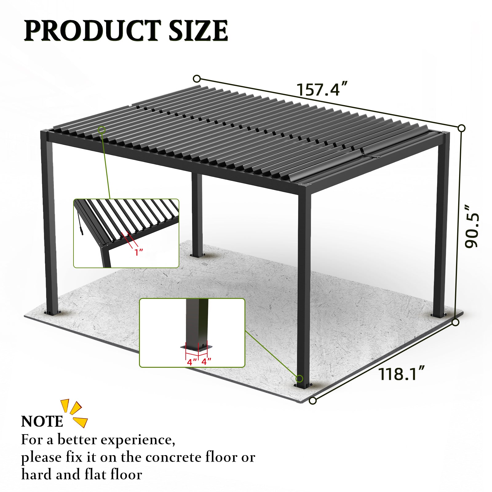 8610C Louver Pergola 10X13Ft Aluminum Frame & Louvers With 2 Louvered Aluminium Sides Black Garden & Outdoor High Wind Resistant Gazebos Aluminium