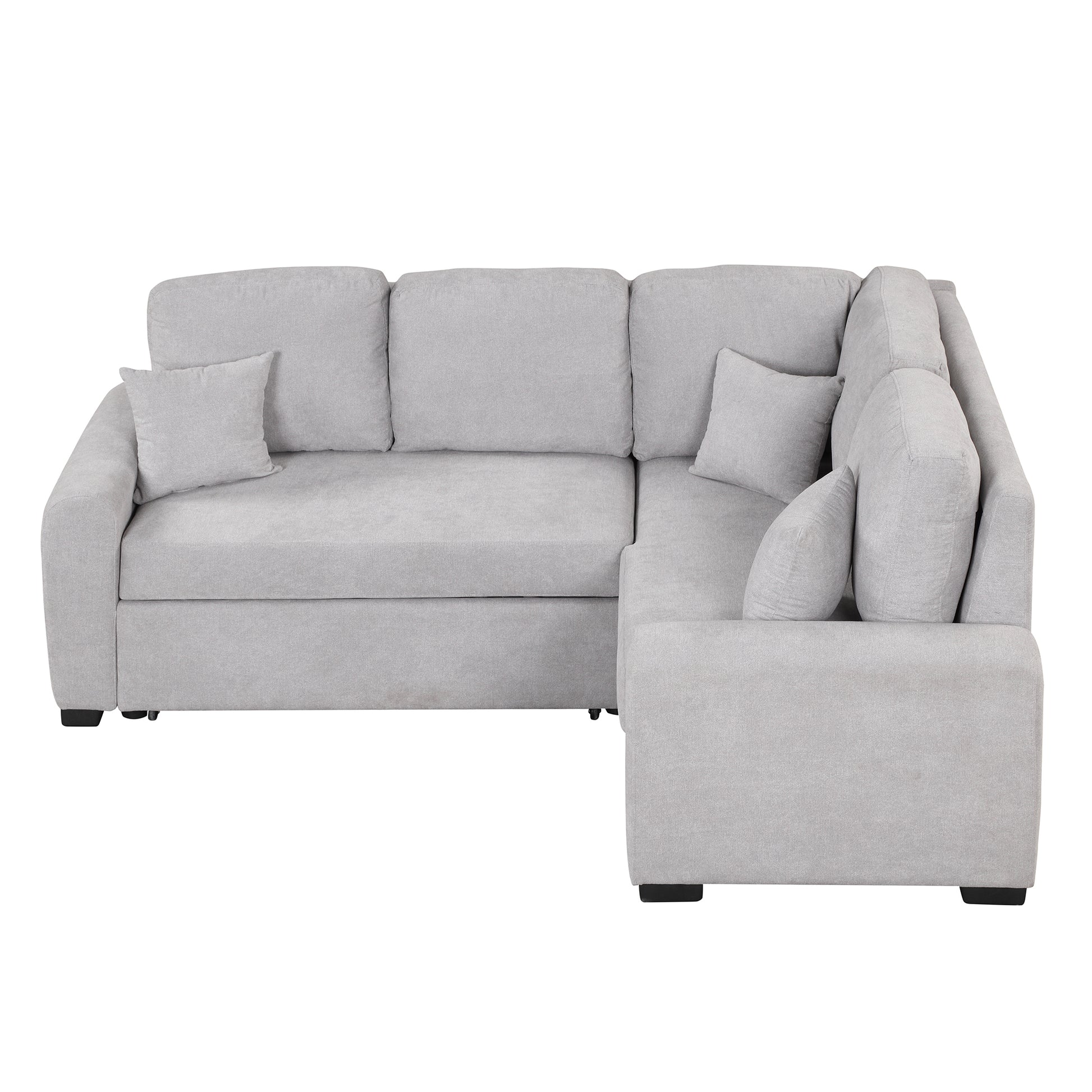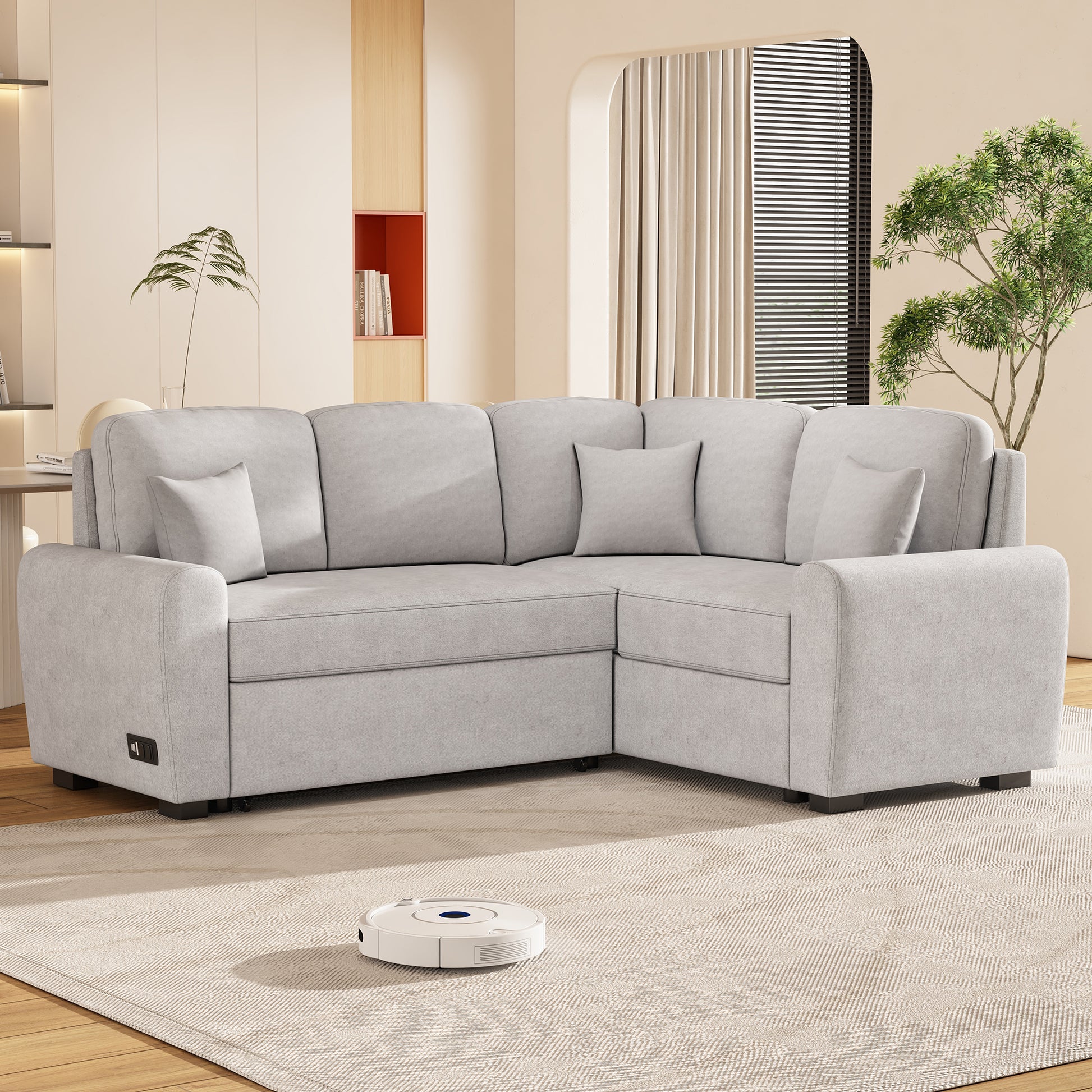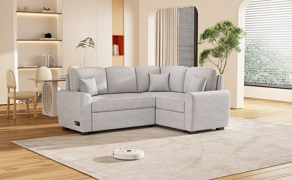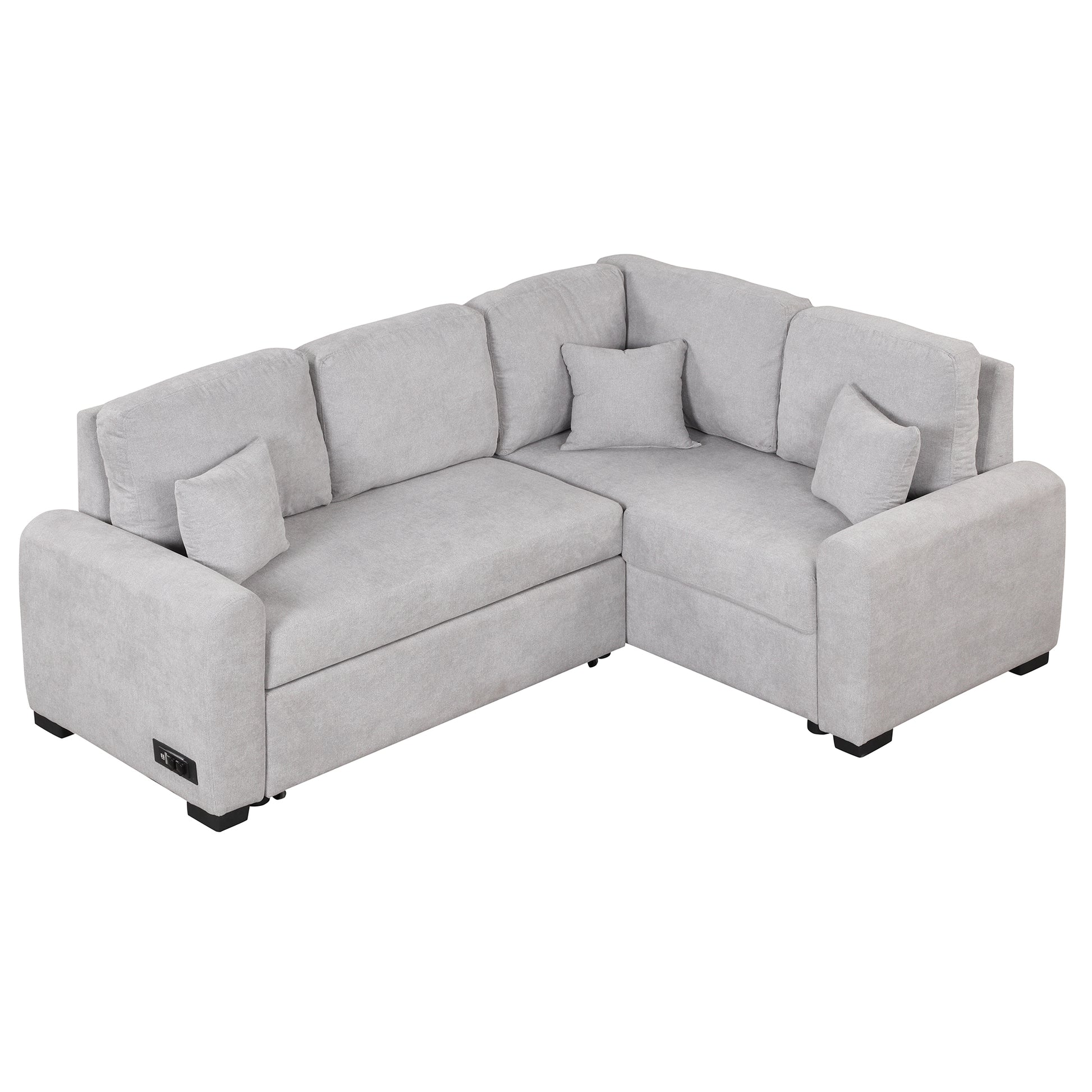 87.4"Sectional Sleeper Sofa With Usb Charging Port And Plug Outlet,Pull Out Sofa Bed With 3 Pillows, L Shape Chaise For Living Room Small Apartment,Grey Old Sku Sg000720Aae Grey Foam Chenille