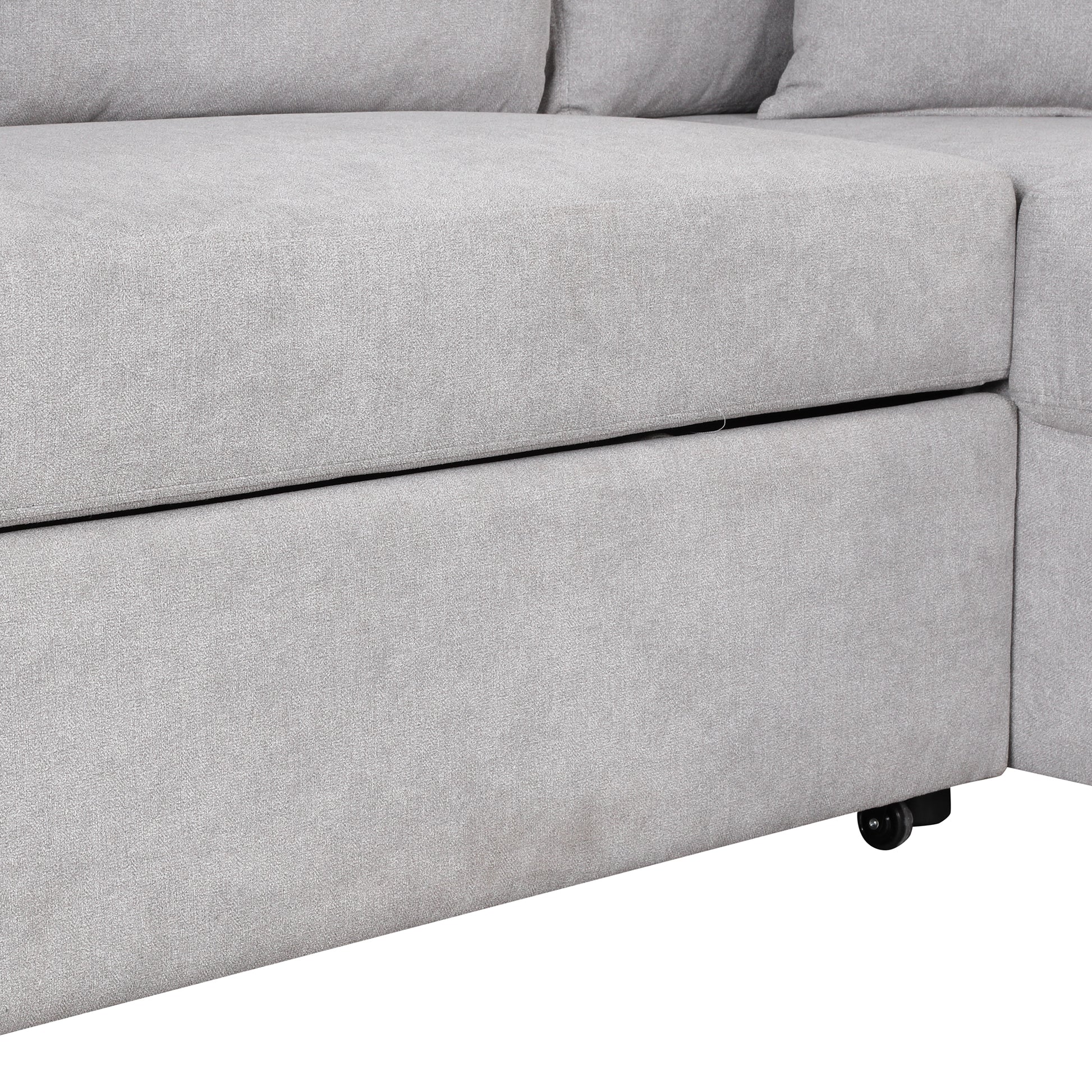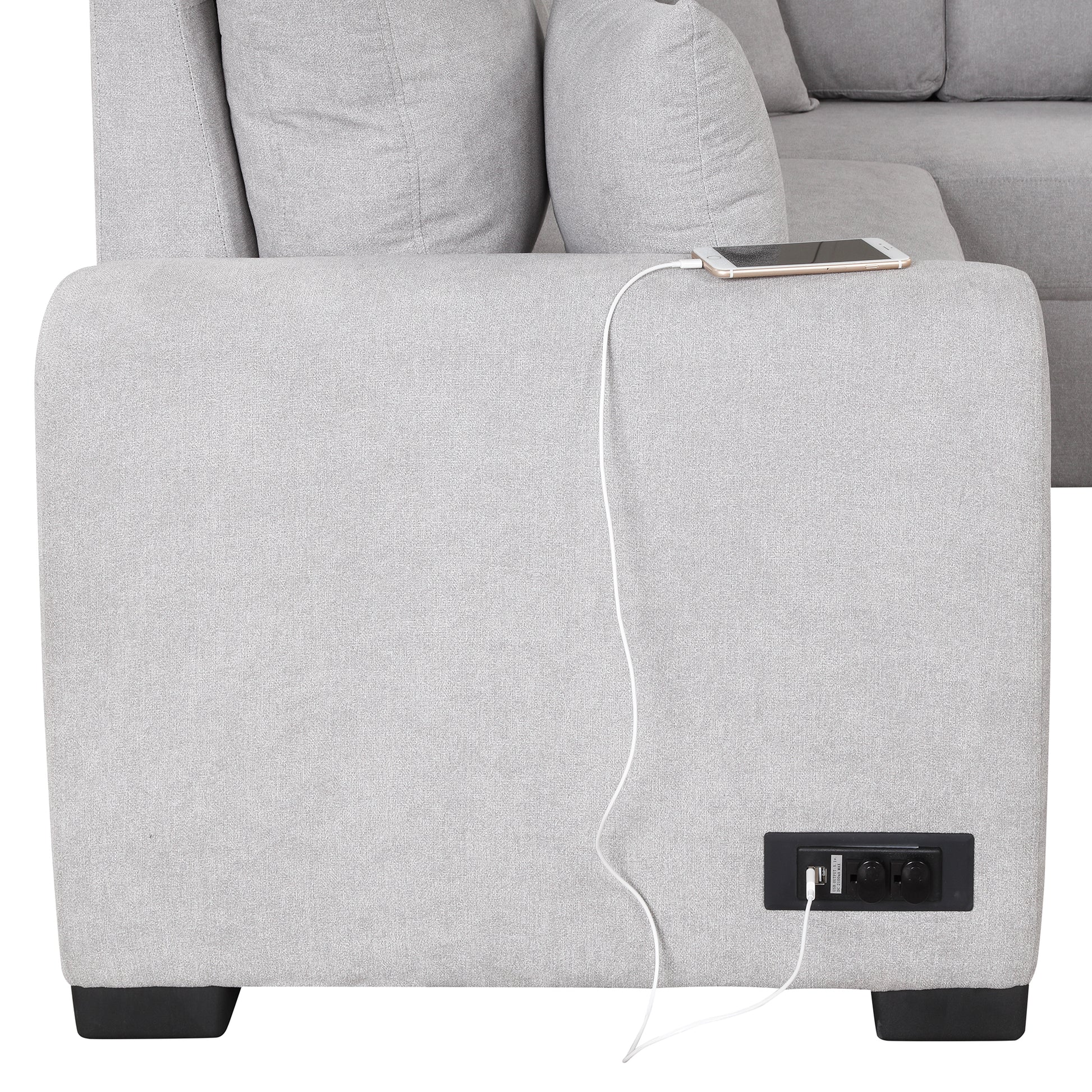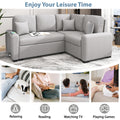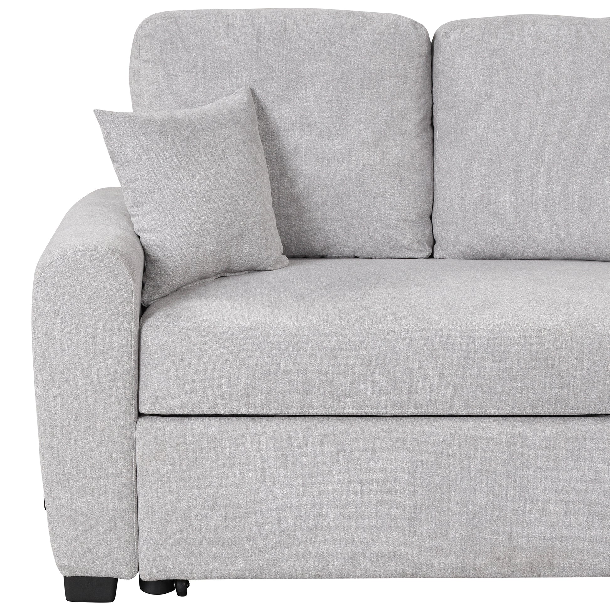87.4"Sectional Sleeper Sofa With Usb Charging Port And Plug Outlet,Pull Out Sofa Bed With 3 Pillows, L Shape Chaise For Living Room Small Apartment,Grey Old Sku Sg000720Aae Grey Foam Chenille