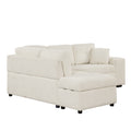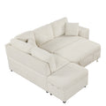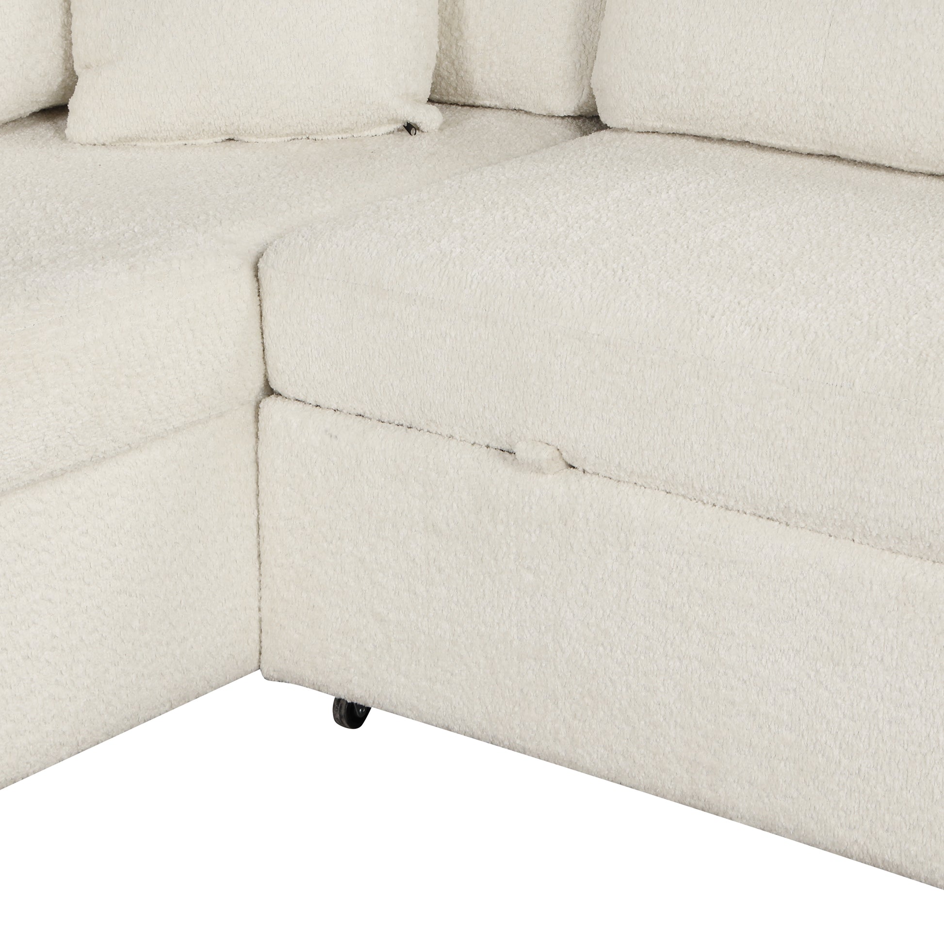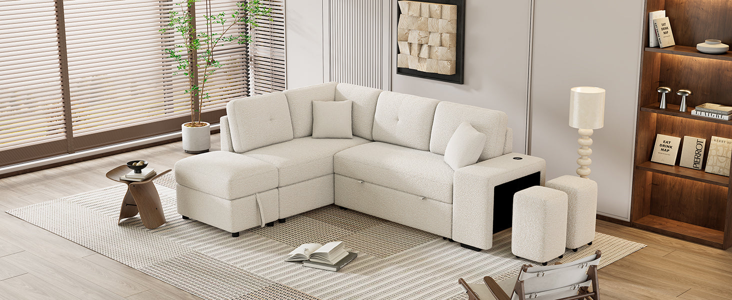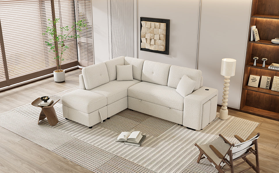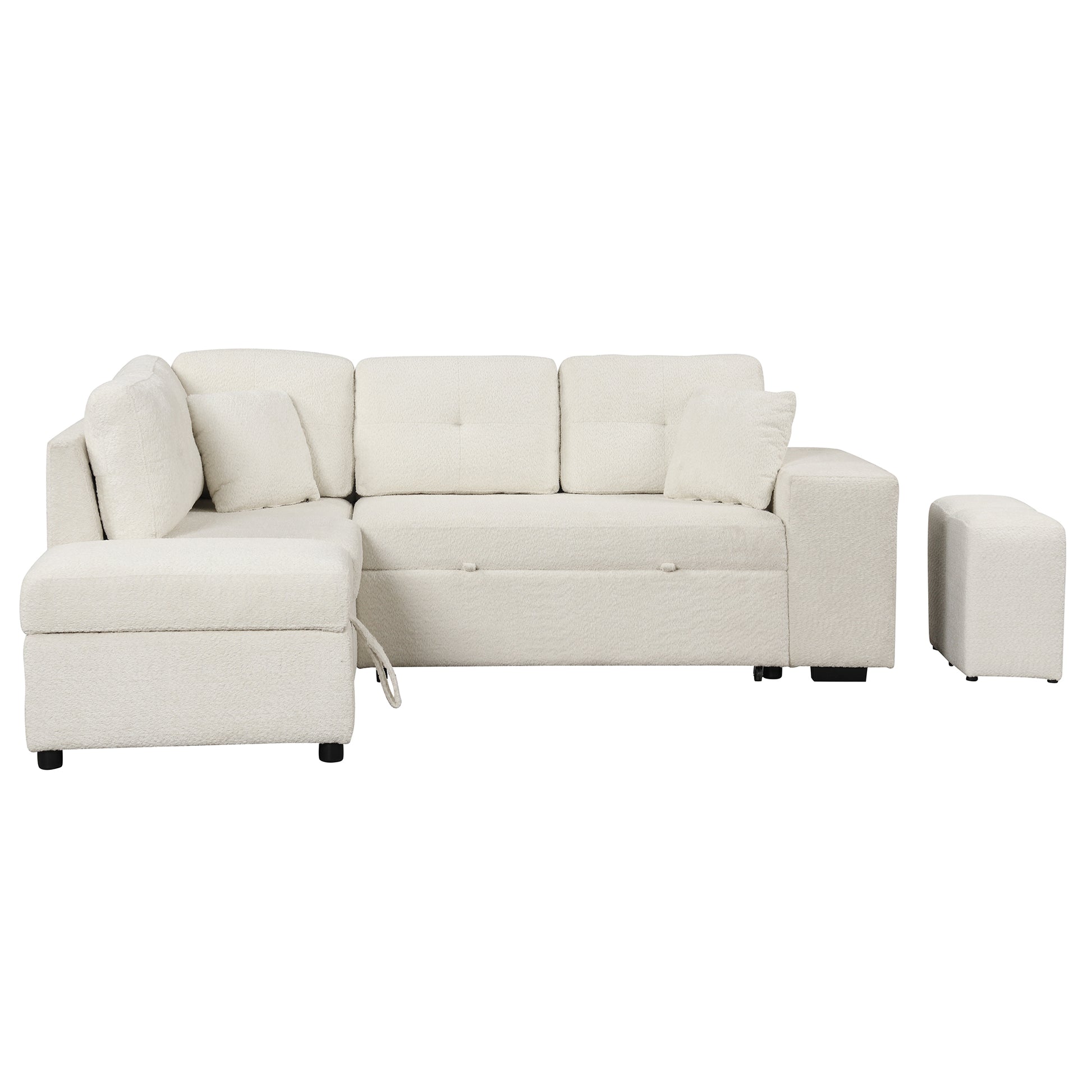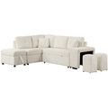 87.7" Convertible Sleeper, Sectional Pull Out Sofa Bed With Storage Ottoman, 2 Throw Pillows, 2 Stools, Wireless Charger And Two Hidden Usb Ports For Living Room, Cream Cream Chenille 4 Seat
