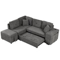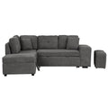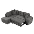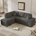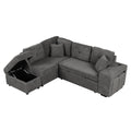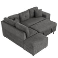 87.7" Convertible Sleeper, Sectional Pull Out Sofa Bed With Storage Ottoman, 2 Throw Pillows, 2 Stools, Wireless Charger And Two Hidden Usb Ports For Living Room, Dark Gray Dark Gray Chenille 4 Seat