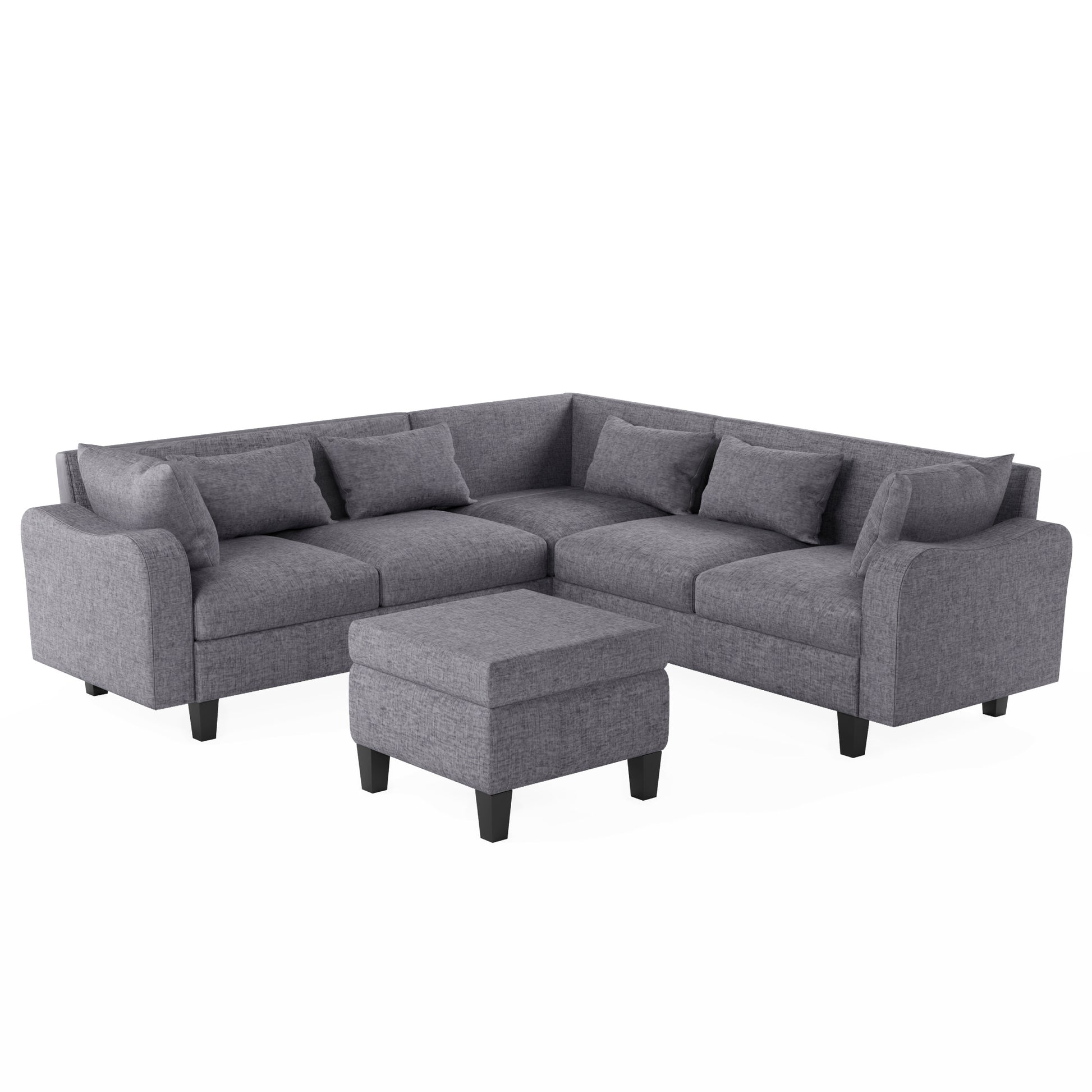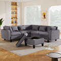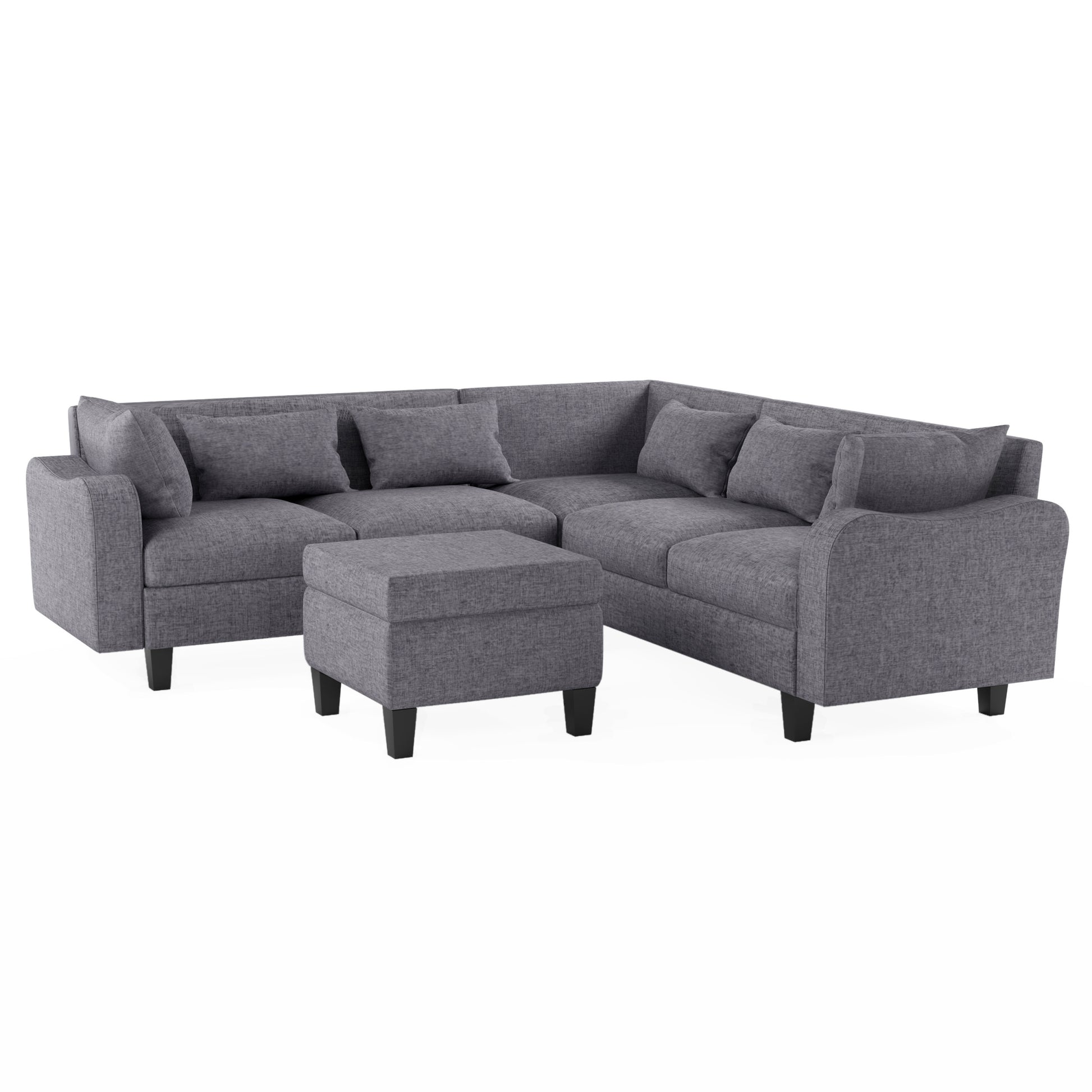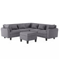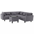 87" Modern Sectional Sofa With Coffee Table,6 Seat Couch Set With Storage Ottoman,Various Combinations,L Shape Indoor Furniture With Unique Armrests For Living Room,Apartment, 2 Colors 6 Pillows Gray Linen 6 Seat