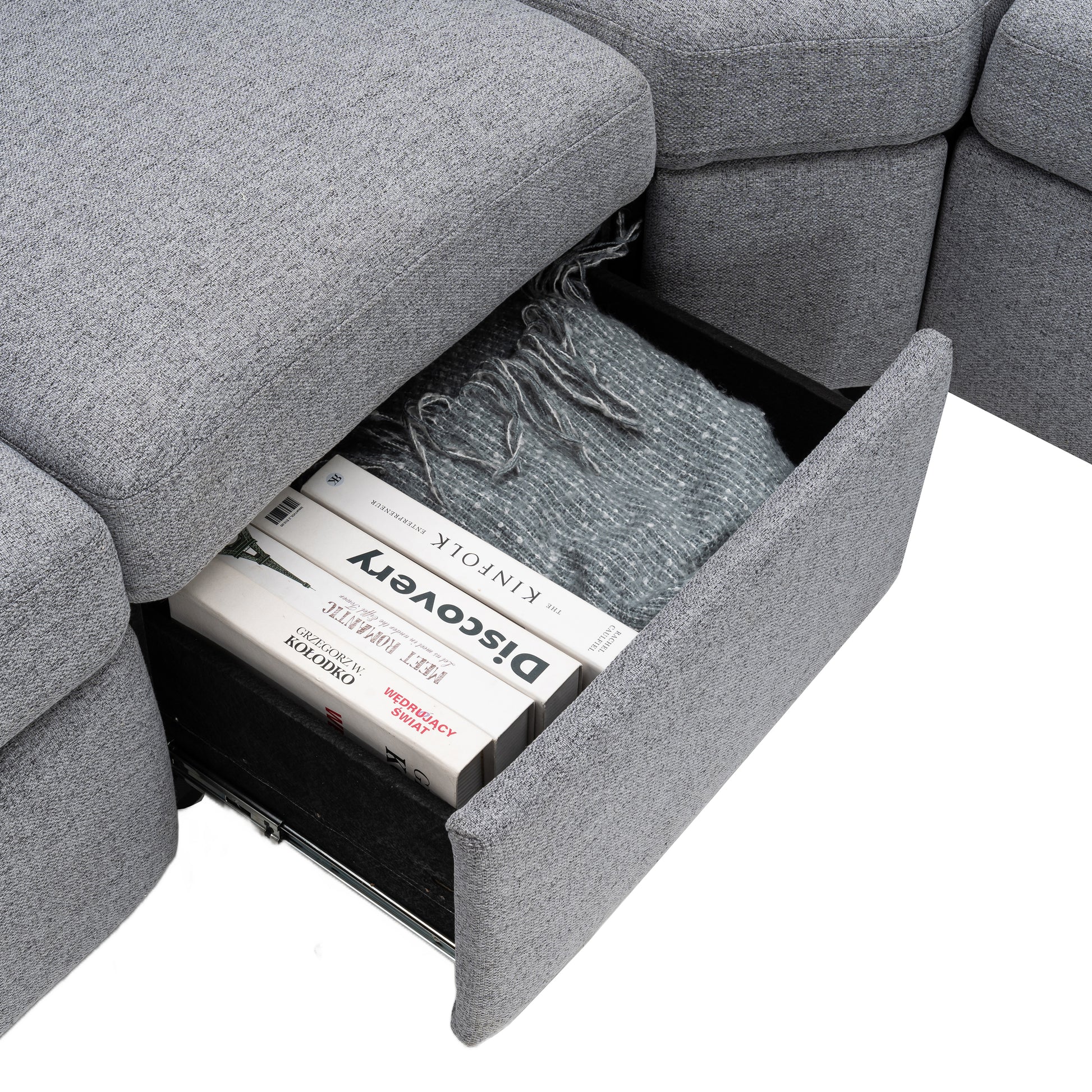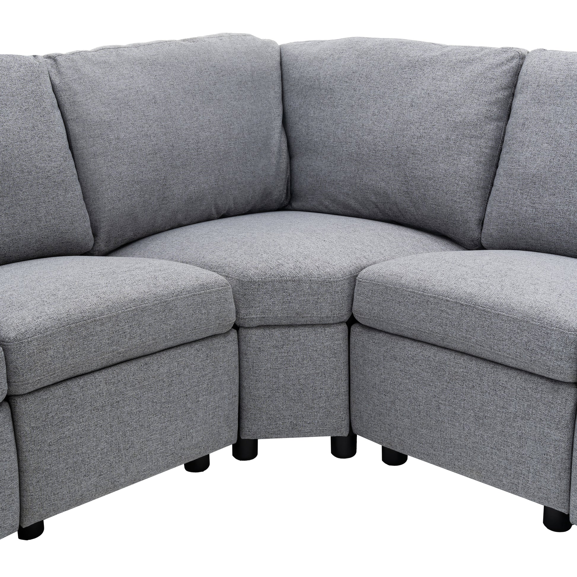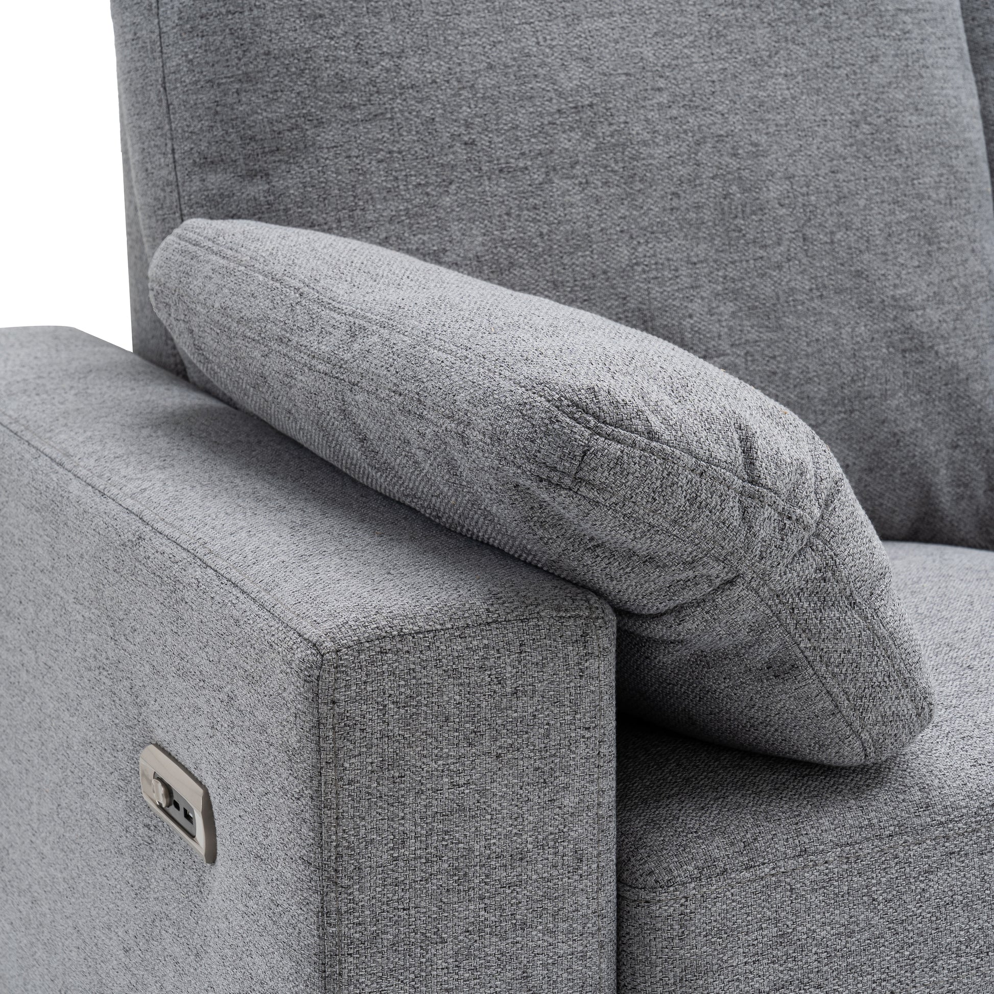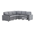 89" Power Recliner Sectional Sofa Home Theater Reclining Sofa With Two Usb Ports, Two Storage Drawers For Living Room, Gray Gray Foam Linen 5 Seat