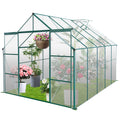 8X10Ft Double Door Polycarbonate Greenhouse Raised Base And Anchor Aluminum Heavy Duty Walk In Greenhouses For Outdoor Backyard In All Season,Green Green Aluminium