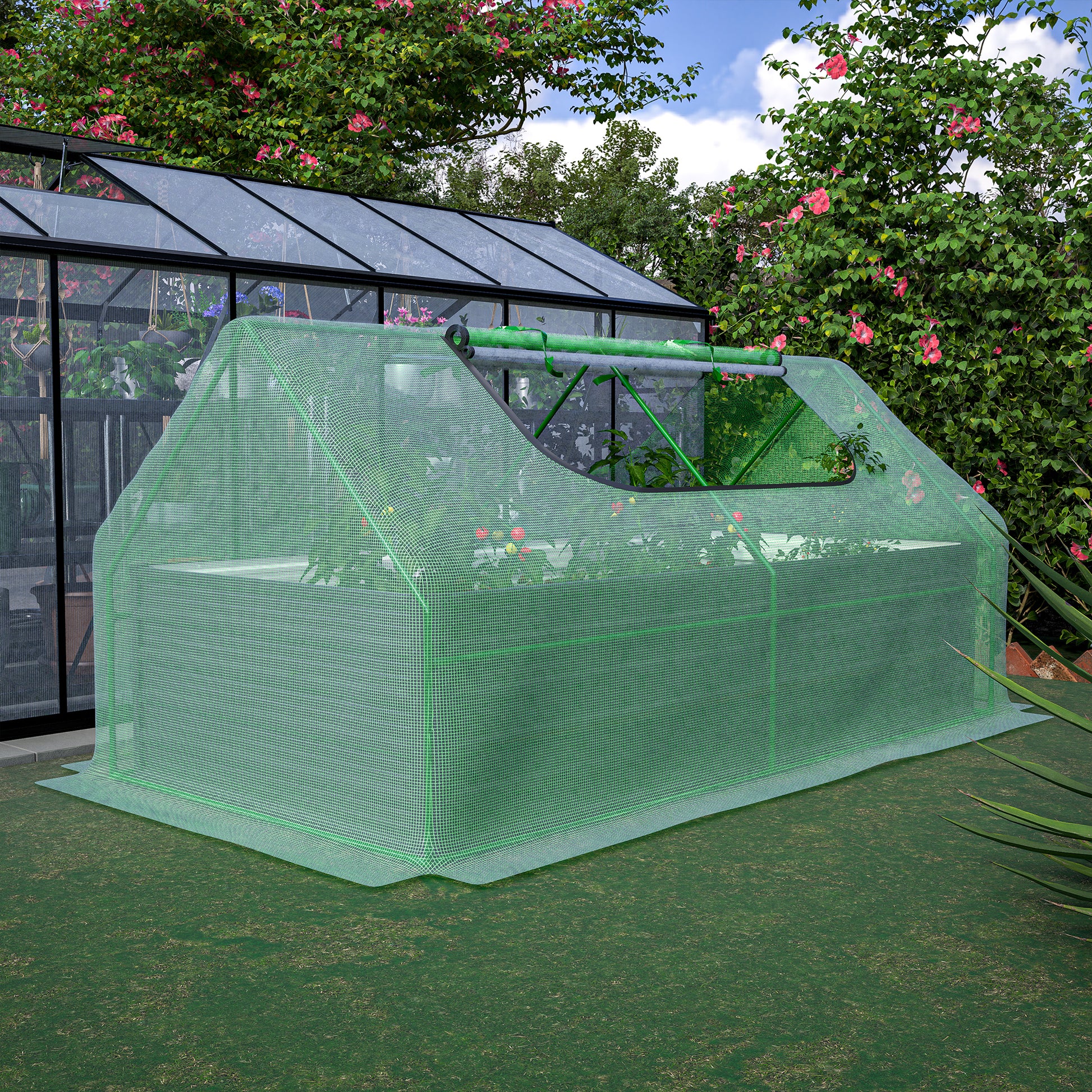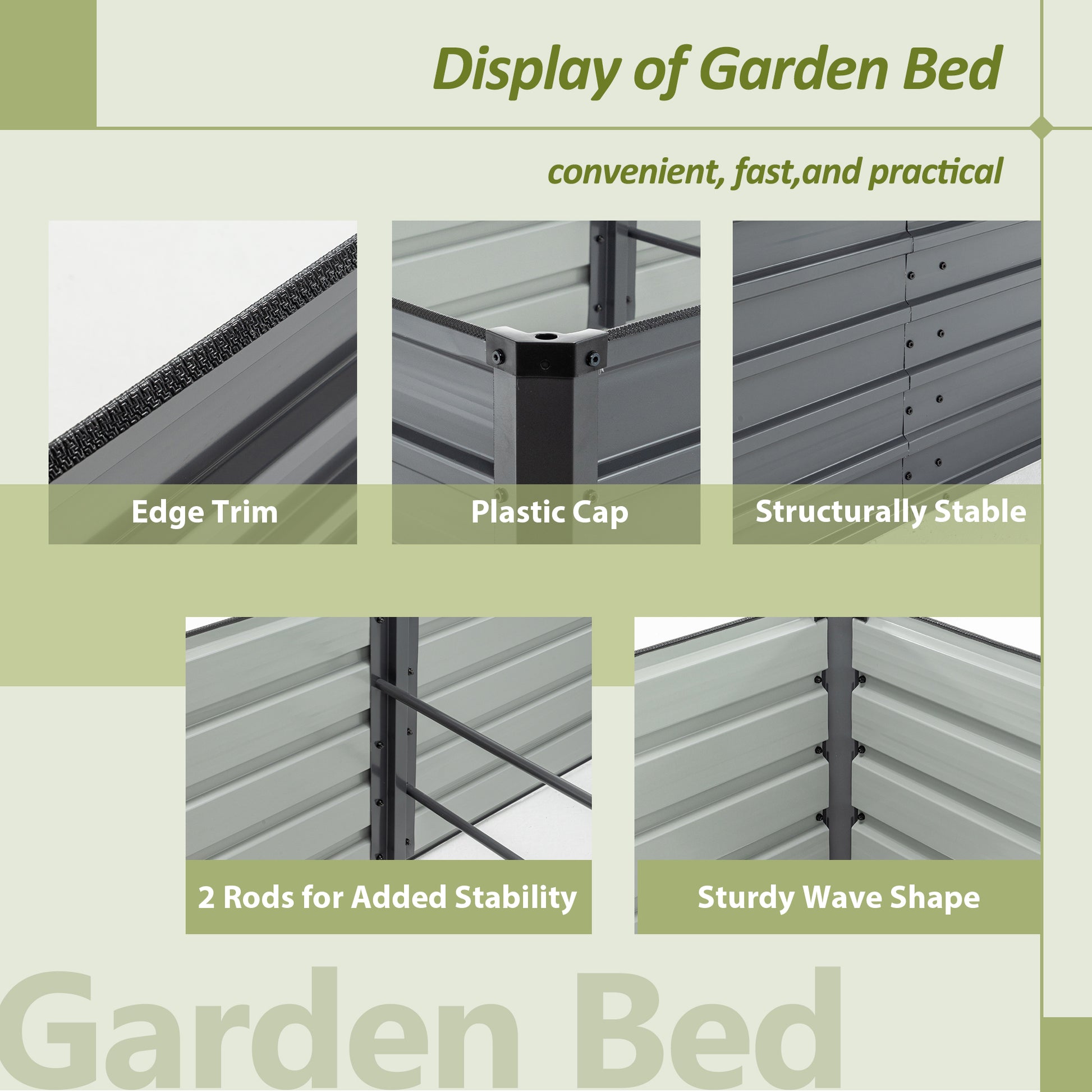 8X4X2Ft Galvanized Raised Garden Bed With Cover Metal Planter Box Kit, W 2 Large Screen Windows Mini Greenhouse ,Outdoor Growing Vegetables Gray Garden & Outdoor Metal