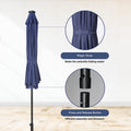 9' Solar Umbrella 32 Led Lighted Patio Umbrella Table Market Umbrella With Push Button Tilt Crank Outdoor Umbrella For Garden, Deck, Backyard And Pool, Dark Blue Dark Blue Stainless Steel