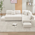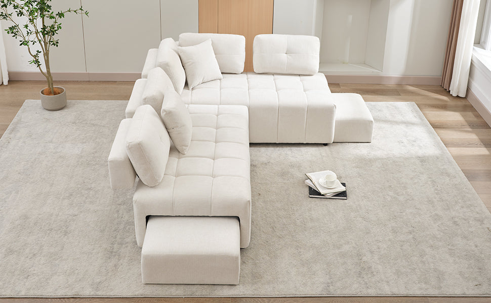 91.73" L Shaped Sofa Sectional Sofa Couch With 2 Stools And 2 Lumbar Pillows For Living Room, Biege Beige Chenille