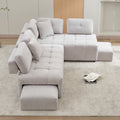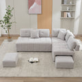91.73" L Shaped Sofa Sectional Sofa Couch With 2 Stools And 2 Lumbar Pillows For Living Room, Light Grey Light Grey Chenille