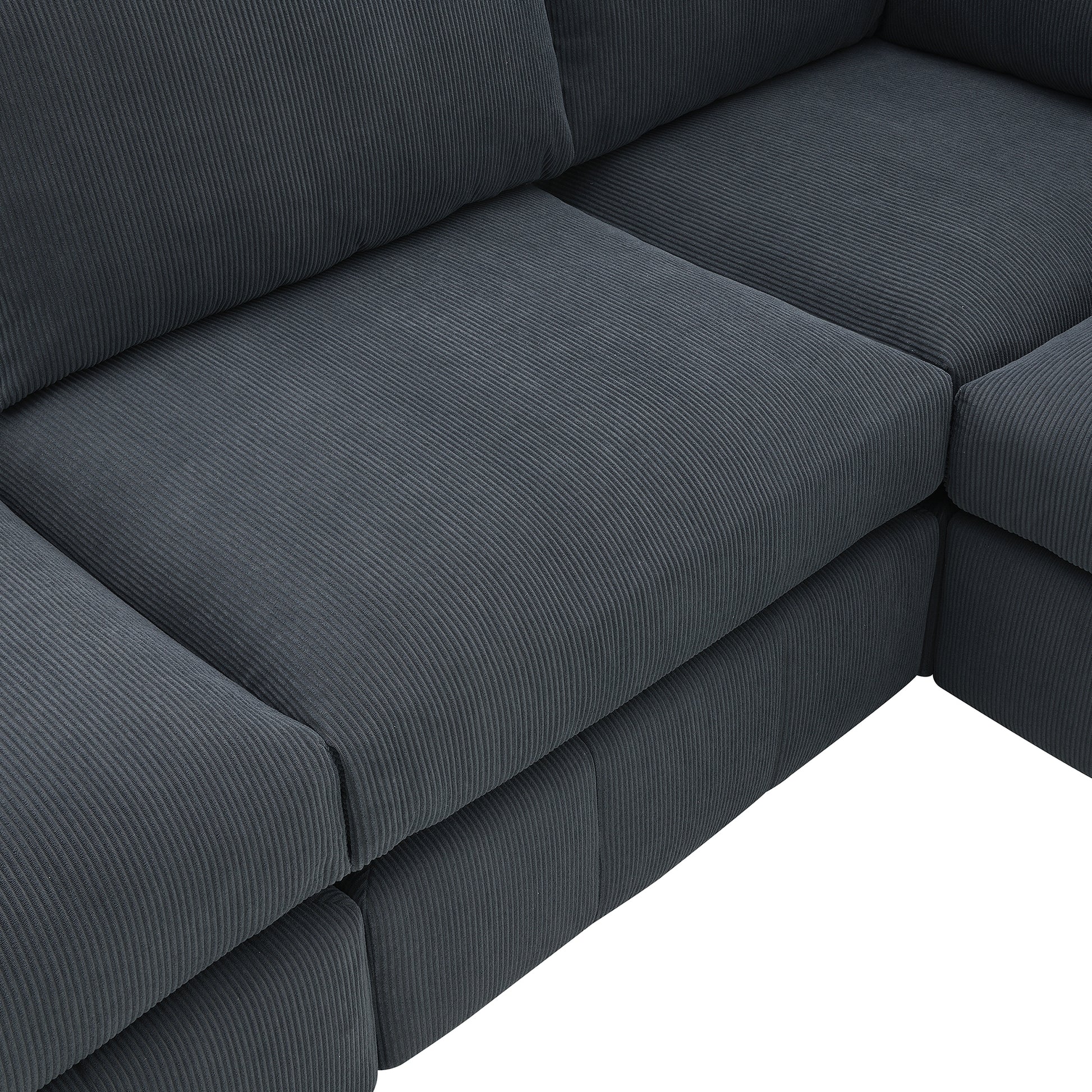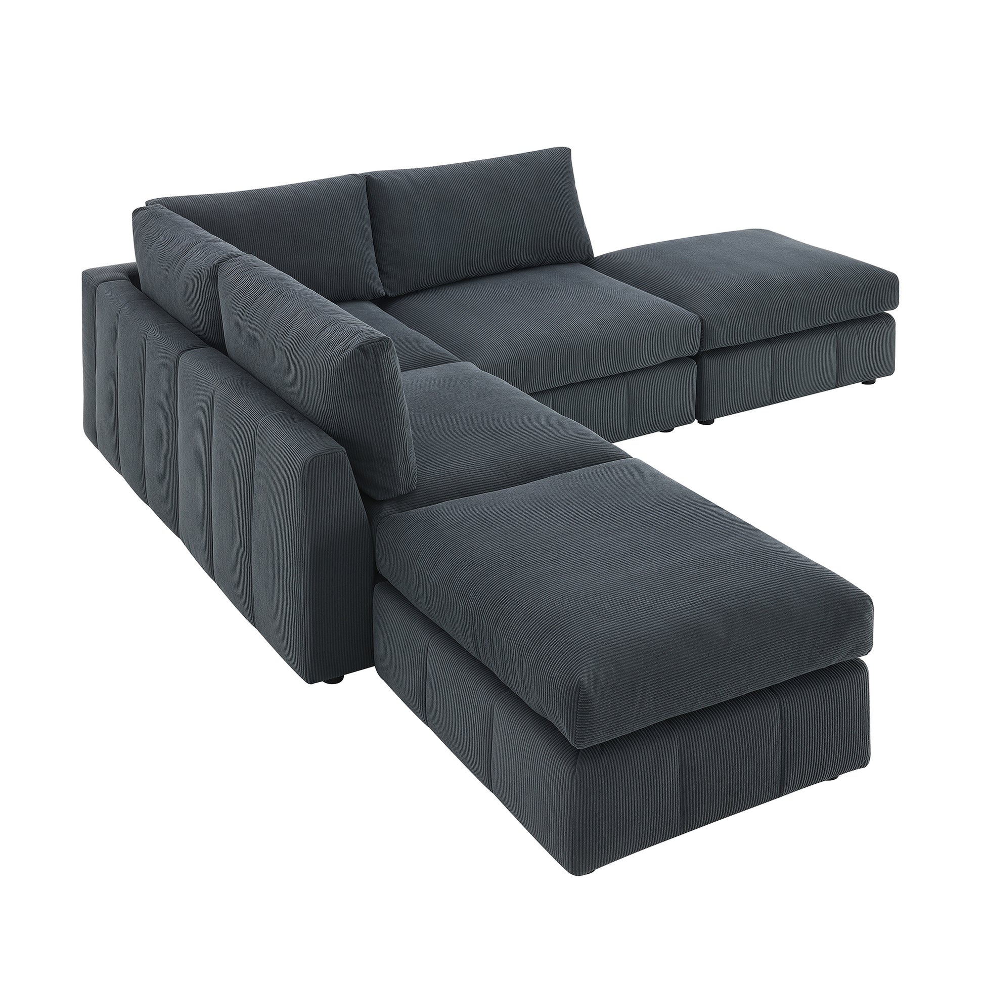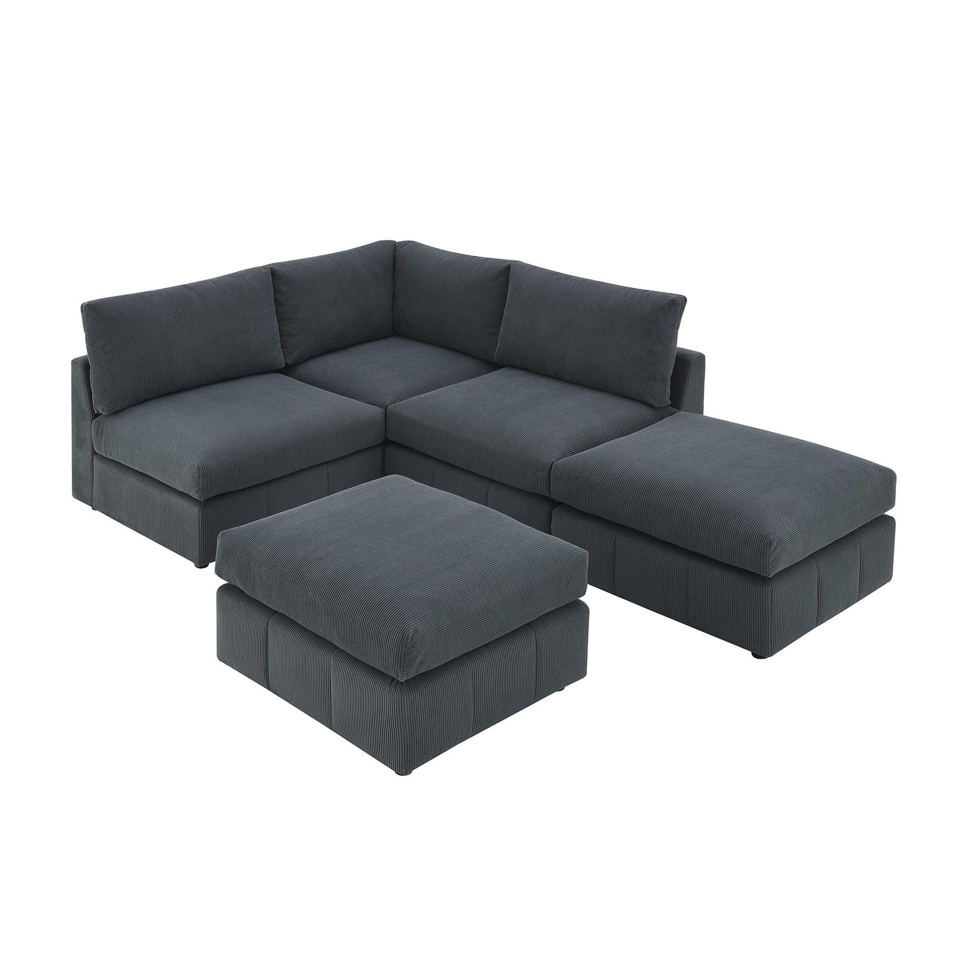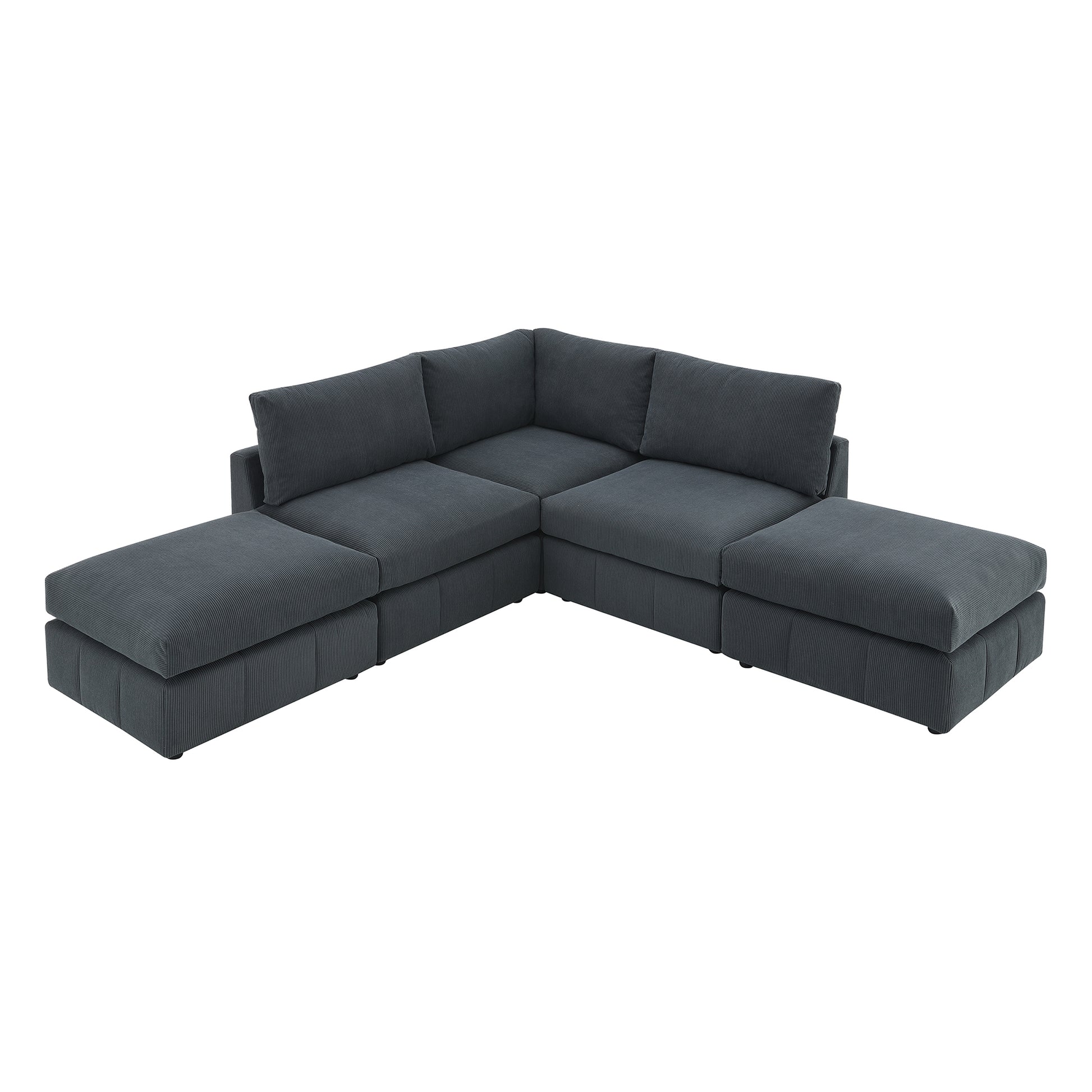 93"Modern Sectional Sofa With Vertical Stripes,5 Seat Armless Couch Set With Convertible Ottomans,Various Combinations,L Shape Indoor Furniture For Living Room,Apartment, 2 Colors Dark Grey Corduroy 5 Seat