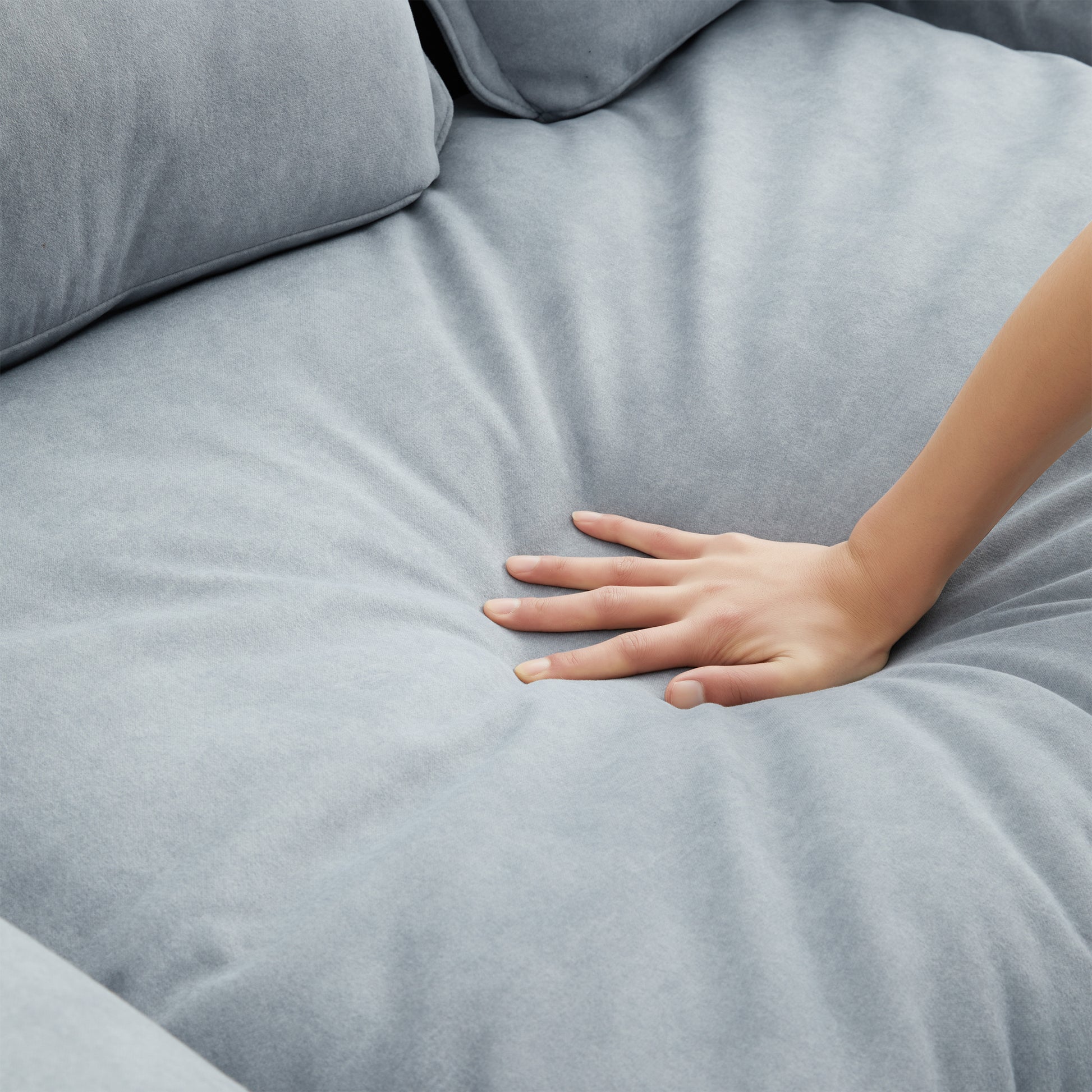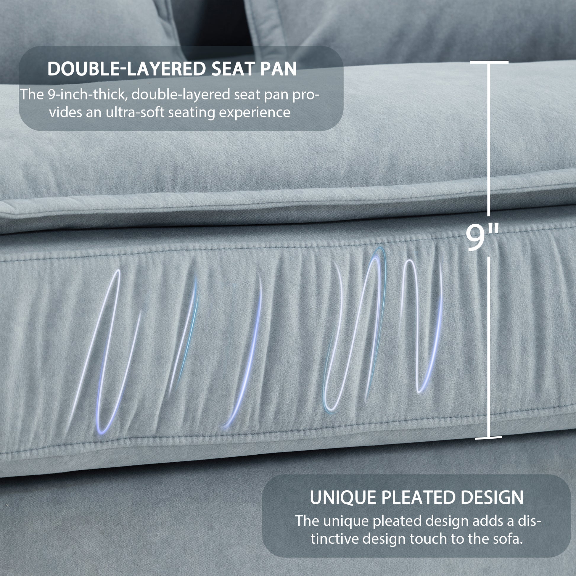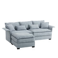 95*66"Oversized Luxury Sectional Sofa With Bentwood Armrests,4 Seat Upholstered Indoor Furniture With Double Cushions,L Shape Couch With Ottoman For Living Room,Apartment,3 Colors Blue Fabric 4 Seat