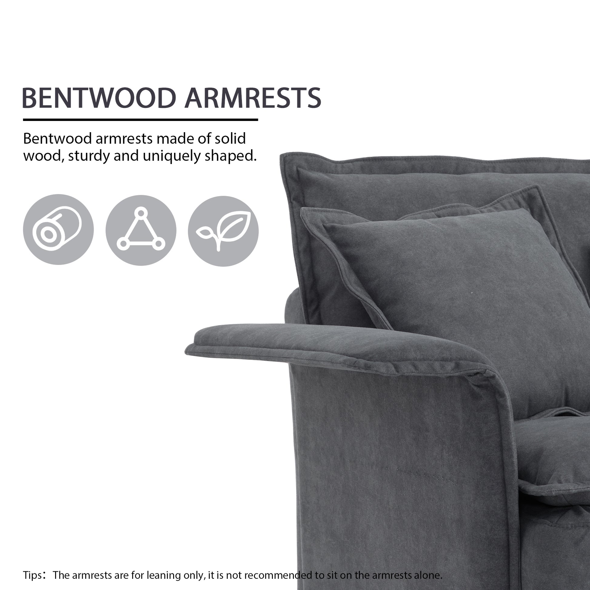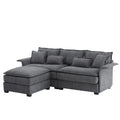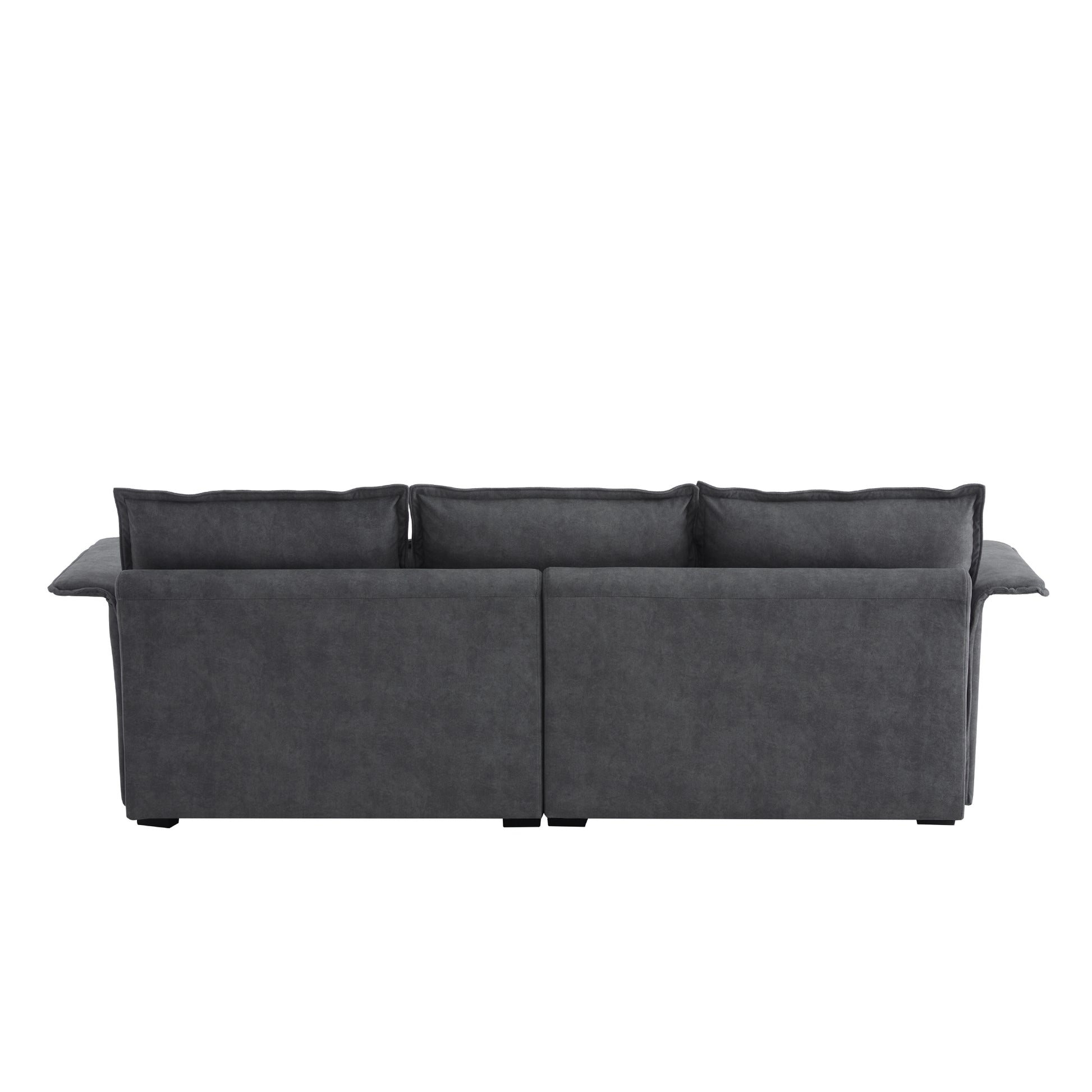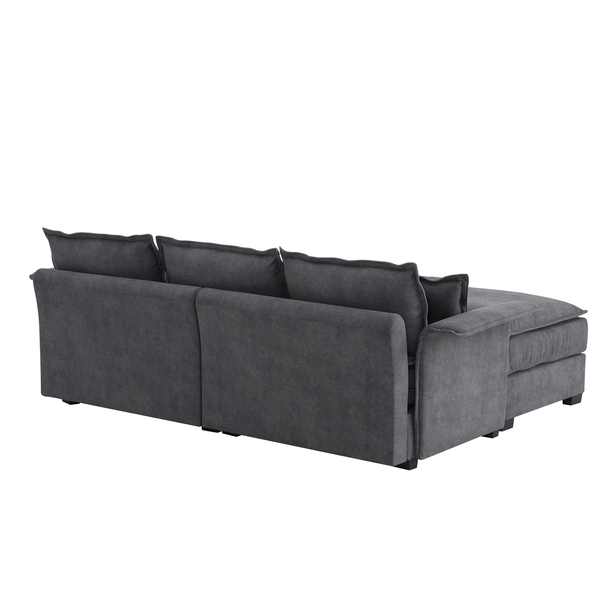 95*66"Oversized Luxury Sectional Sofa With Bentwood Armrests,4 Seat Upholstered Indoor Furniture With Double Cushions,L Shape Couch With Ottoman For Living Room,Apartment,3 Colors Dark Grey Fabric 4 Seat