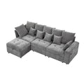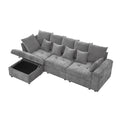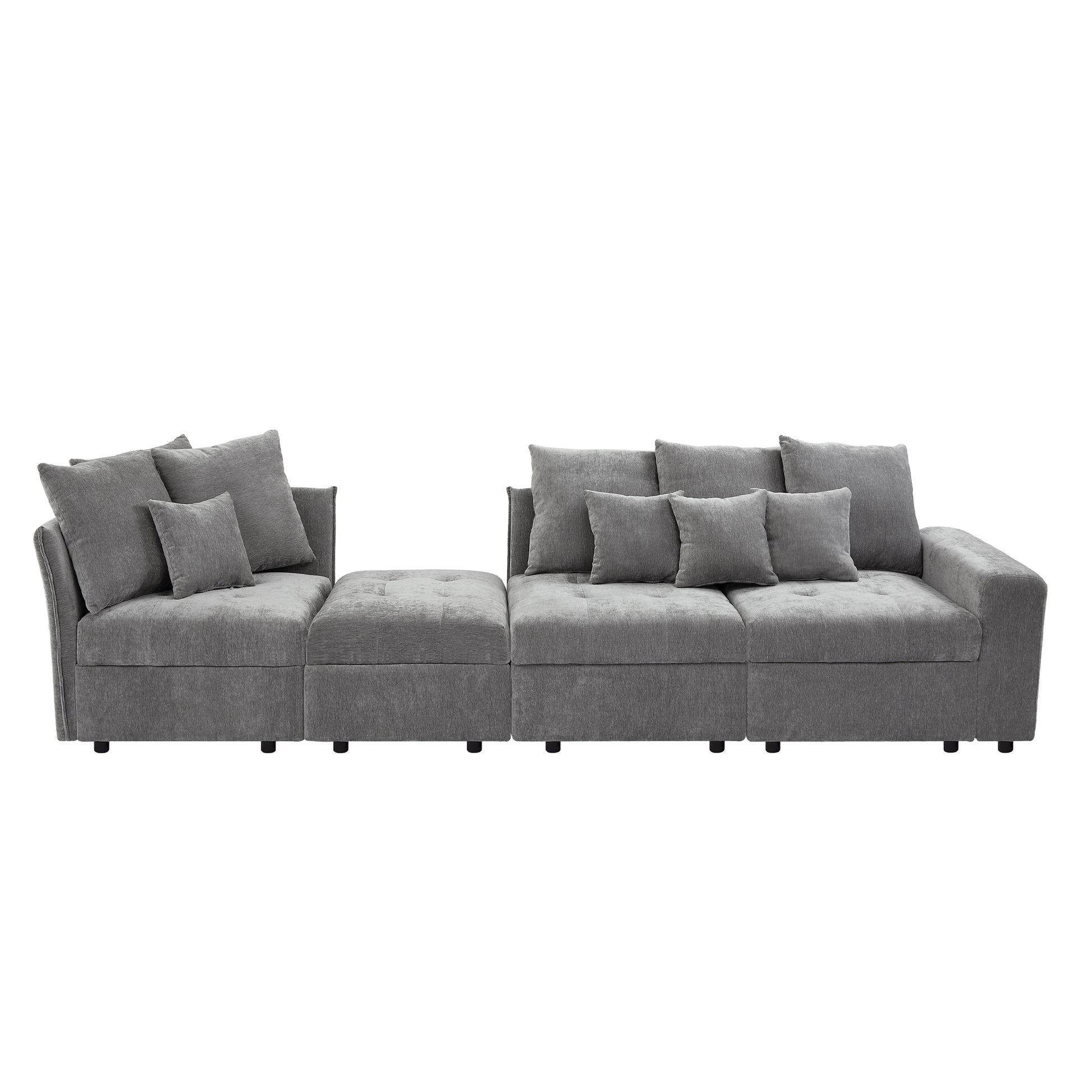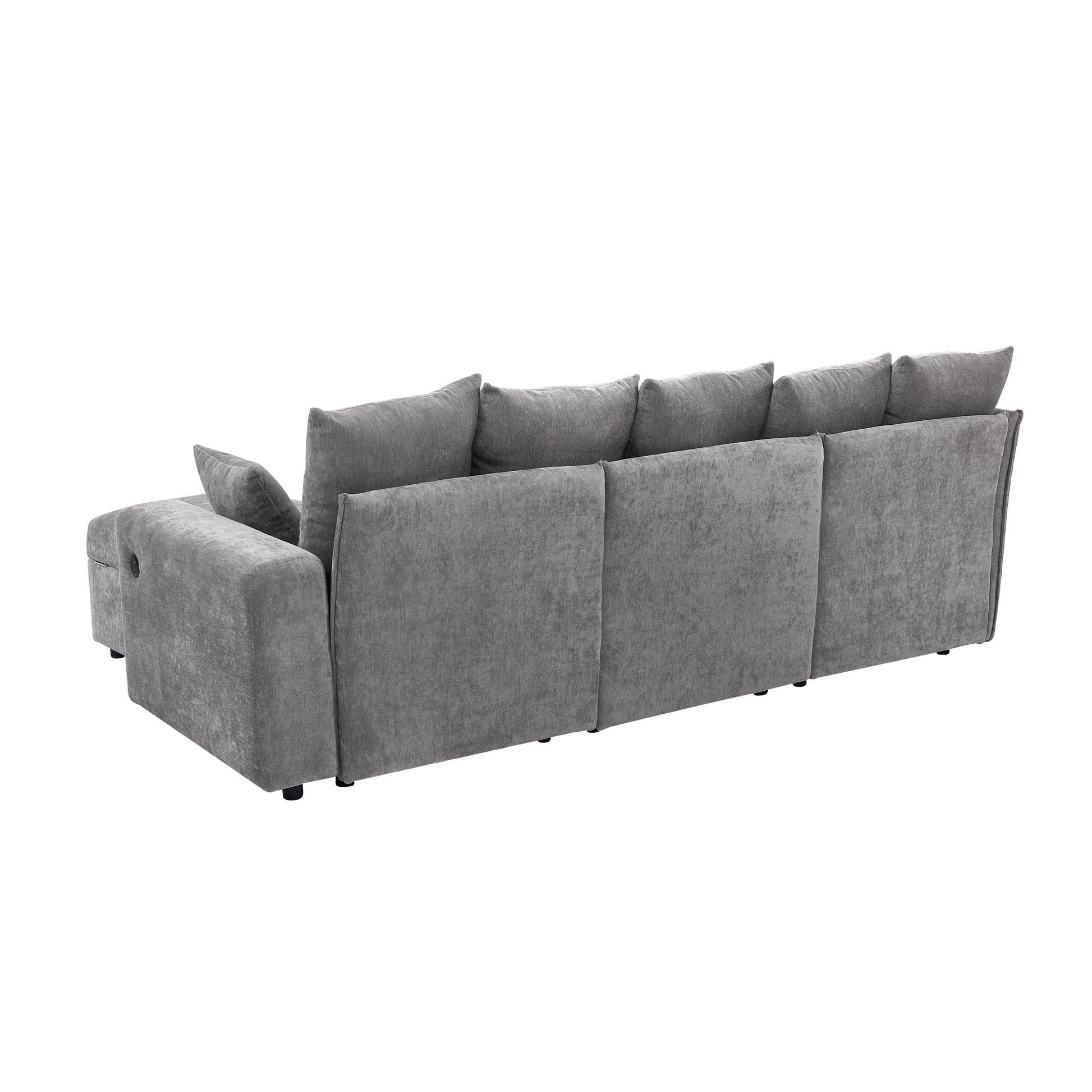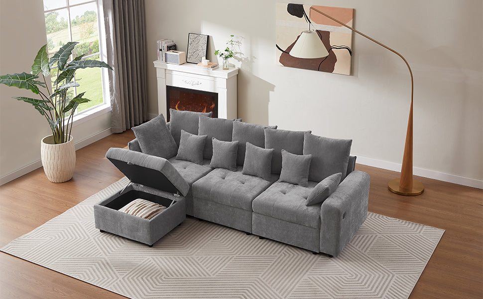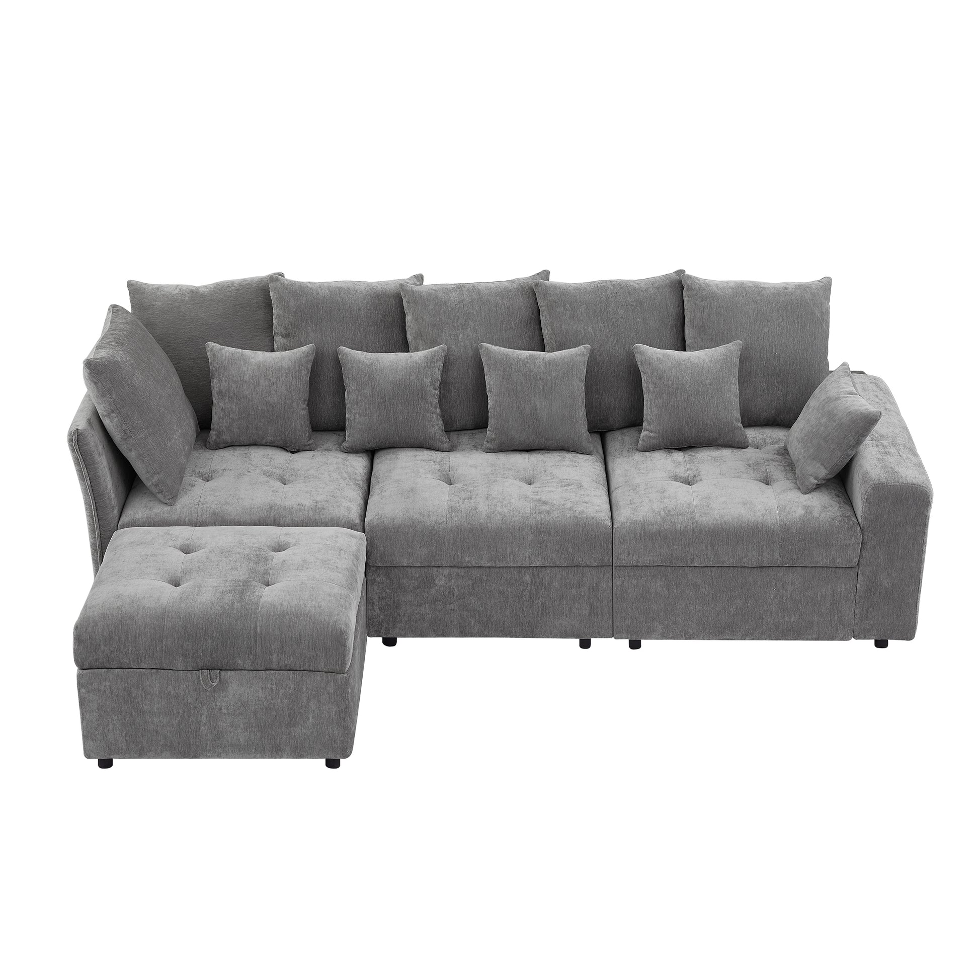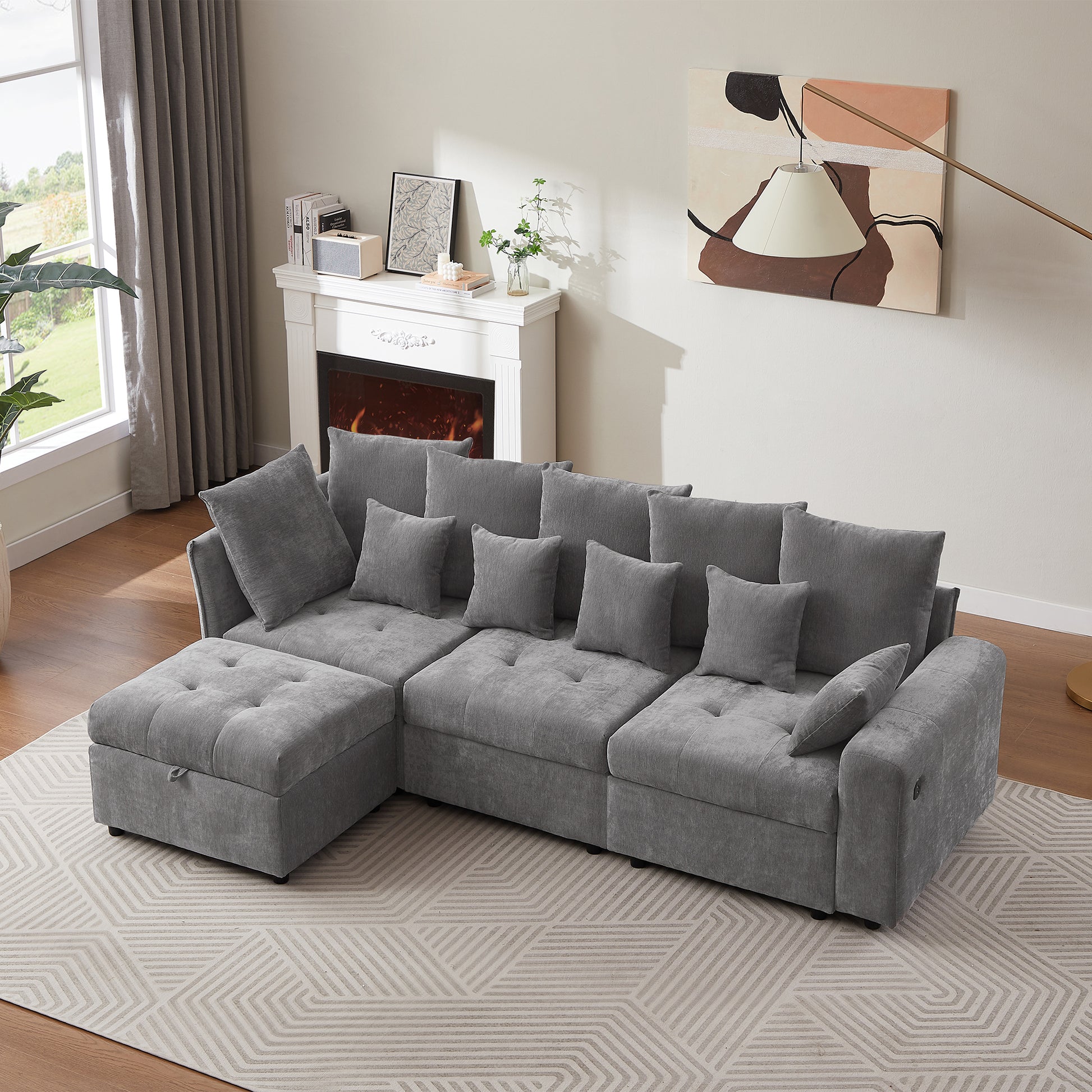 96.45"Sectional Sofa Modular Sofa Couch With Three Usb Ports, A Removable Storage Ottoman And Five Back Pillows For Living Room, Grey Grey Foam Chenille 4 Seat