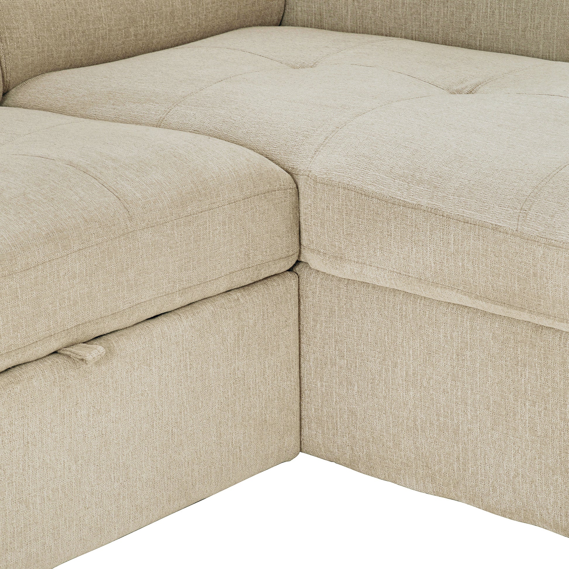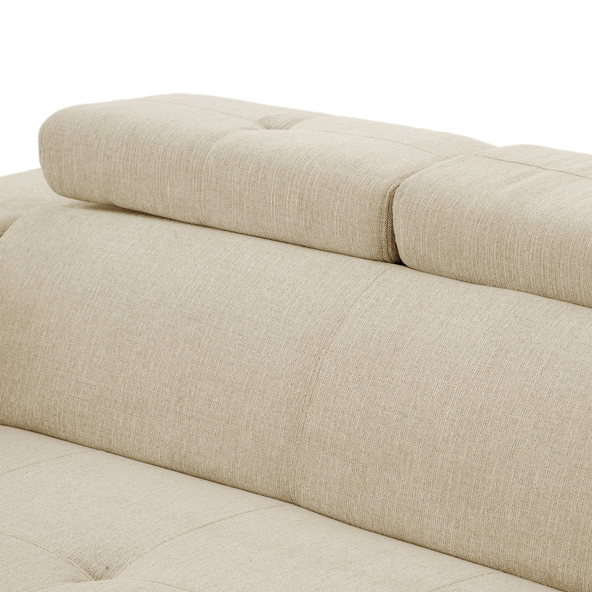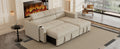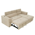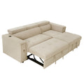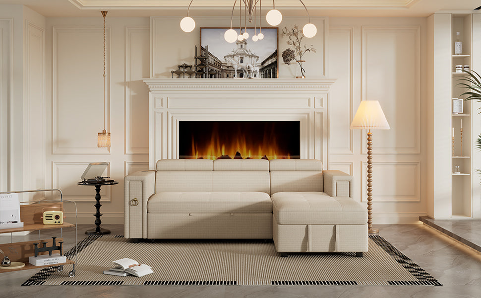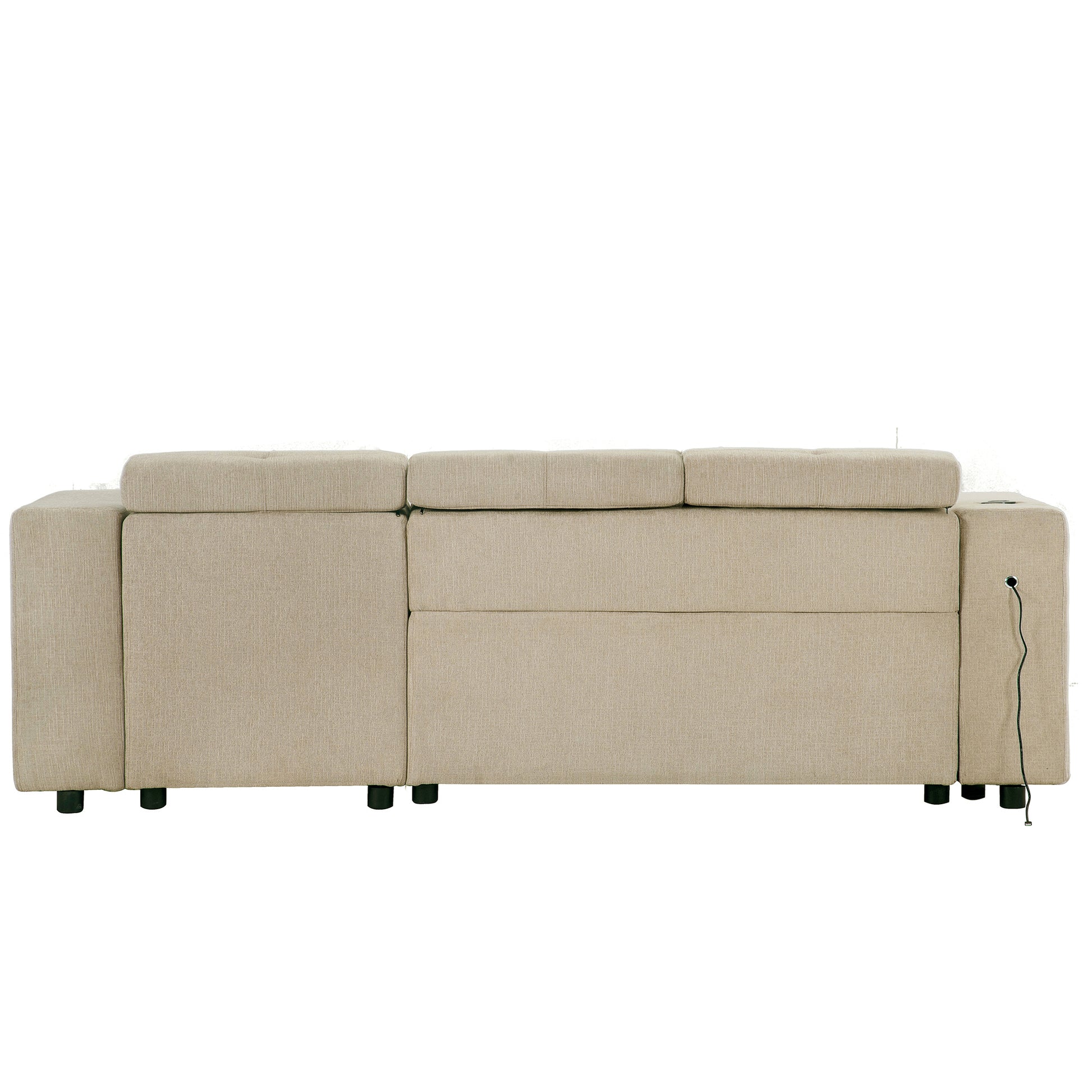 96" Multi Functional Pull Out Sofa Bed L Shape Sectional Sofa With Adjustable Headrest, Wireless Charging, Cup Holders And Hidden Storage For Living Room, Bedroom, Office, Beige Beige Foam Linen