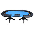 96" Poker Table For 10 Players Casino Game Texas Hold'Em Premium Oval With Round Stud Rivet Decorate Waterproof Cloth Chip Tray Cup Holders Blue Blue Primary Living Space Modern Plastic,Tech