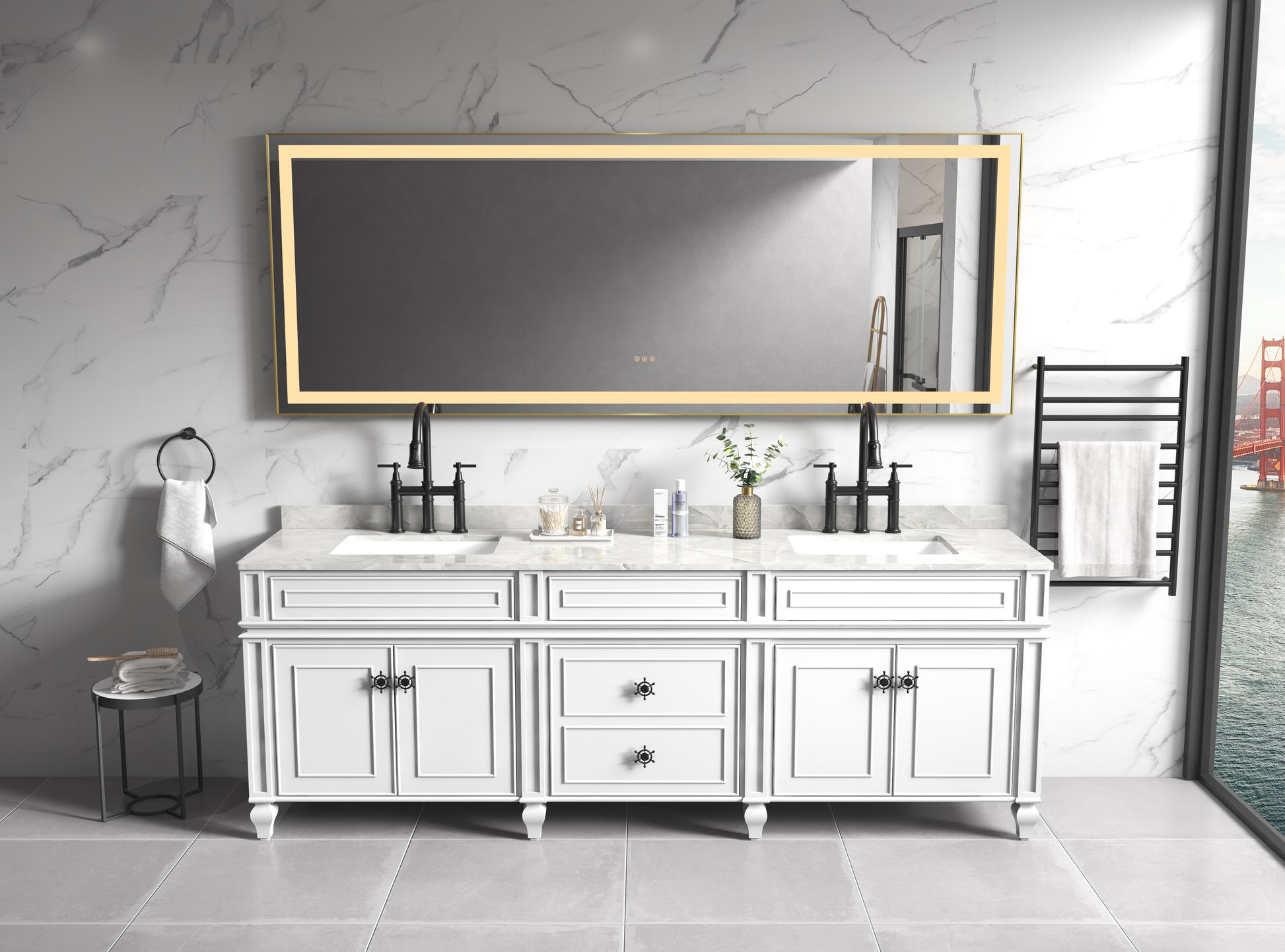 96In. W X36 In. H Frameless Led Single Bathroom Vanity Mirror In Polished Crystal Bathroom Vanity Led Mirror With 3 Color Lights Mirror For Bathroom Wall Gold Aluminium