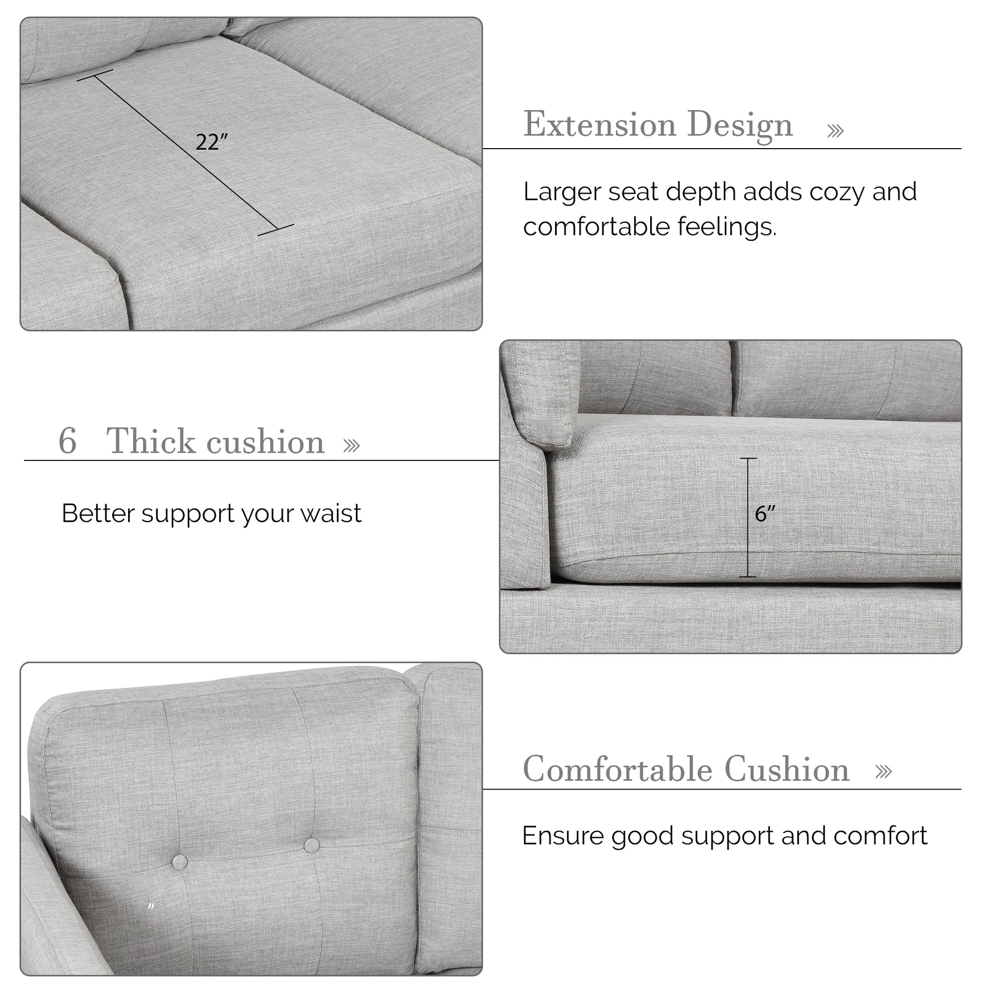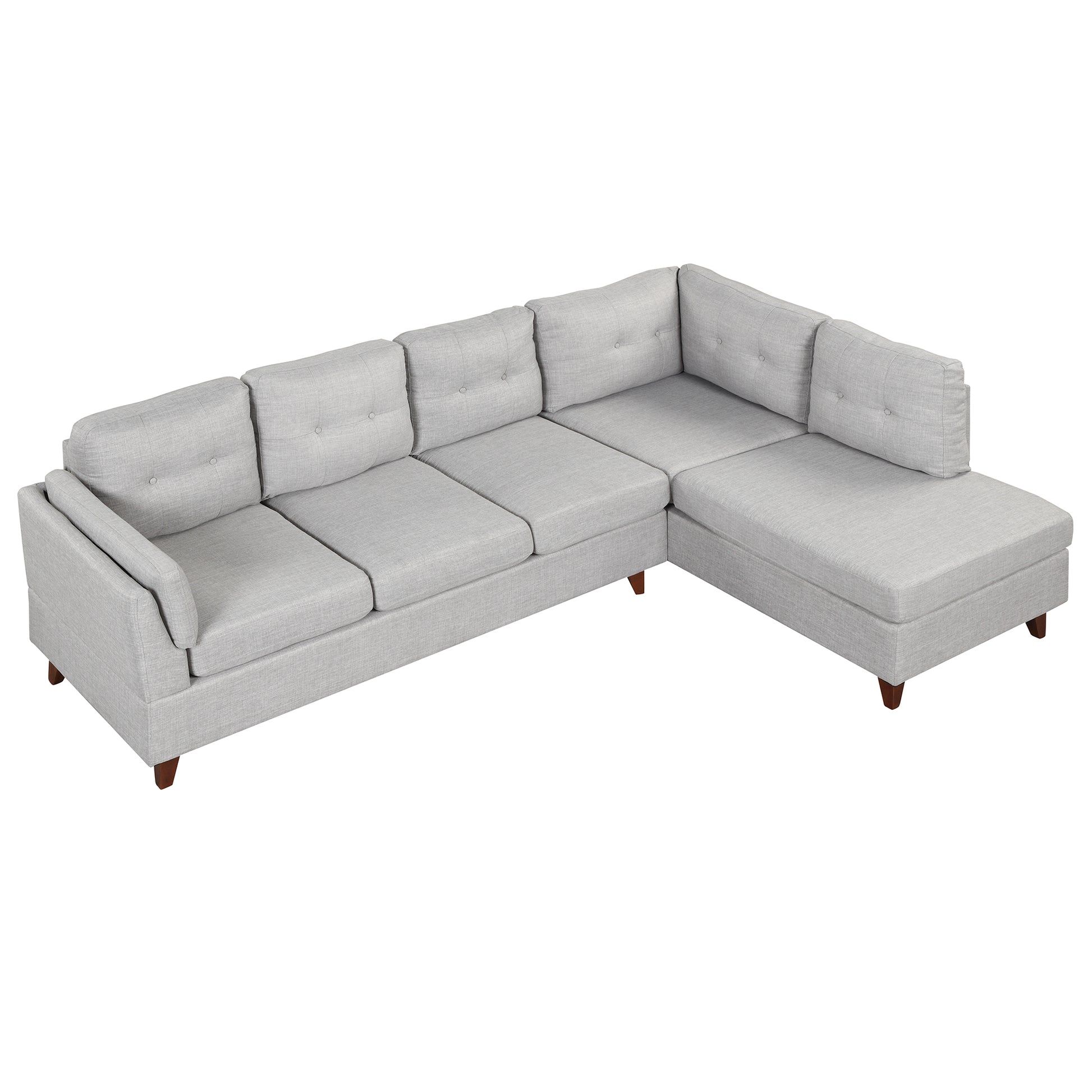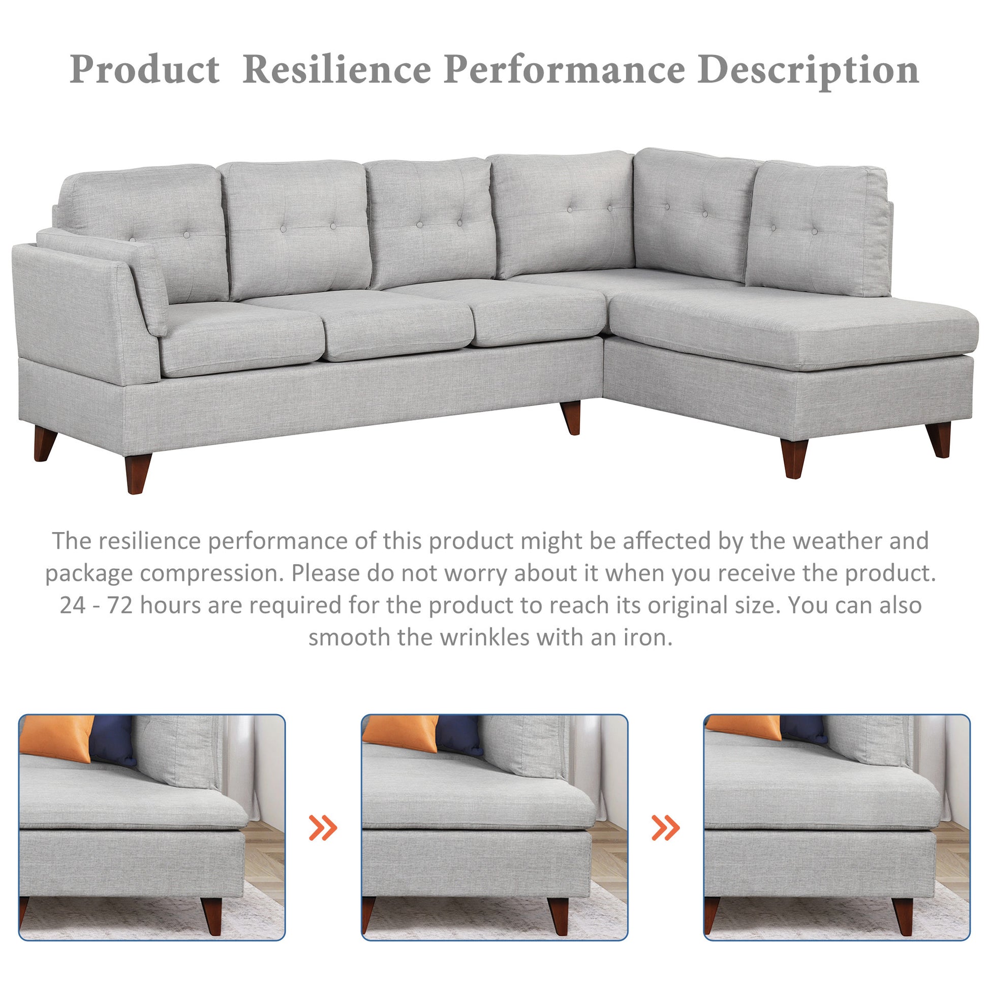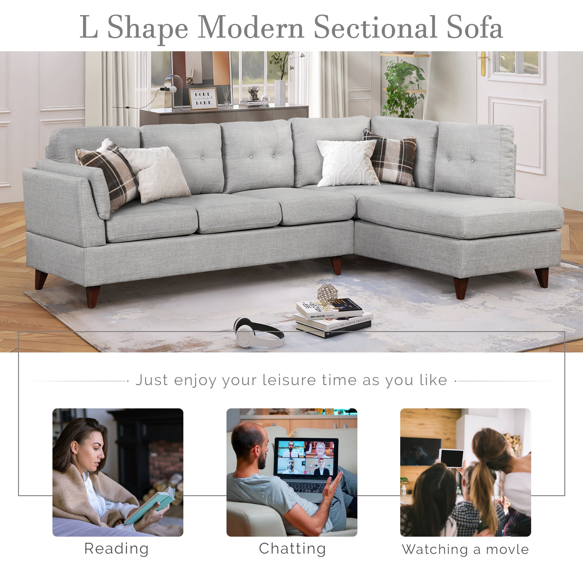 97.2" Modern Linen Fabric Sofa, L Shape Couch With Chaise Lounge,Sectional Sofa With One Lumbar Pad,Gray Gray Foam Linen 4 Seat