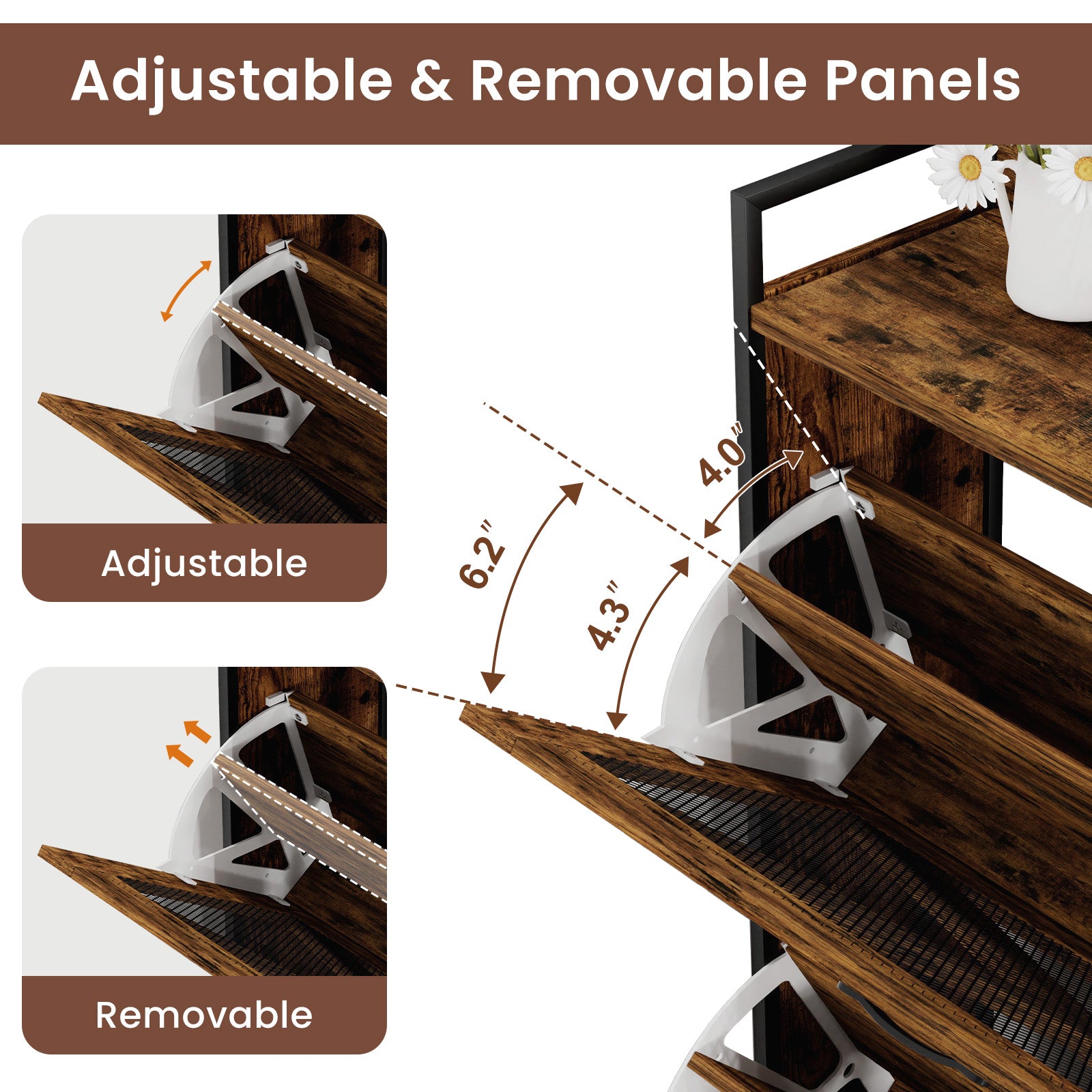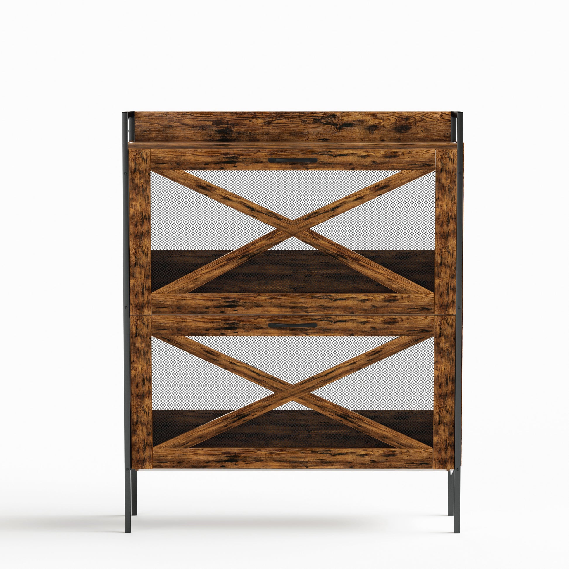 A Shoe Cabinet With 2 Flip Top Drawers, An Entryway Shoe Cabinet, A Narrow Standalone Shoe Rack Cabinet With Metal Legs, Rustic Brown,31.5'' W X 8.5'' D X 39.5'' H. Rustic Brown Particle Board