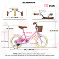 A12116 Ecarpat Kids'Bike Girls Bike 12 Inch Wheels,1 Speed Child Bicycles For 2 3 Years,With Removable Training Wheels Baby Toys,Front V Brake,Rear Holding Brake Pink Steel