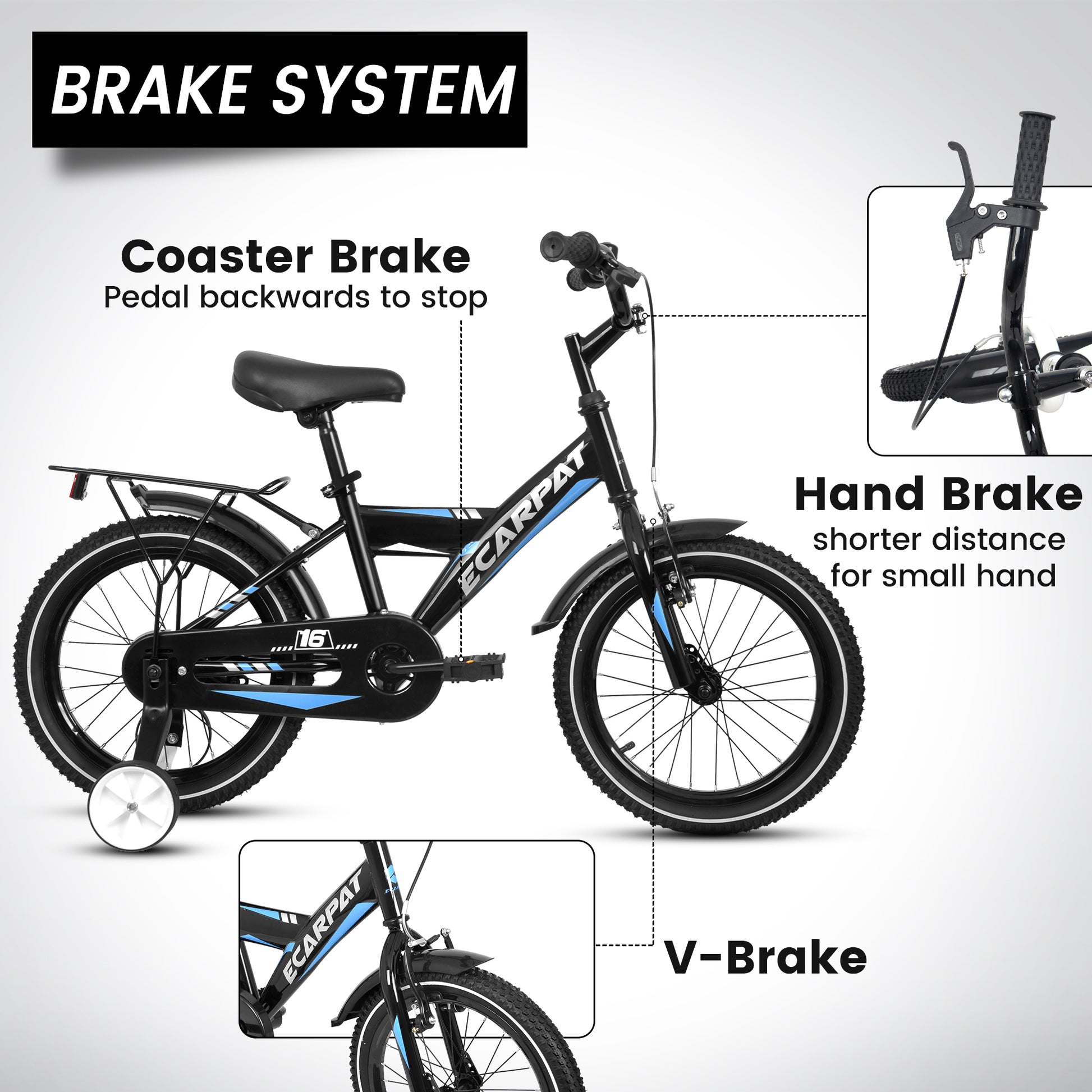 A14115 Kids Bike 14 Inch For Boys & Girls With Training Wheels, Freestyle Kids' Bicycle With Fender And Carrier. Black Steel