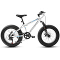 A20316 20 Inch Fat Tire Bike Adult Teen Full Shimano 7 Speed Mountain Bike, Dual Disc Brakes, High Carbon Steel Frame, Front Suspension, Mountain Dirt Bike, City Commuter City Bike, Fat Tire Bike White Steel
